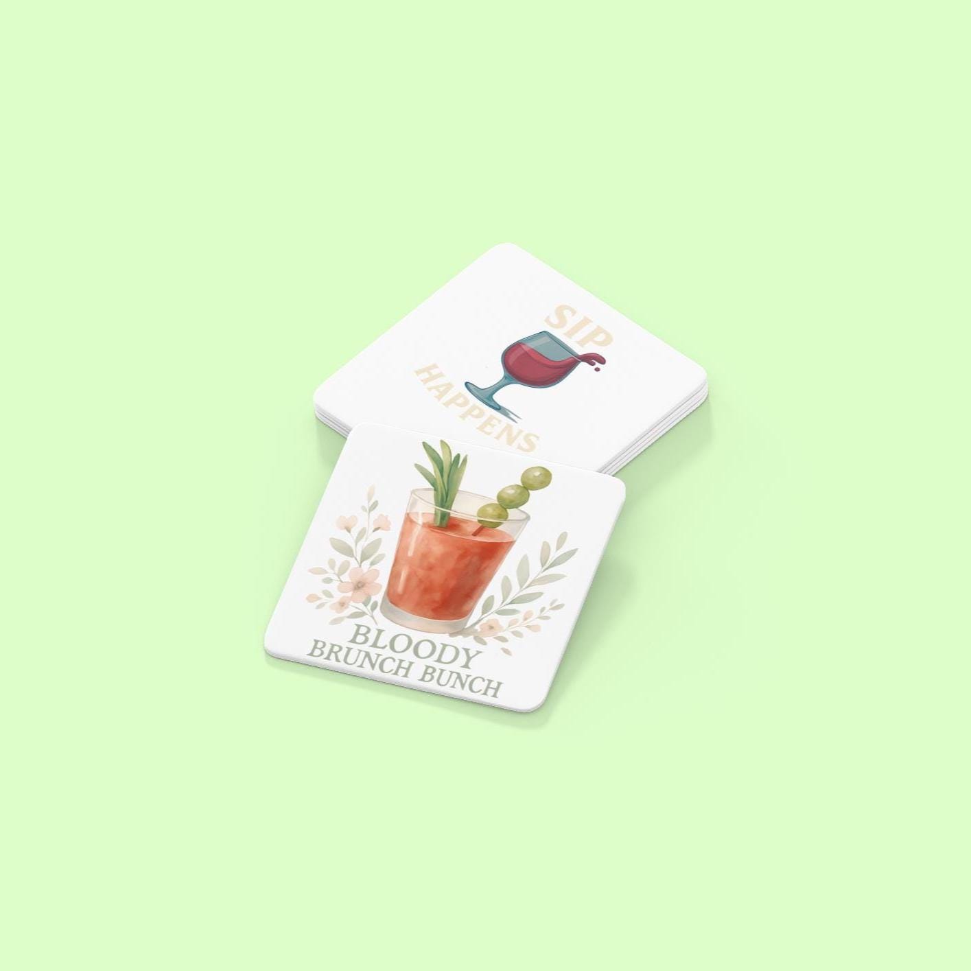 Add a splash of humor to your bar cart, wine night, or brunch table with this Sip Happens hardboard coaster. Featuring a tipped wine glass and cheeky text, it’s the perfect gift for wine lovers, party hosts, or anyone who enjoys sipping in style.