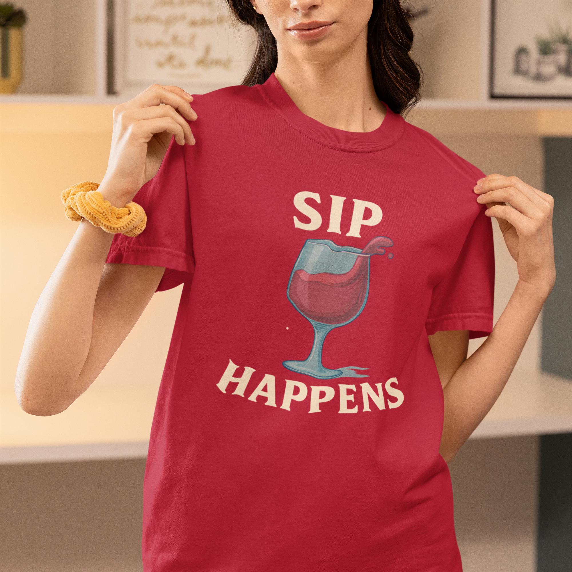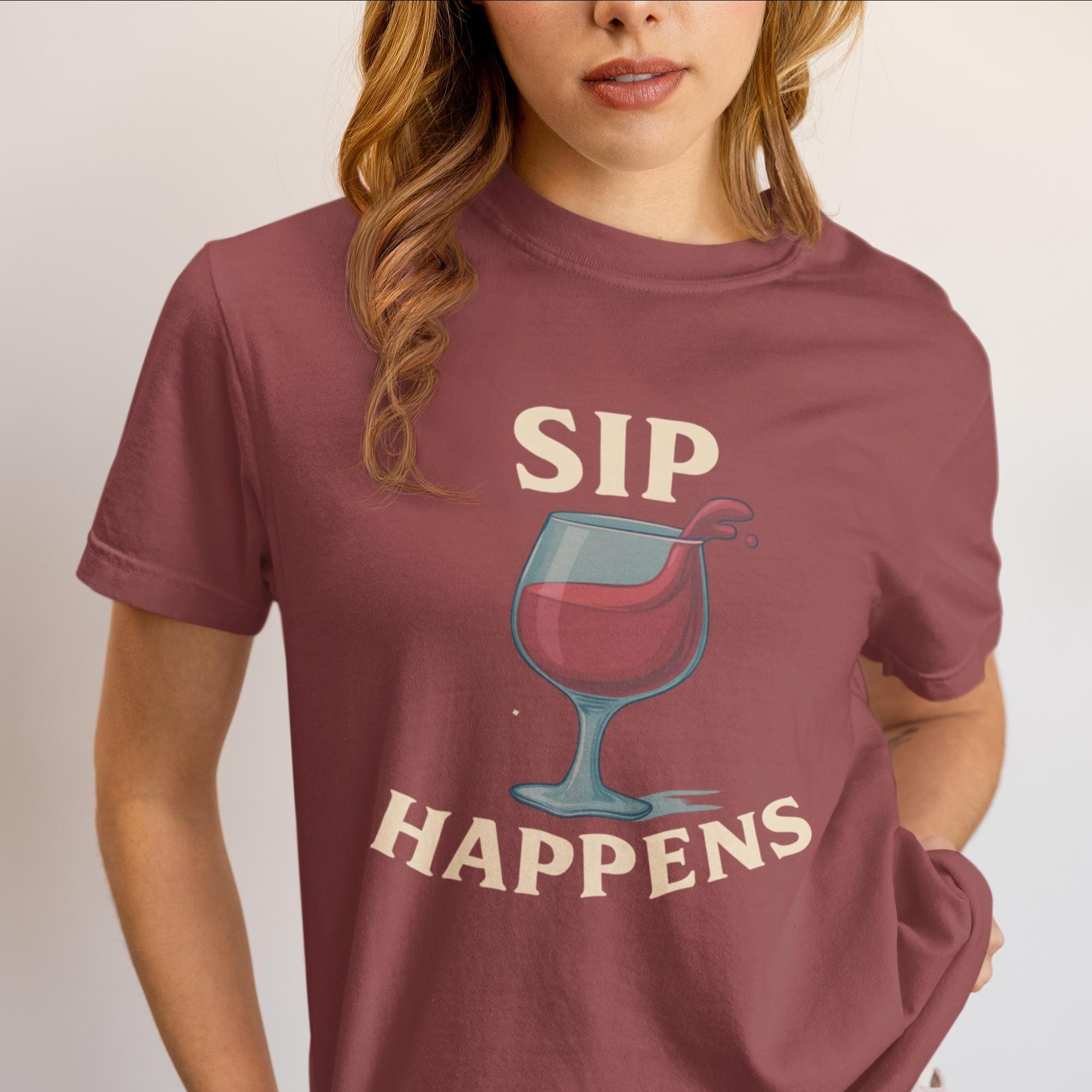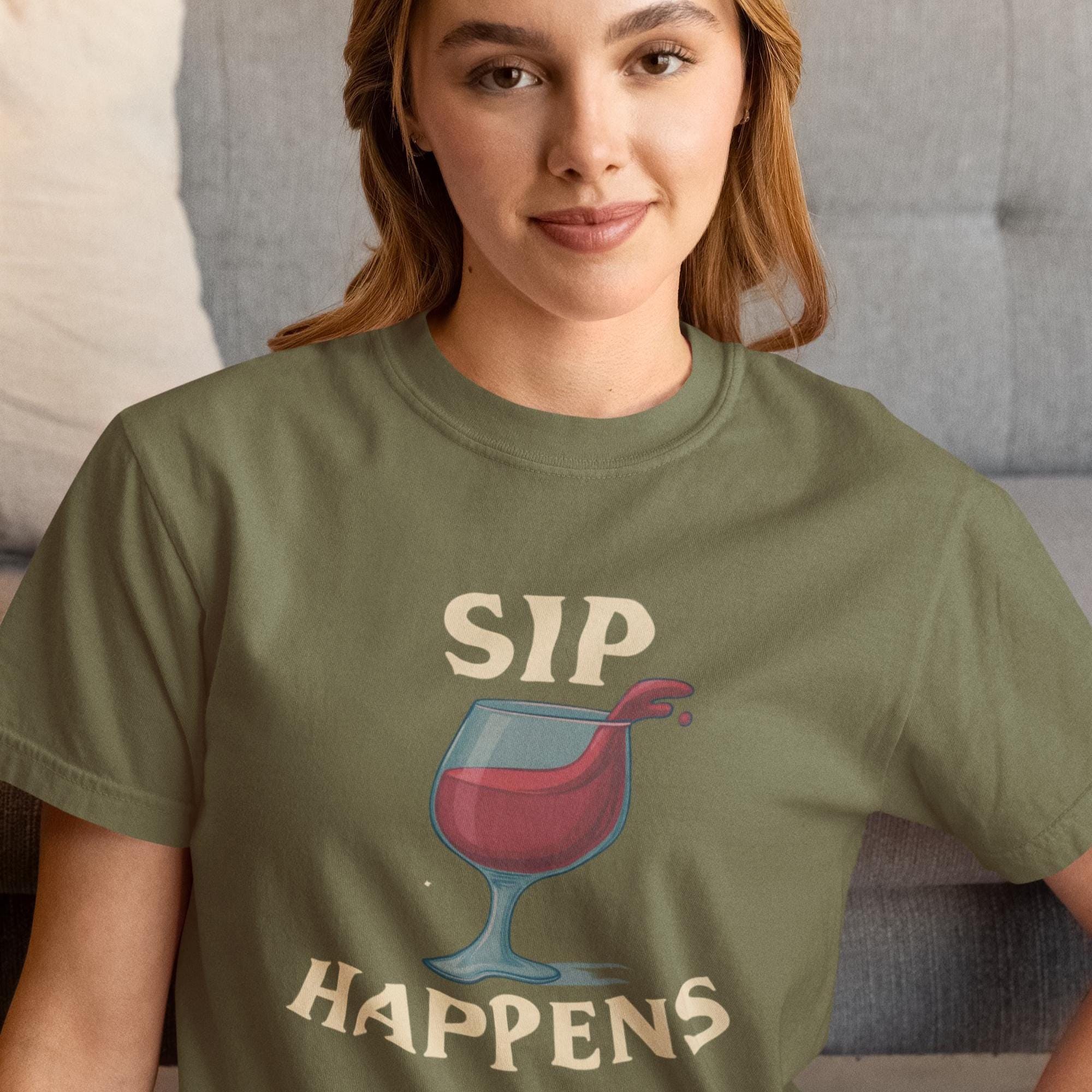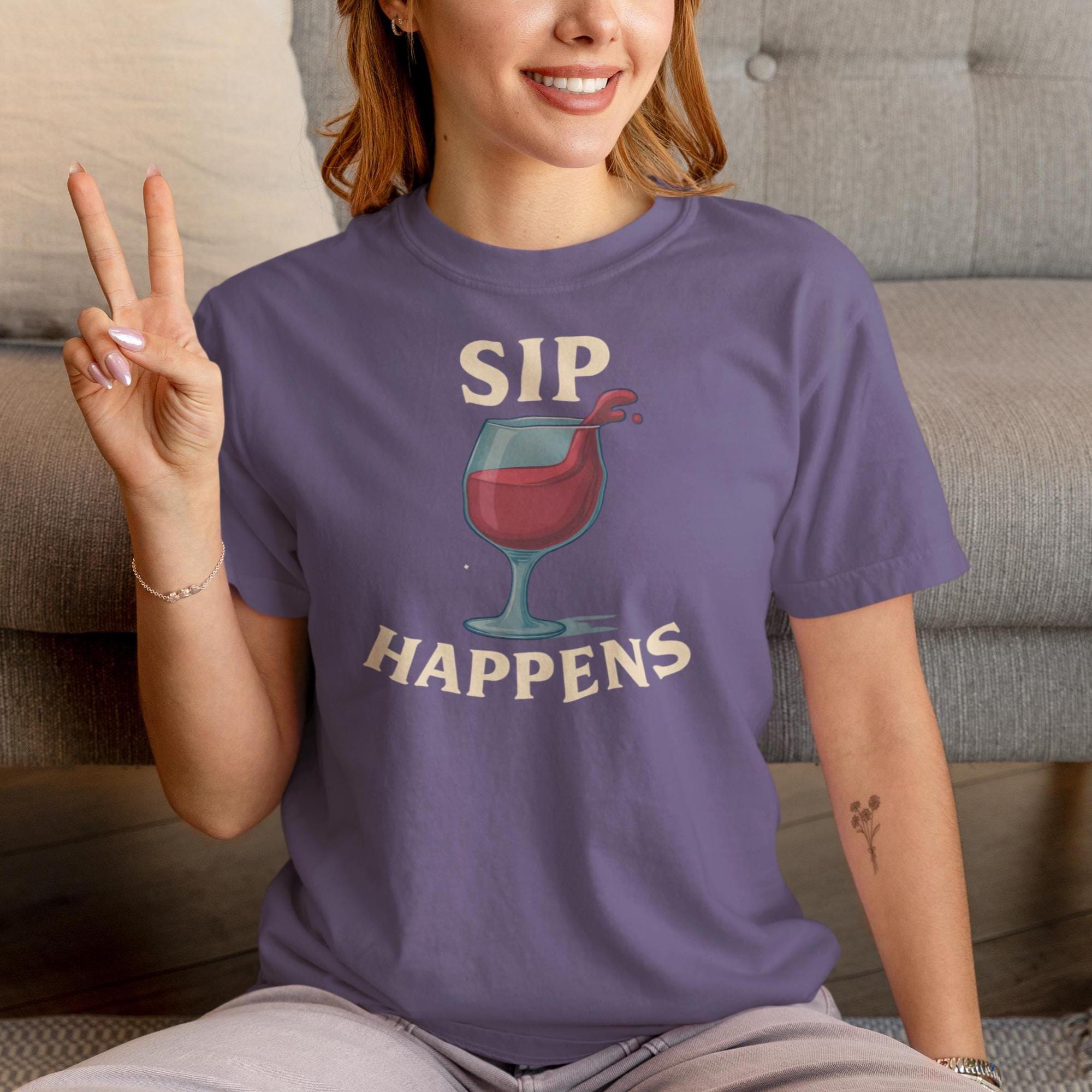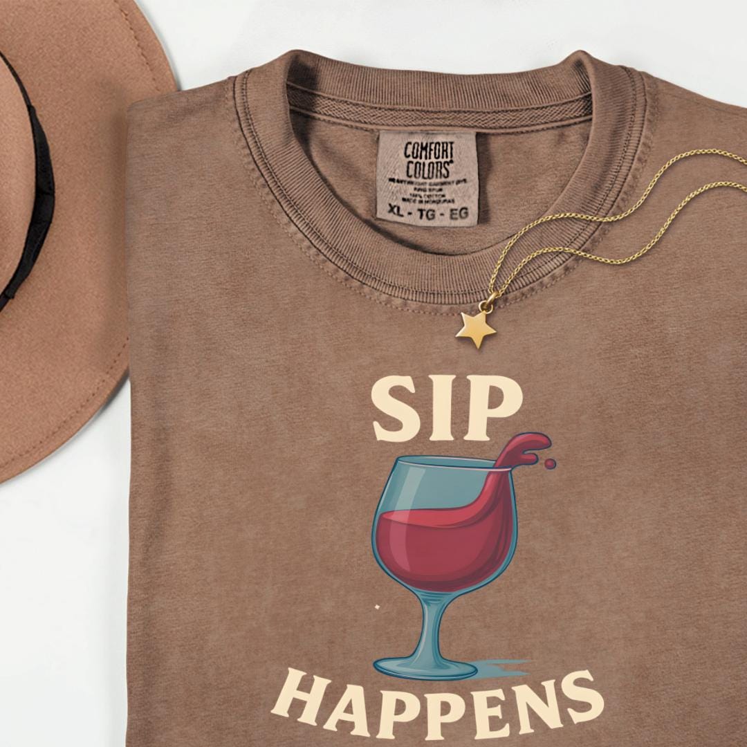 Sip Happens Wine Shirt: Funny Comfort Colors Tee, Girls Trip Brunch Top