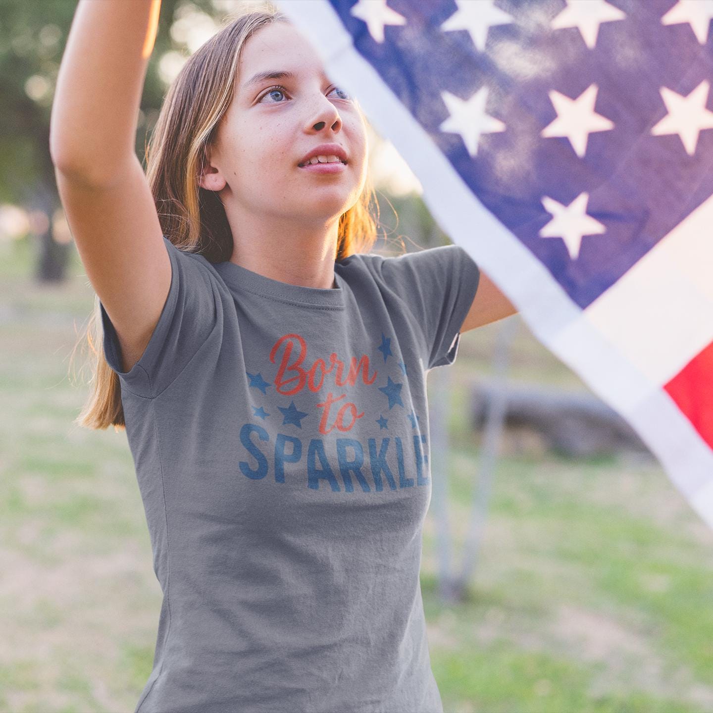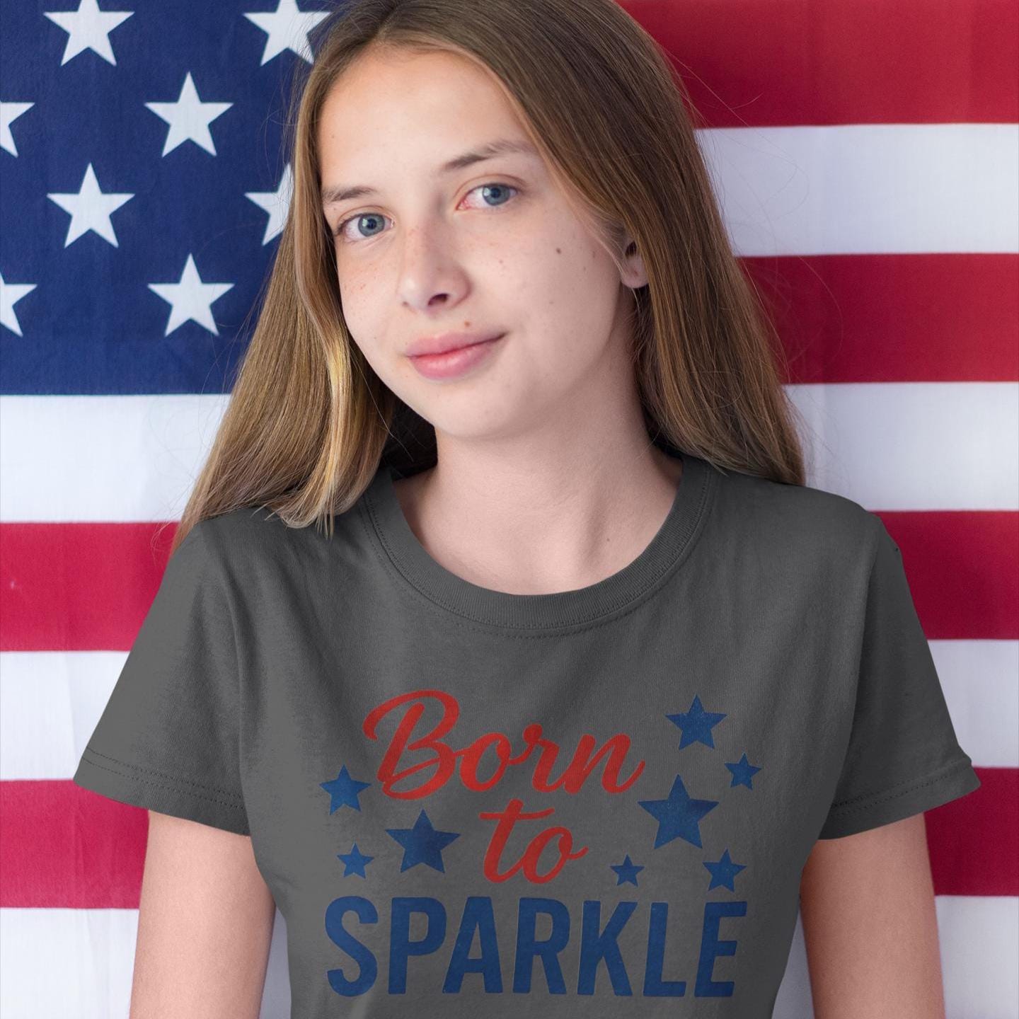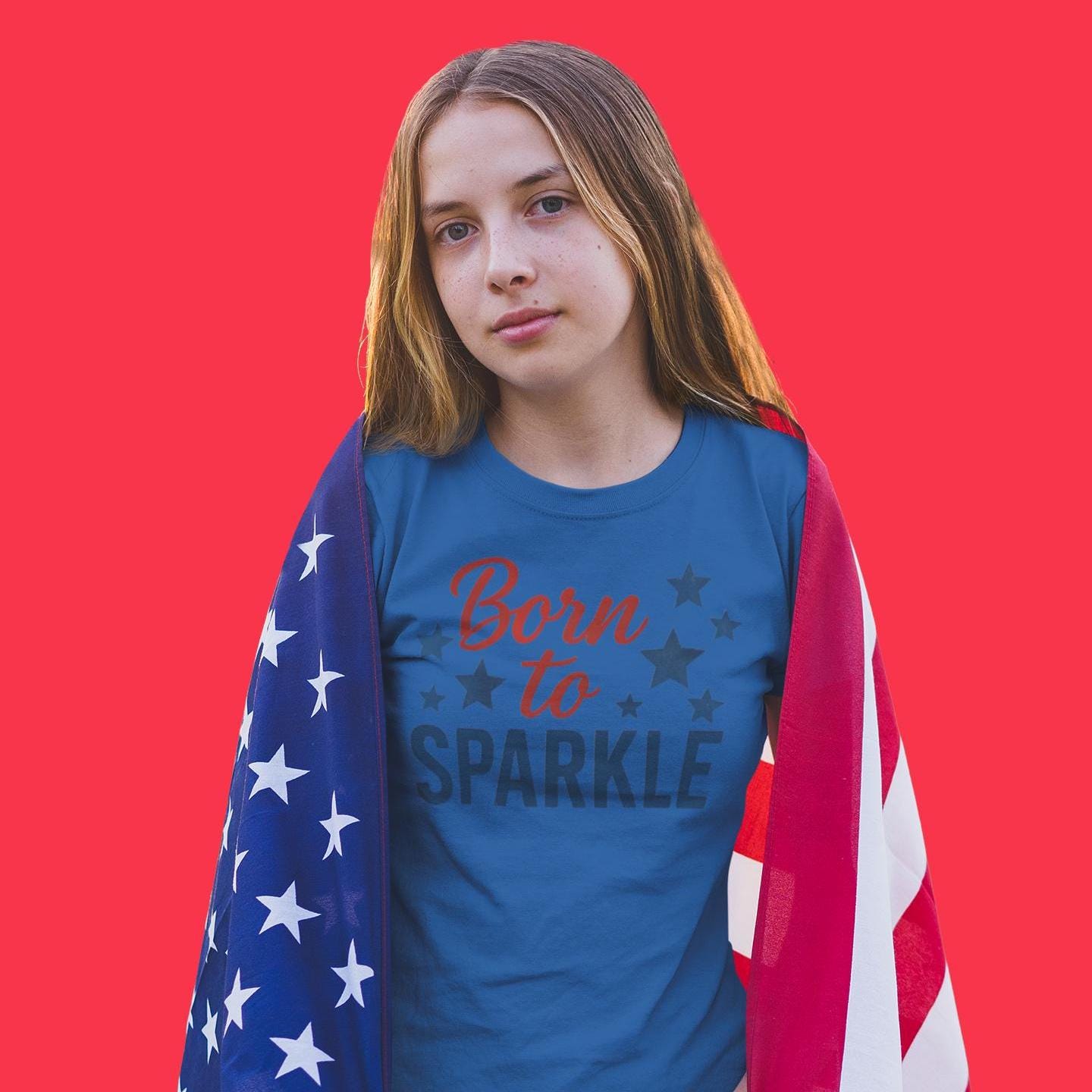 Celebrate the spirit of America with this vibrant 4th of July Kids T-Shirt for girls, featuring a bold "Born to Sparkle" patriotic design in classic red, white, and blue. The lively colors and star accents on this youth tee perfectly capture the festive energy of Independence Day while standing out with authentic, high-quality craftsmanship.