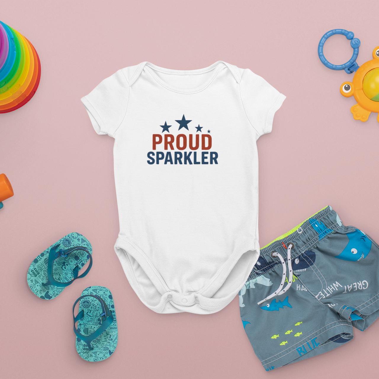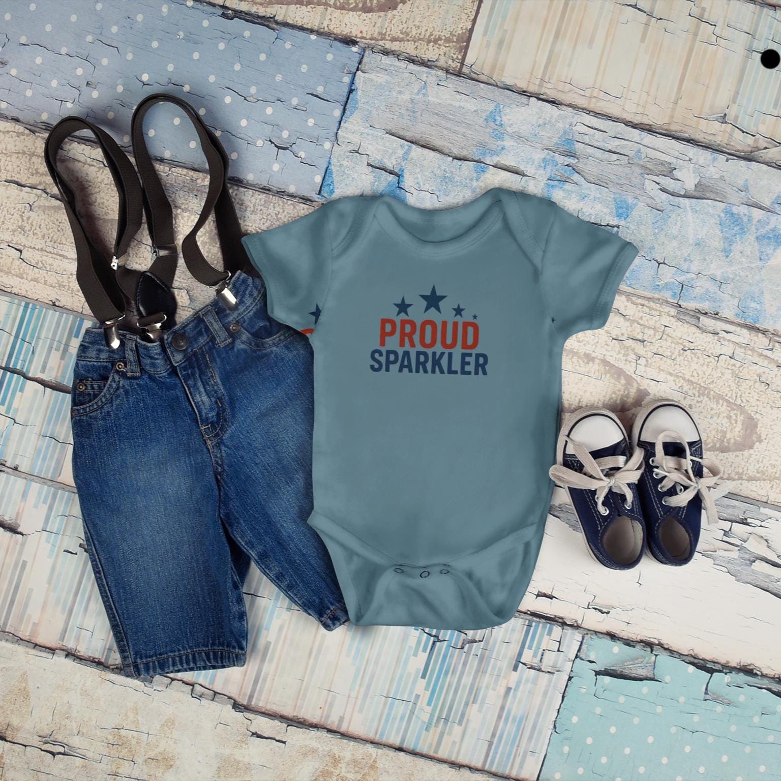4th of July Baby Onesie – Proud Sparkler Infant Bodysuit, Newborn Holiday Outfit, Cute Summer Celebration Gift