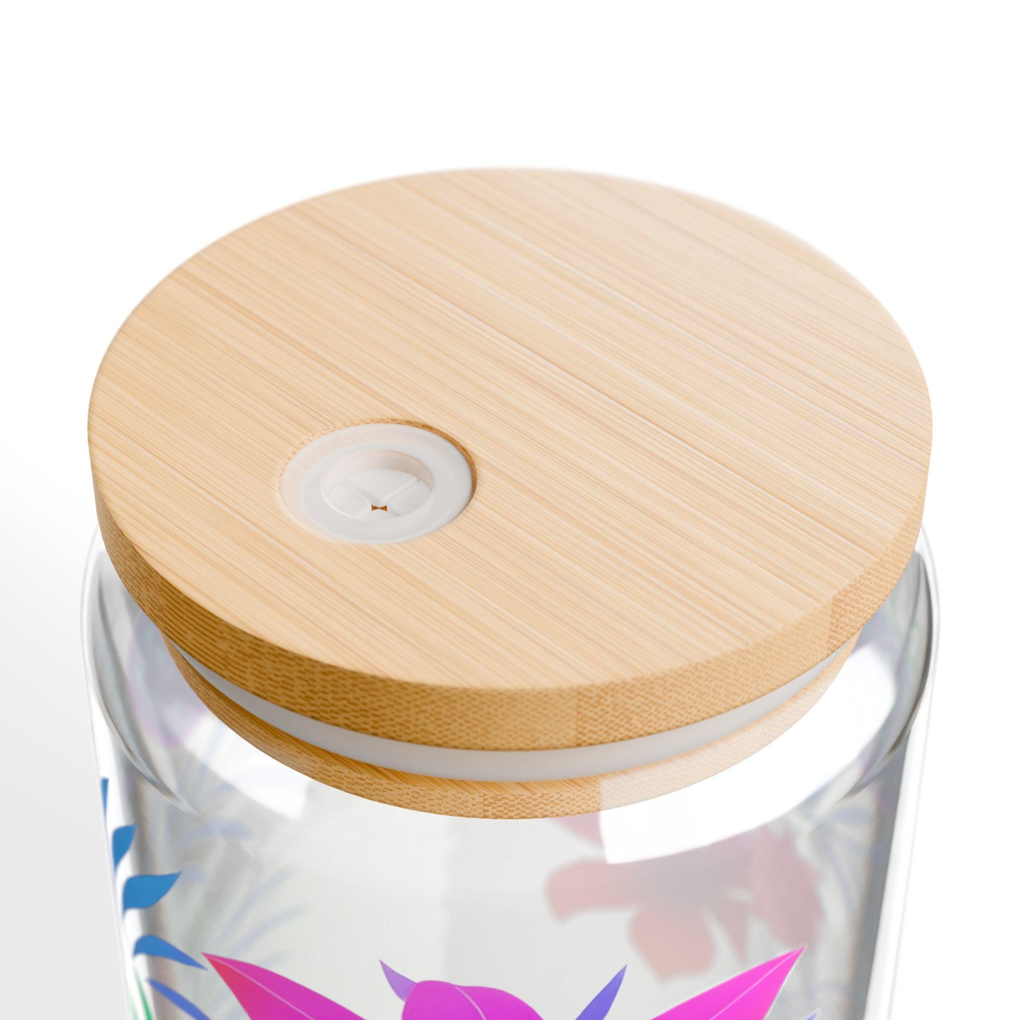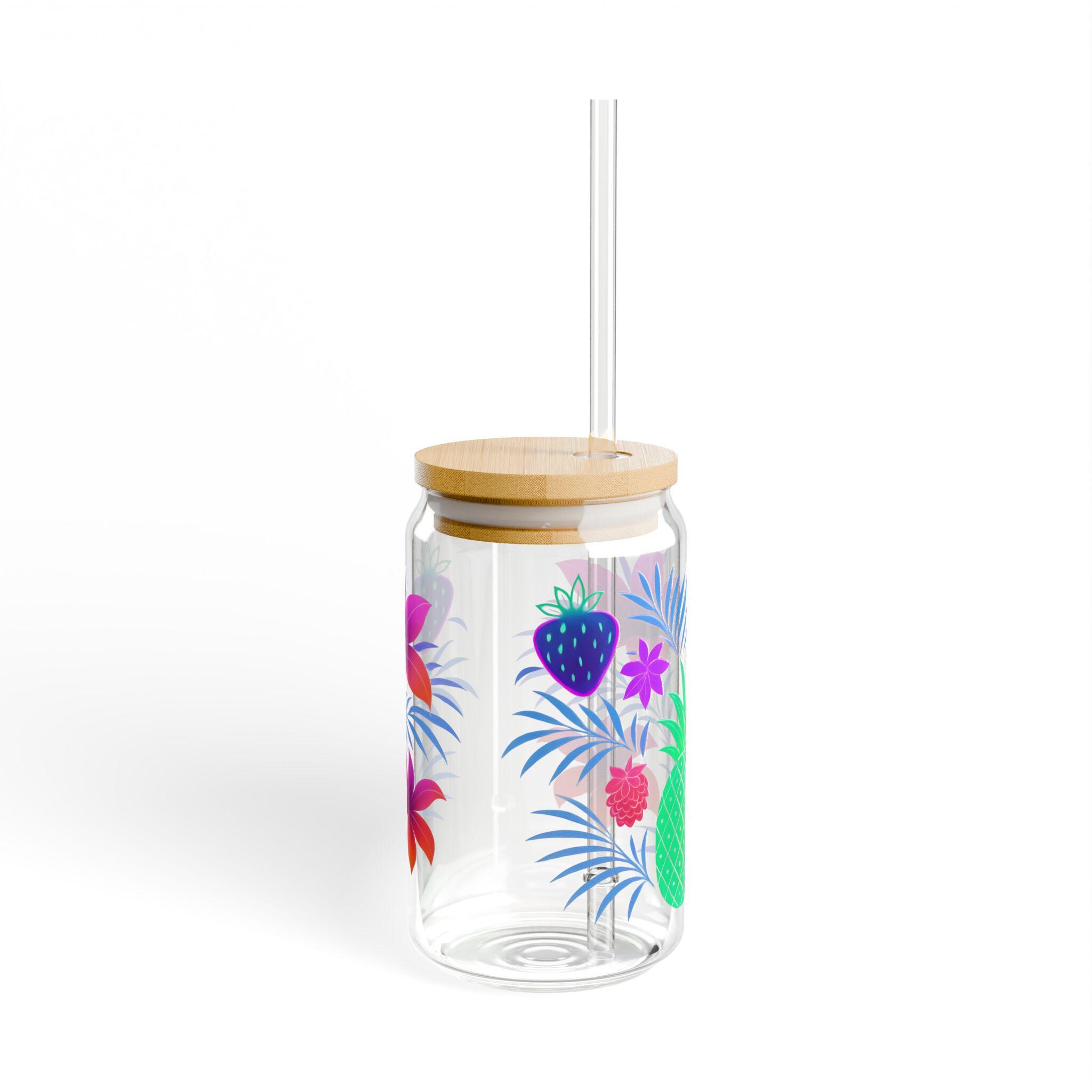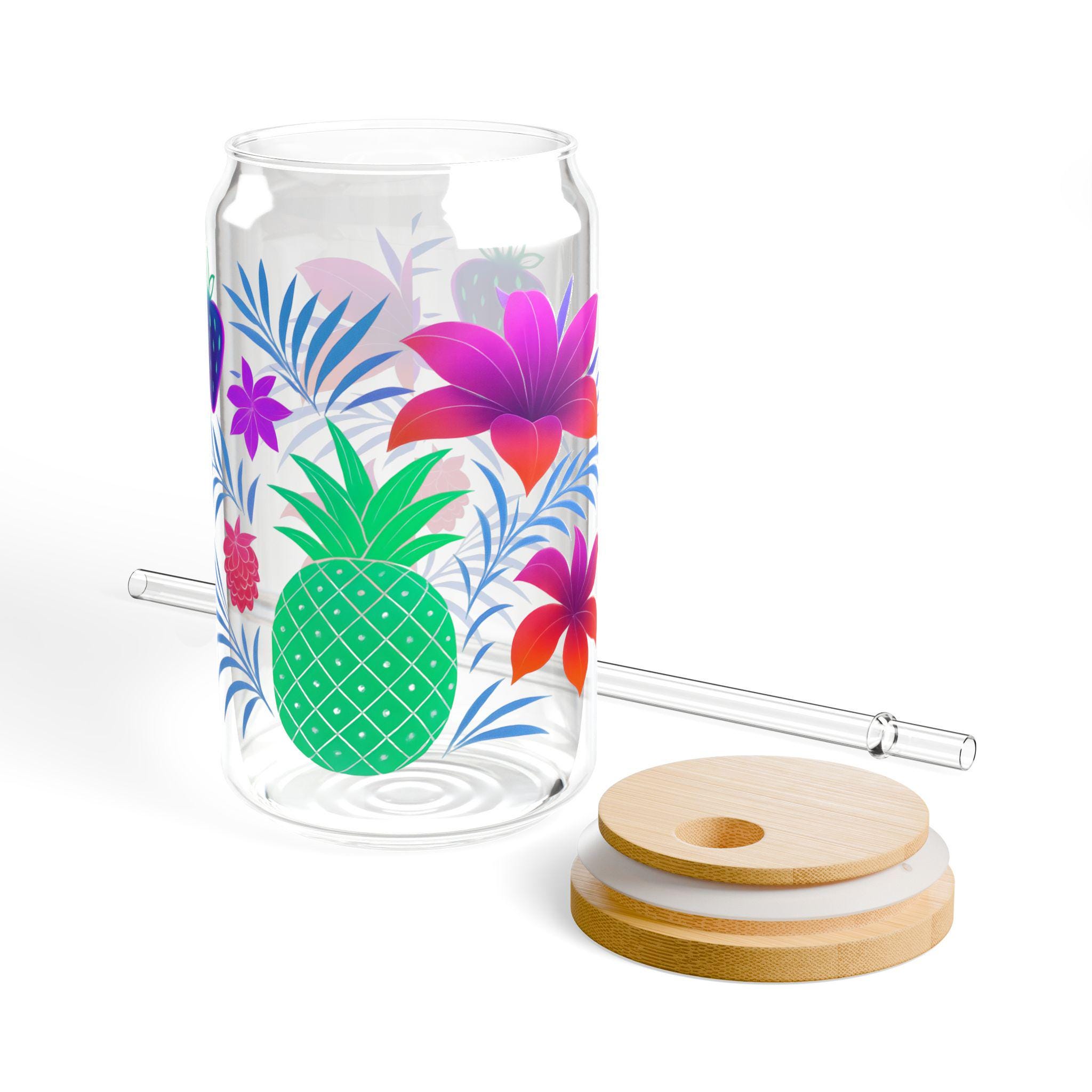 Tropical Sipper Glass: Fruit Design, Bamboo Lid & Tritan Straw