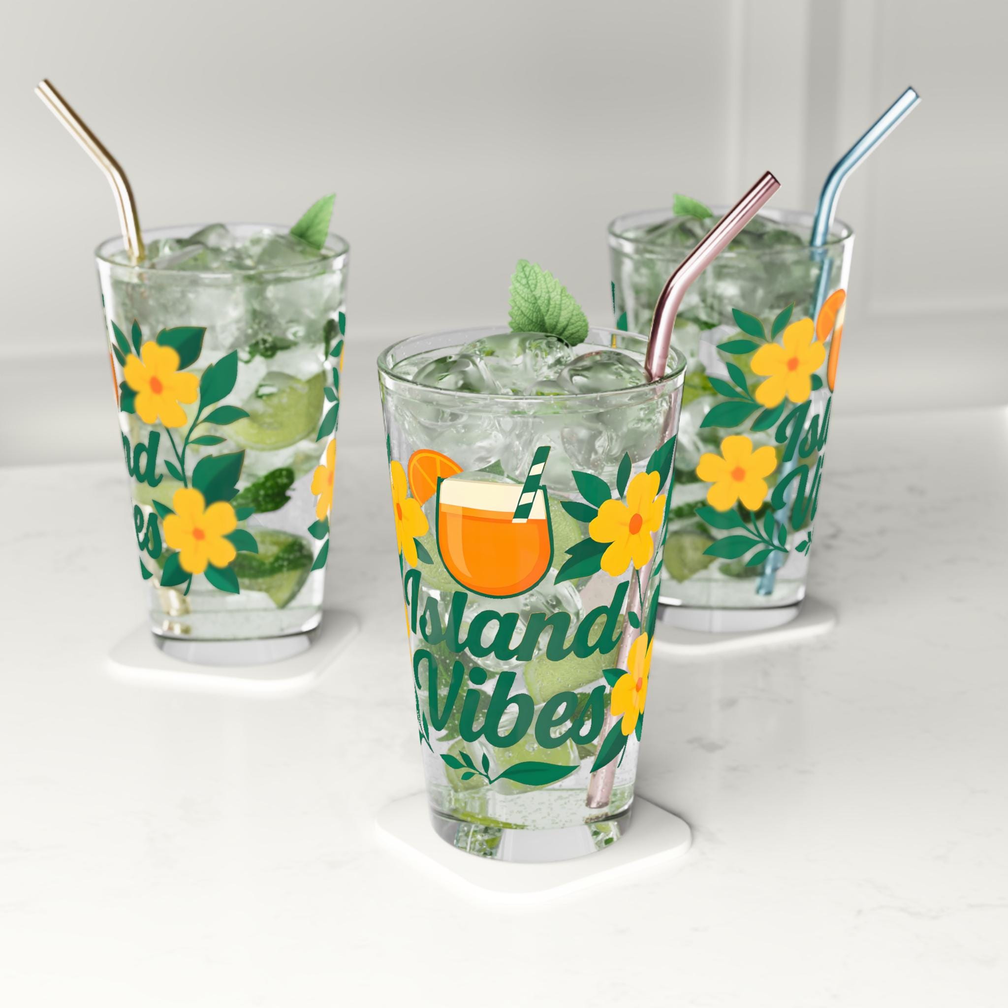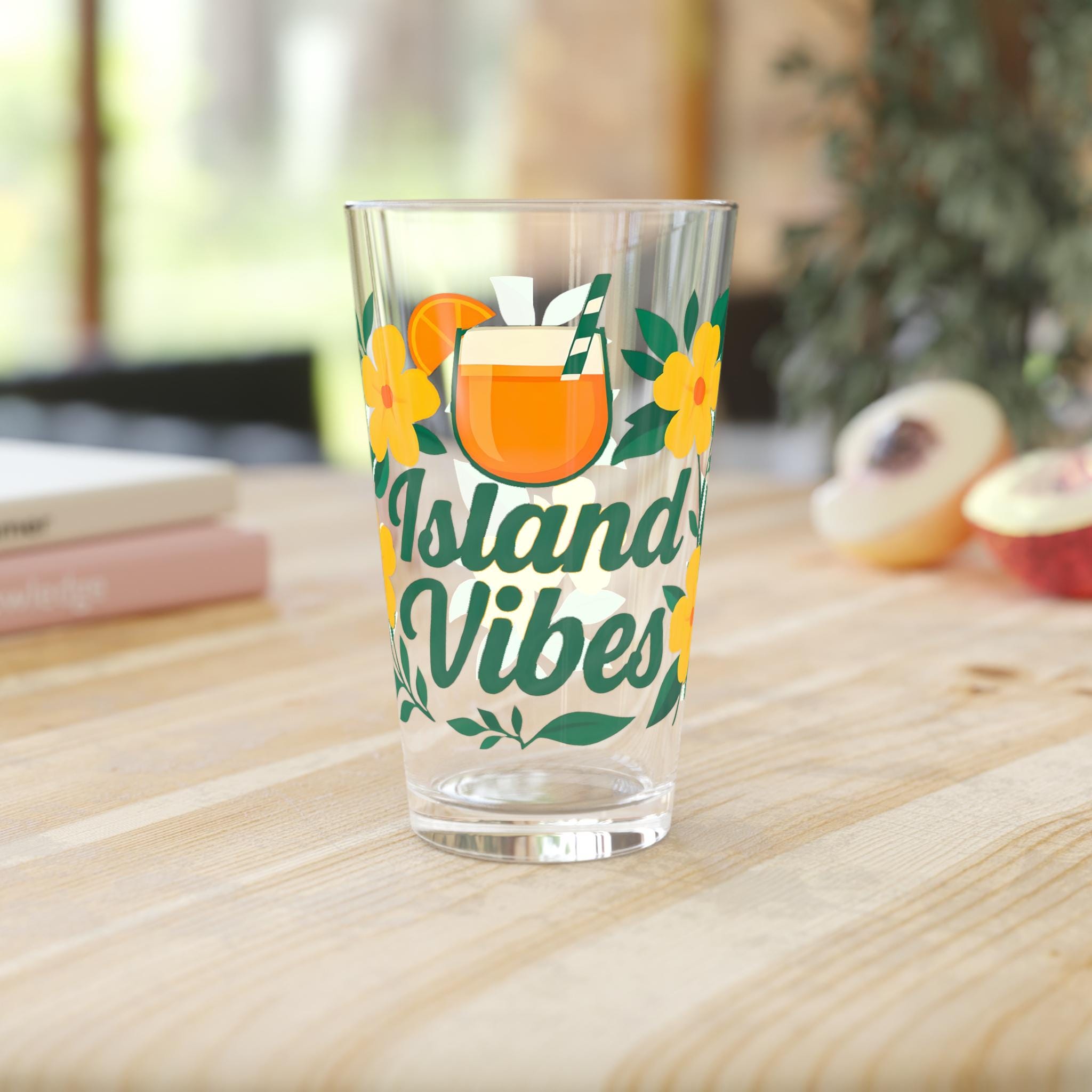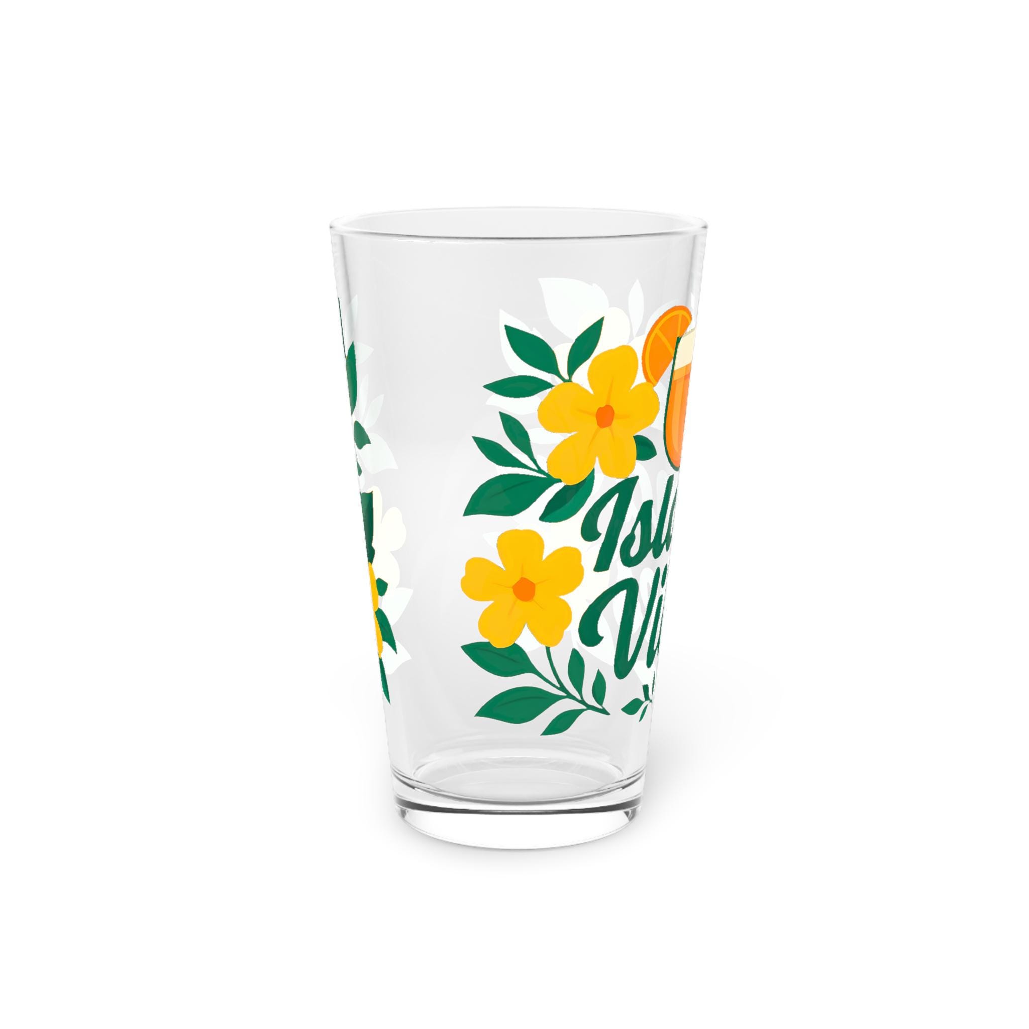 Island Vibes 16 oz Pint Glass, Tropical Drink Glass, Summer Beach Cup, Cocktail Glass Gift for Her, Fun Vacation Barware