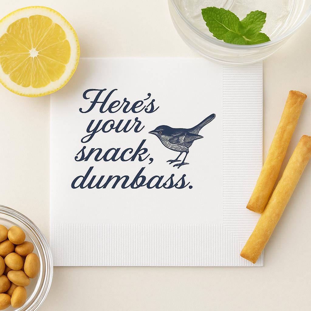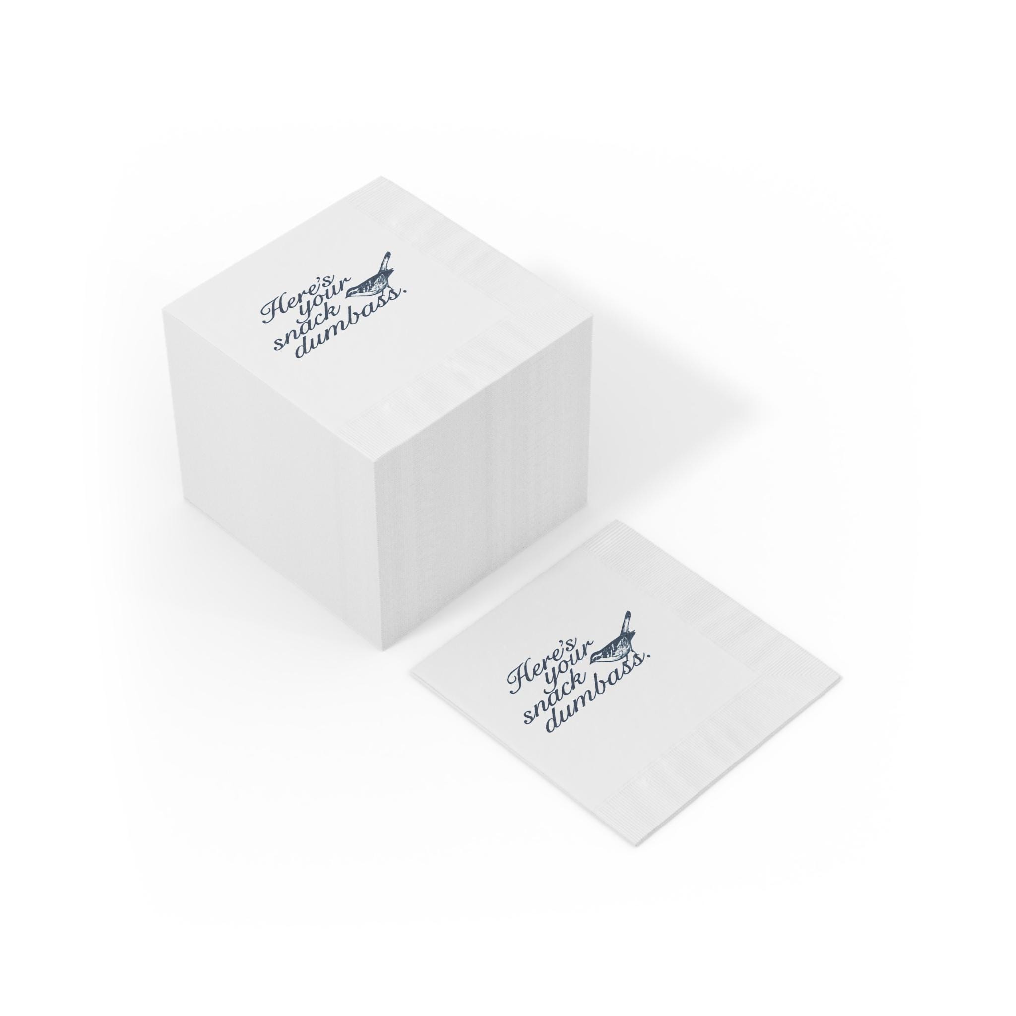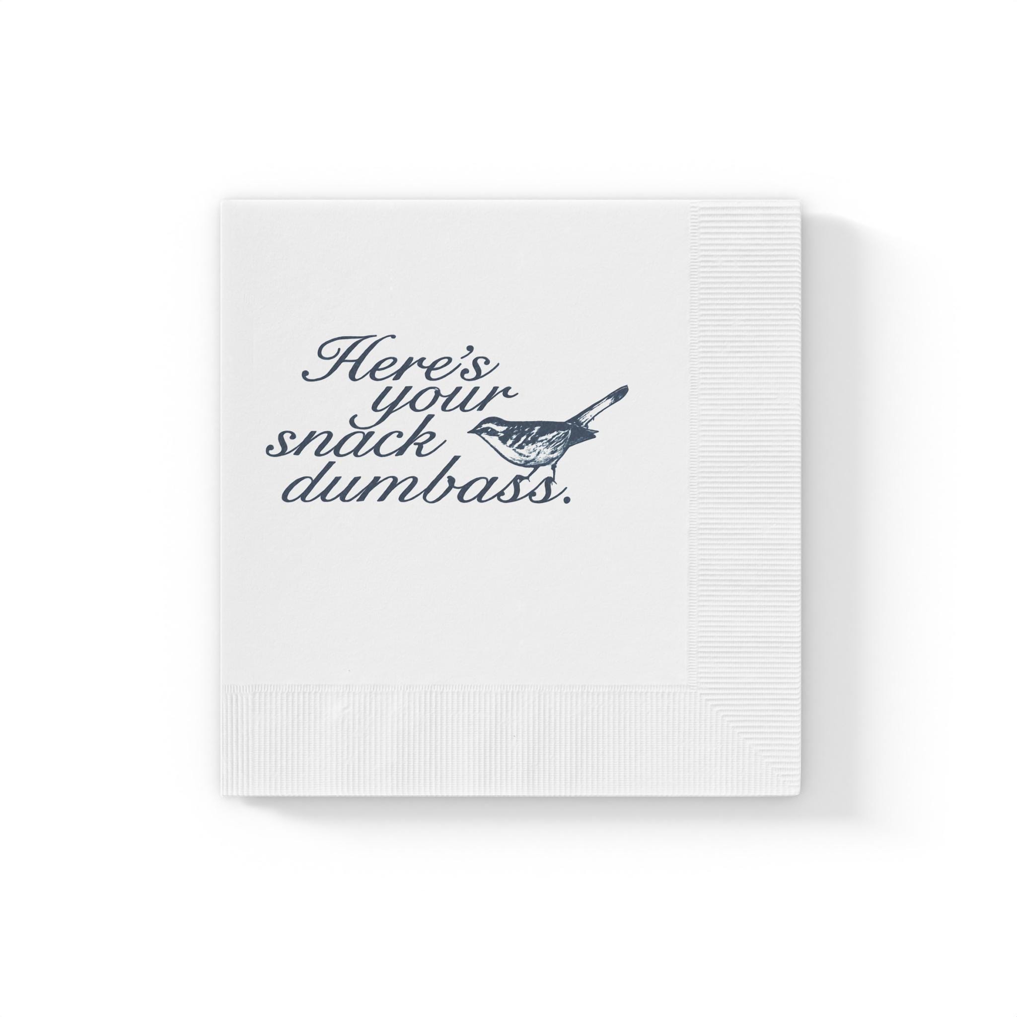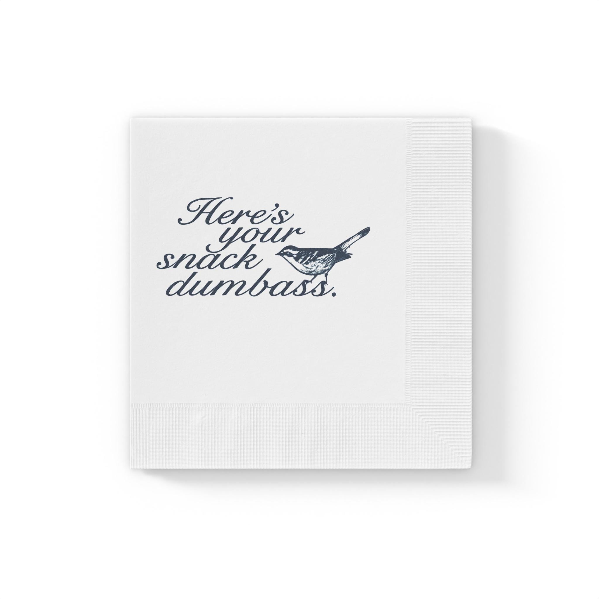 Funny Cocktail Napkins “Here’s Your Snack, Dumbass” – Sarcastic Hostess Gift, Party Decor, Snarky Barware, Gift for Friend, Fun Dinnerware