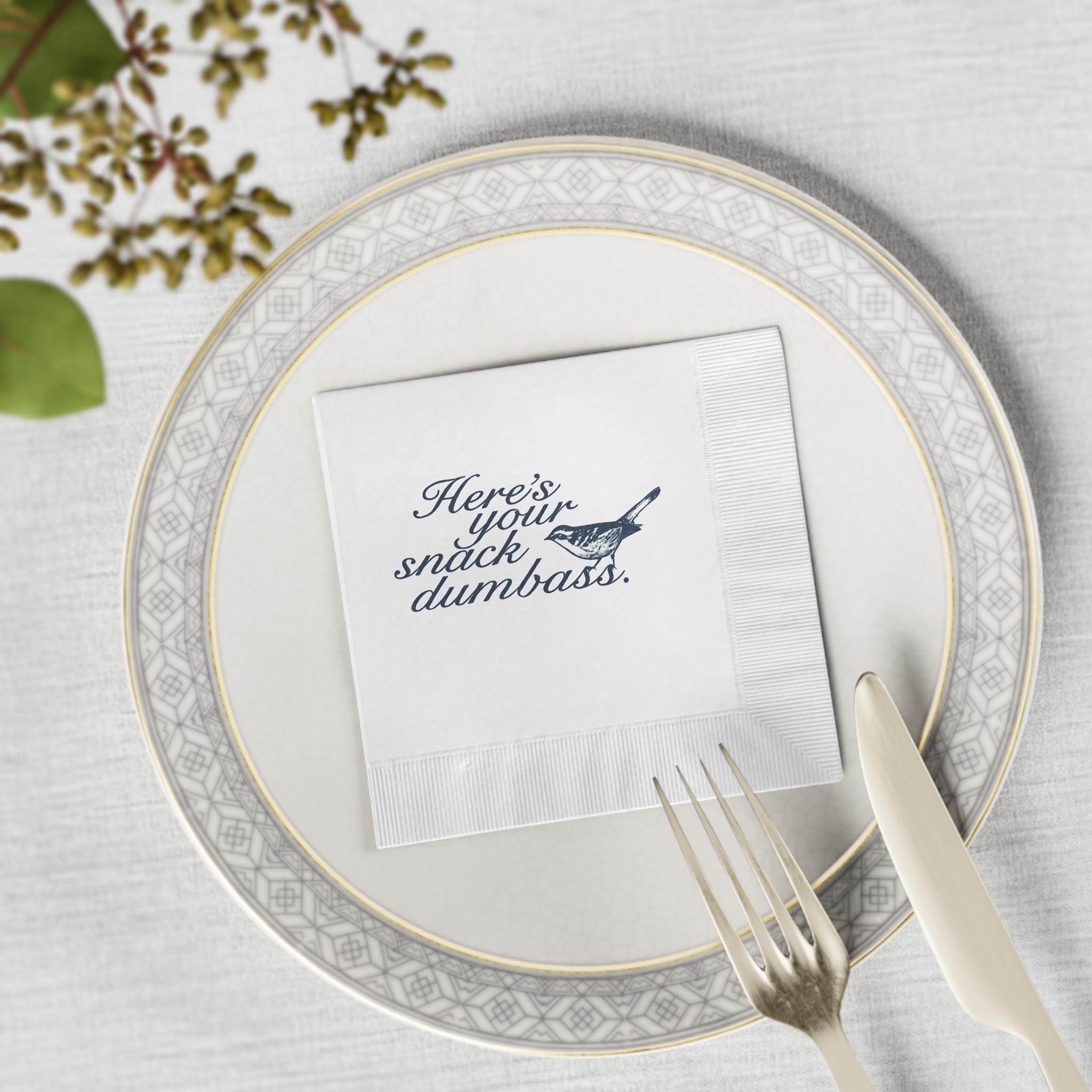 Whether you're gifting a sarcastic friend or elevating your own snack game, these napkins are proof that manners are optional, but style is mandatory.