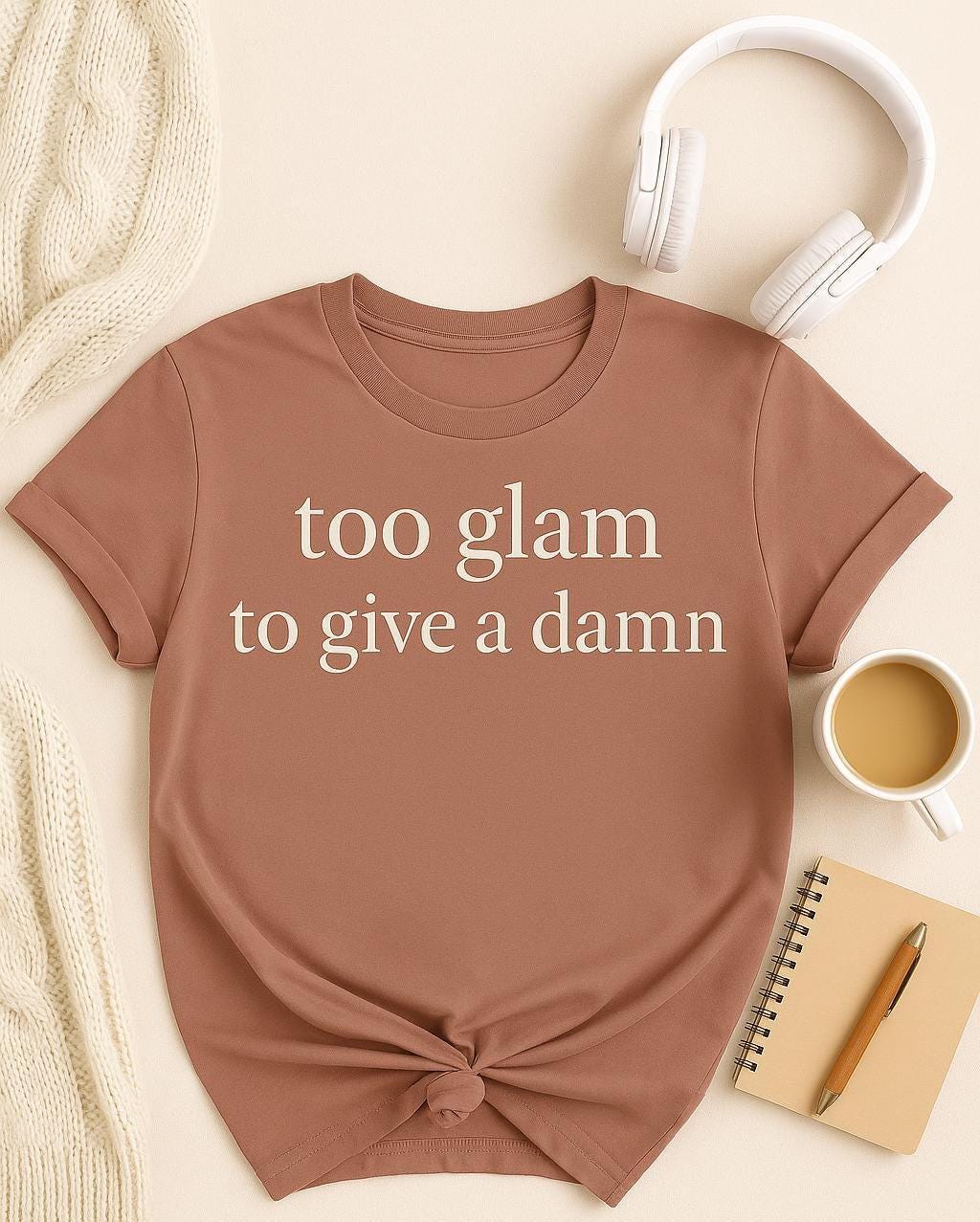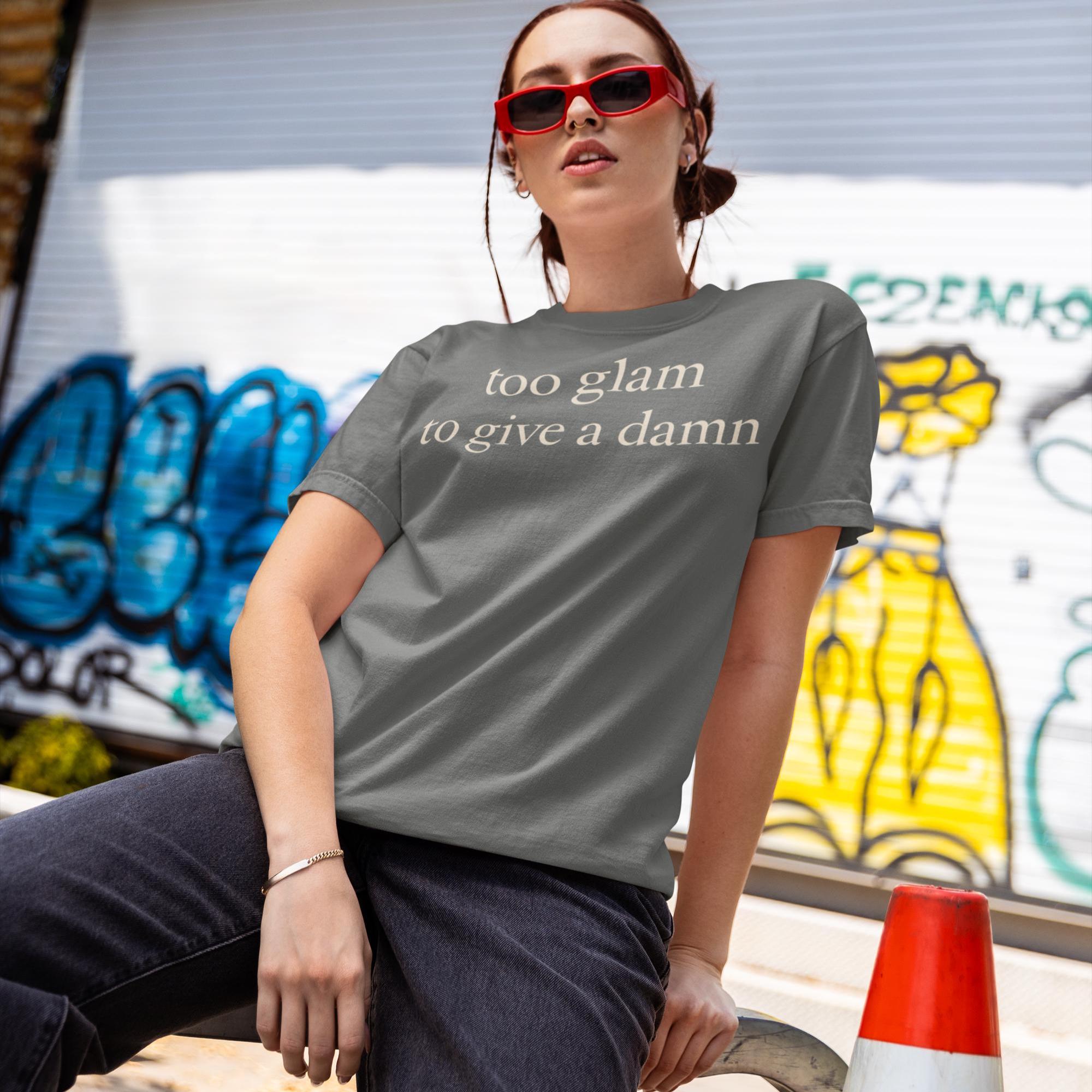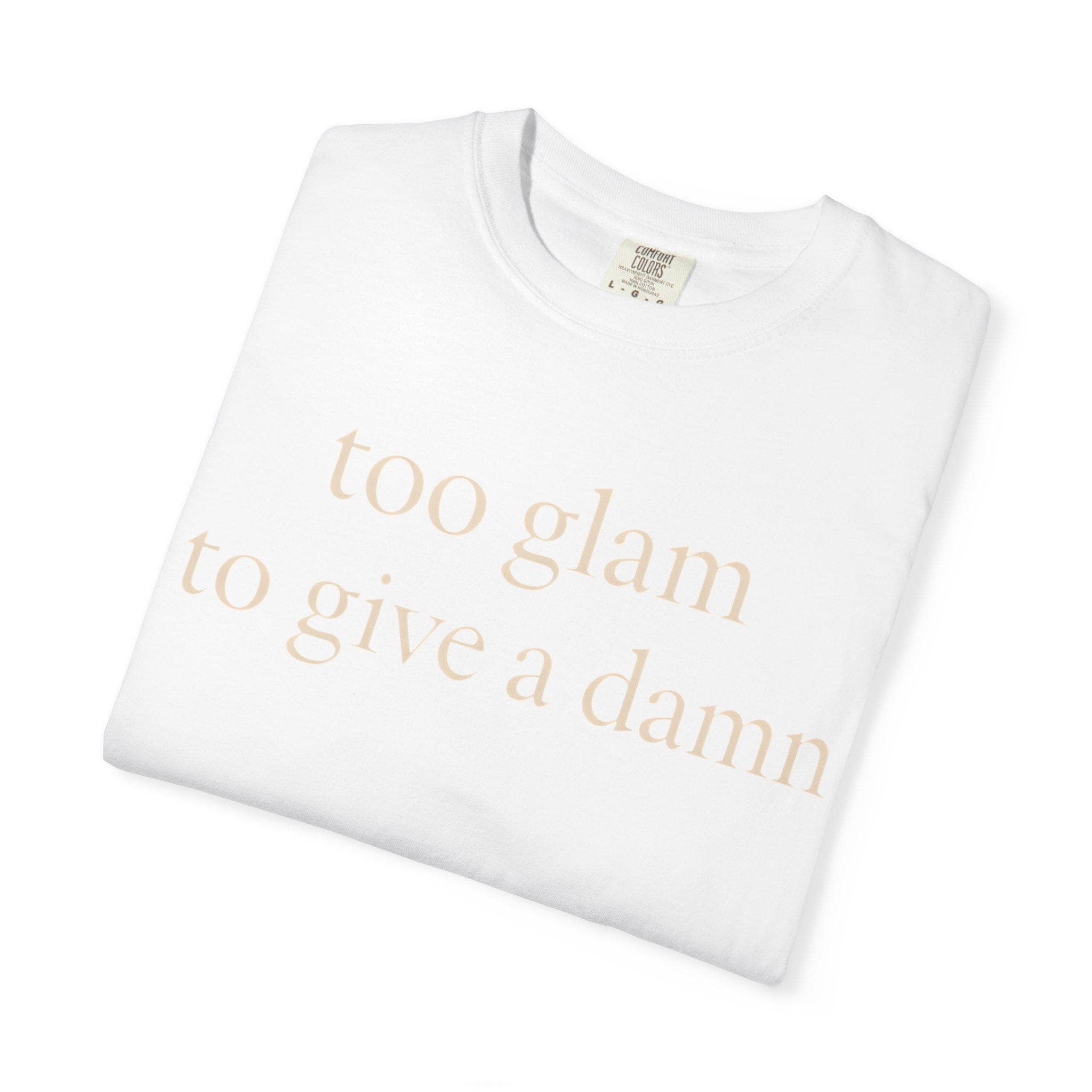 Too Glam to Give a Damn Tee – Comfort Colors Shirt for Women, Sassy Quote Gift, Whisper Girl Aesthetic, Minimalist Funny T-shirt