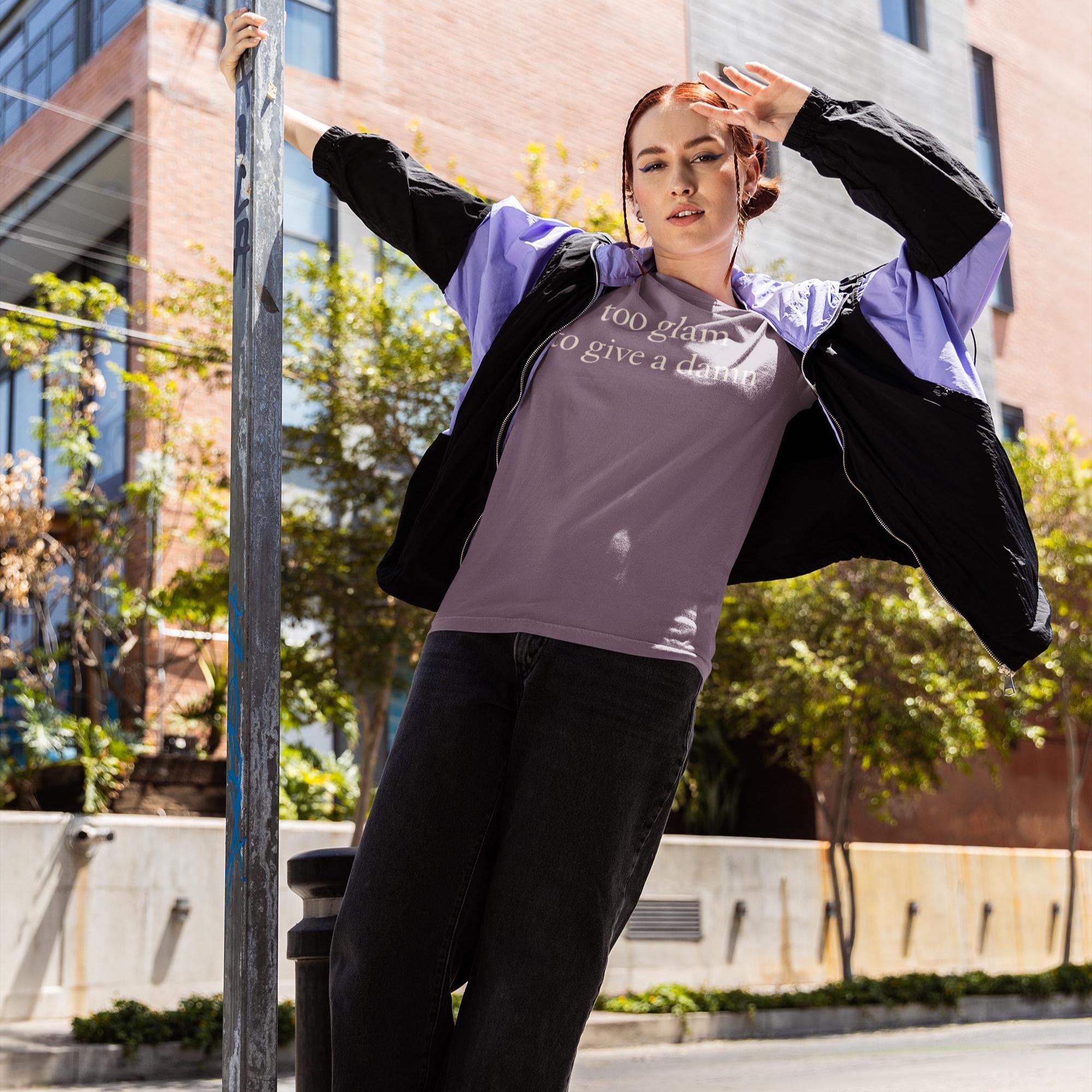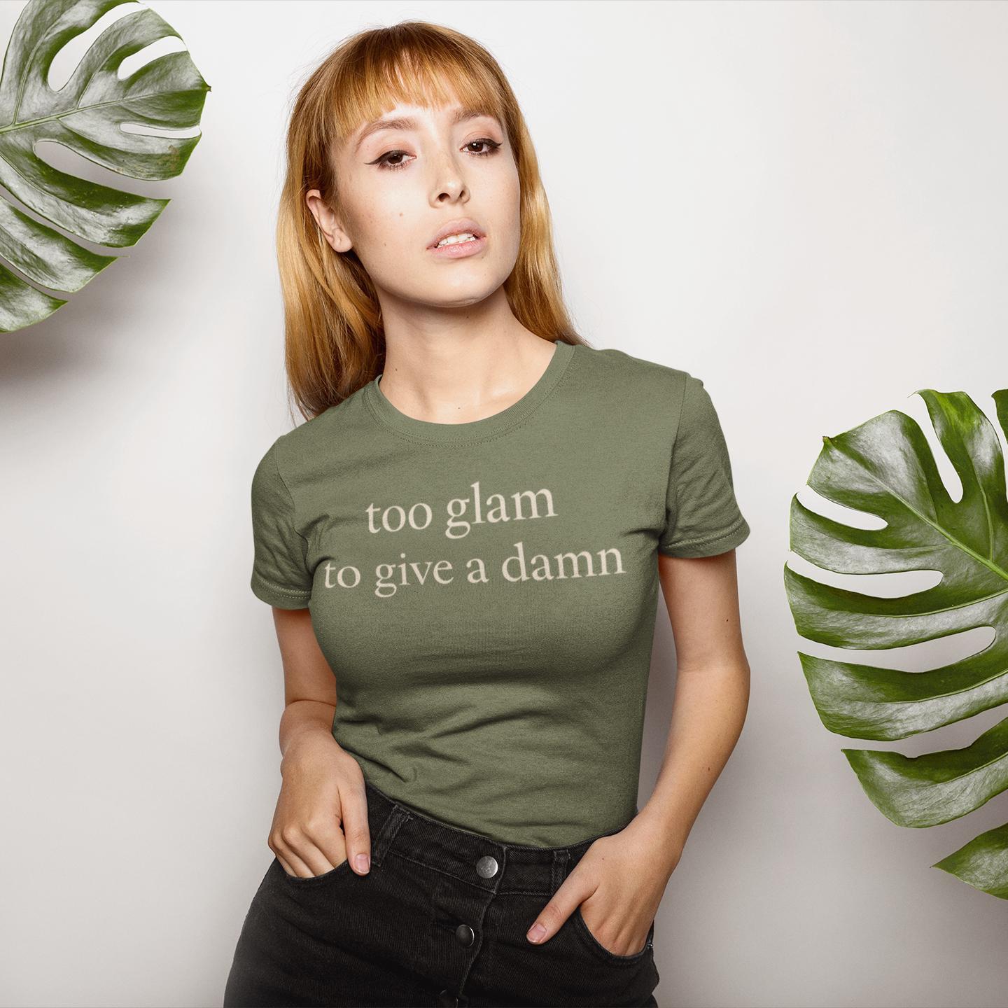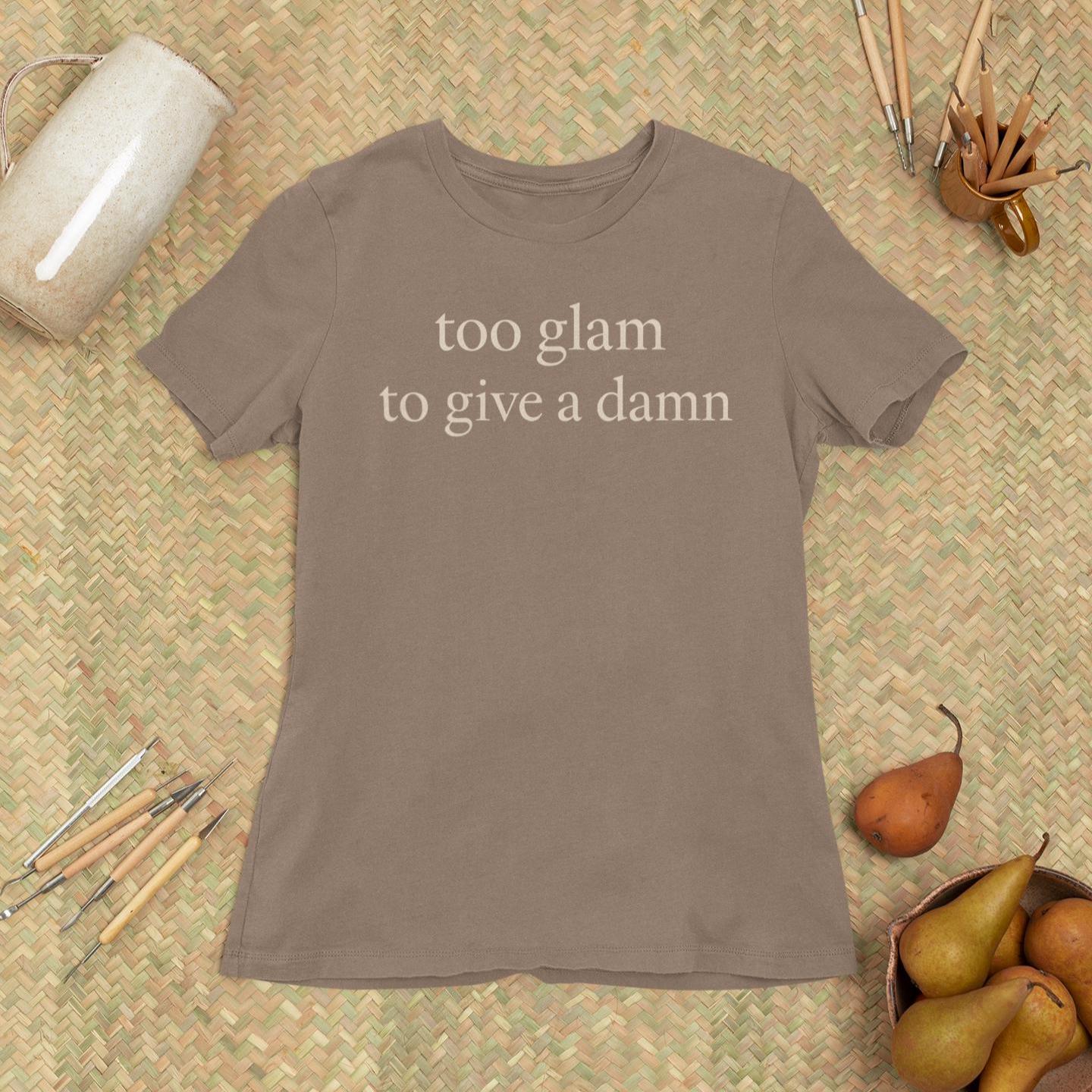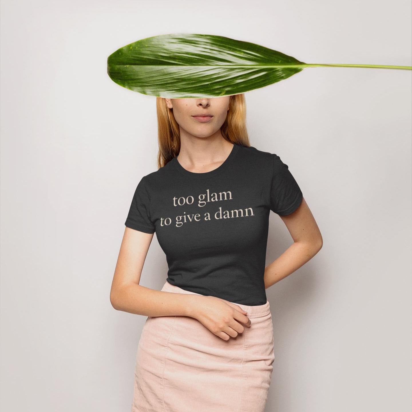 Too Glam to Give a Damn Tee – Comfort Colors Shirt for Women, Sassy Quote Gift, Whisper Girl Aesthetic, Minimalist Funny T-shirt
