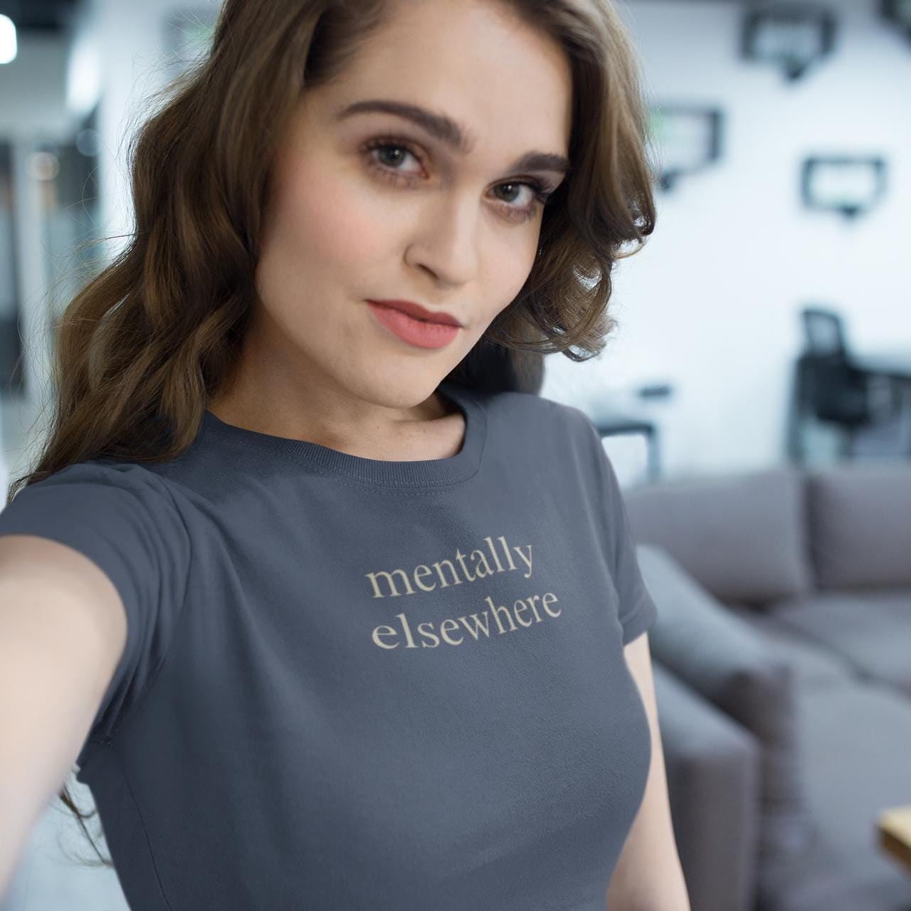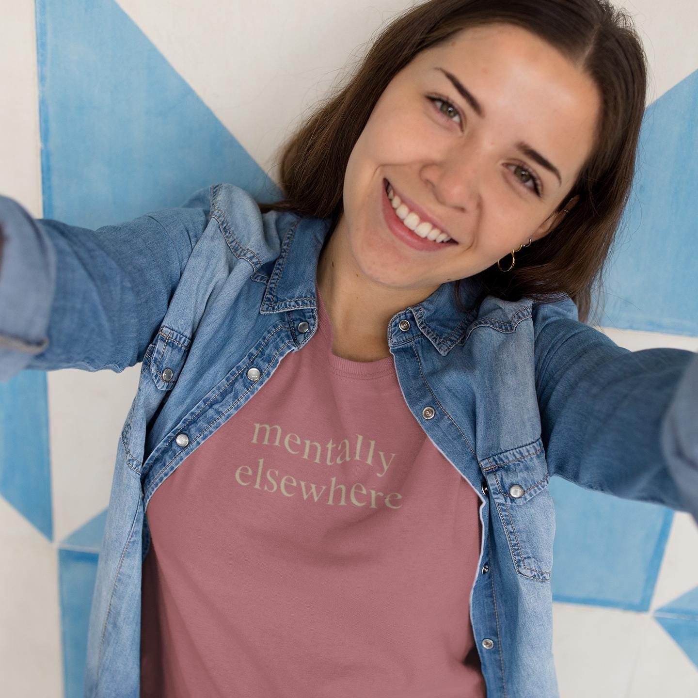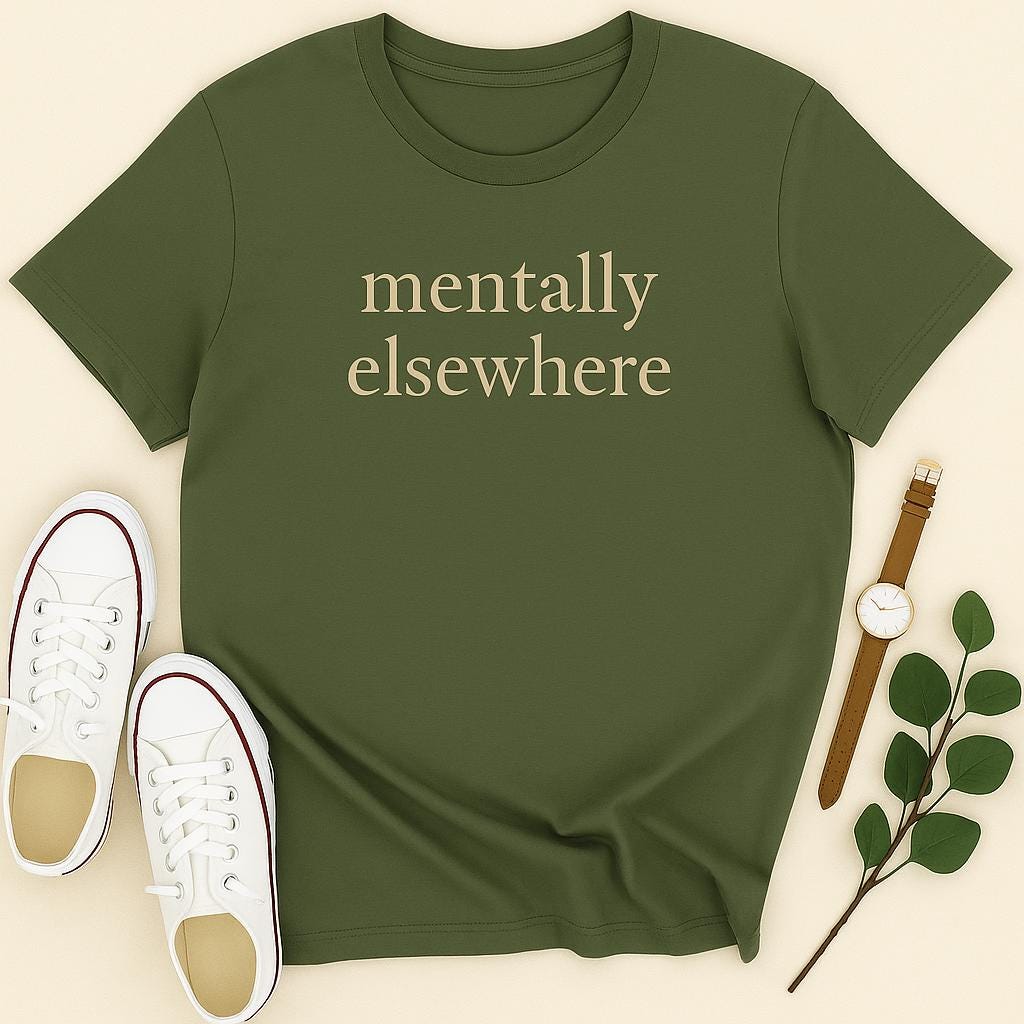 his Mentally Elsewhere tee is for anyone who’s here—but not really. Made with soft-washed Comfort Colors cotton, this sarcastic minimalist T-shirt is perfect for introverts, daydreamers, and overthinkers who love a neutral, cozy vibe. Whether it’s a Zoom call or Sunday coffee, this tee keeps your energy politely distant.