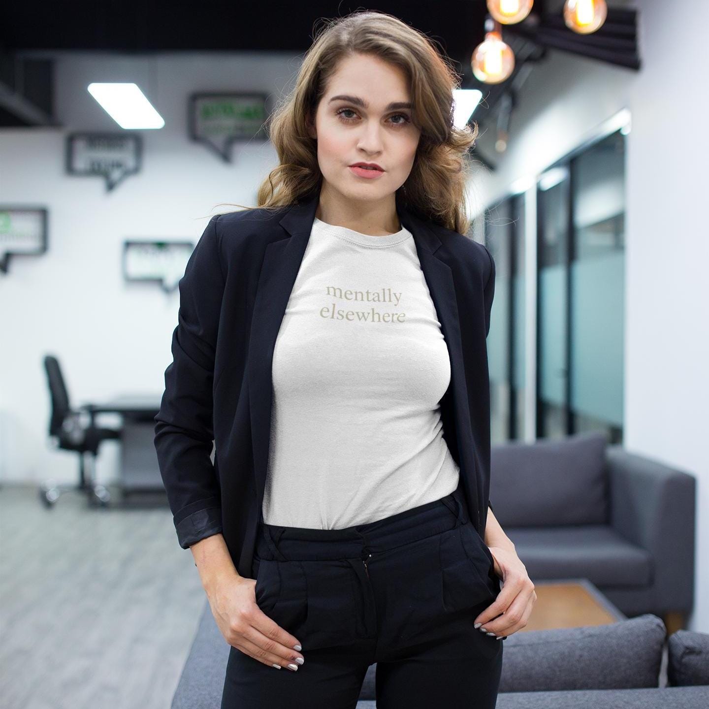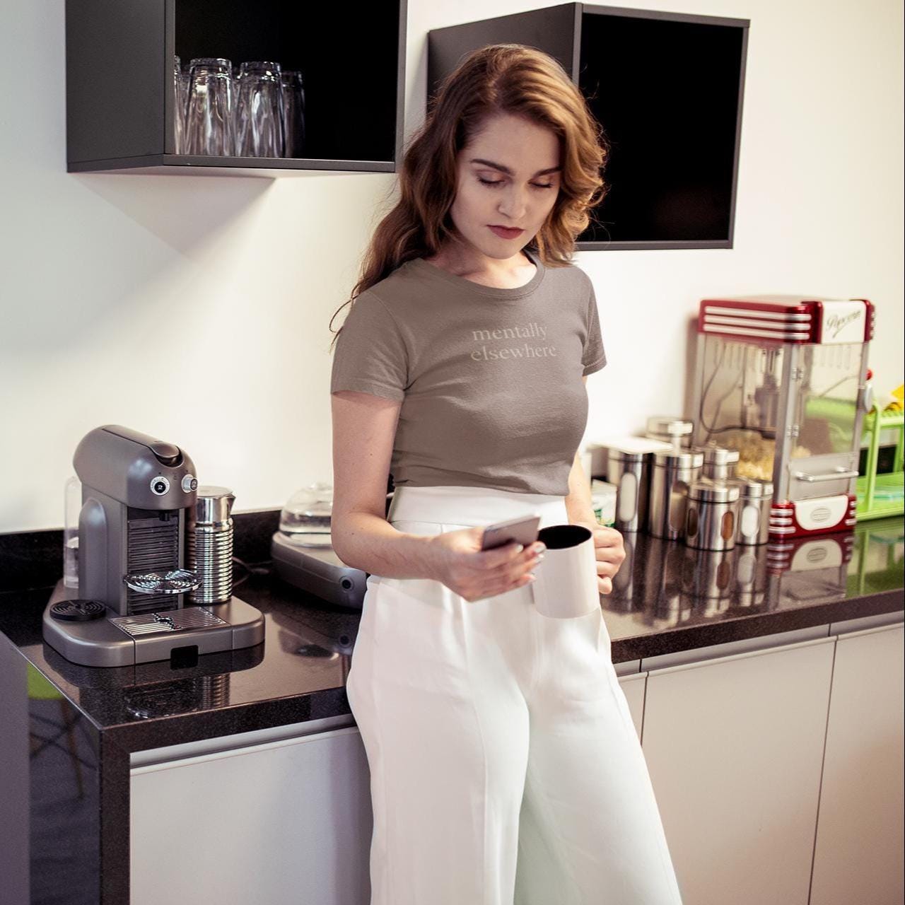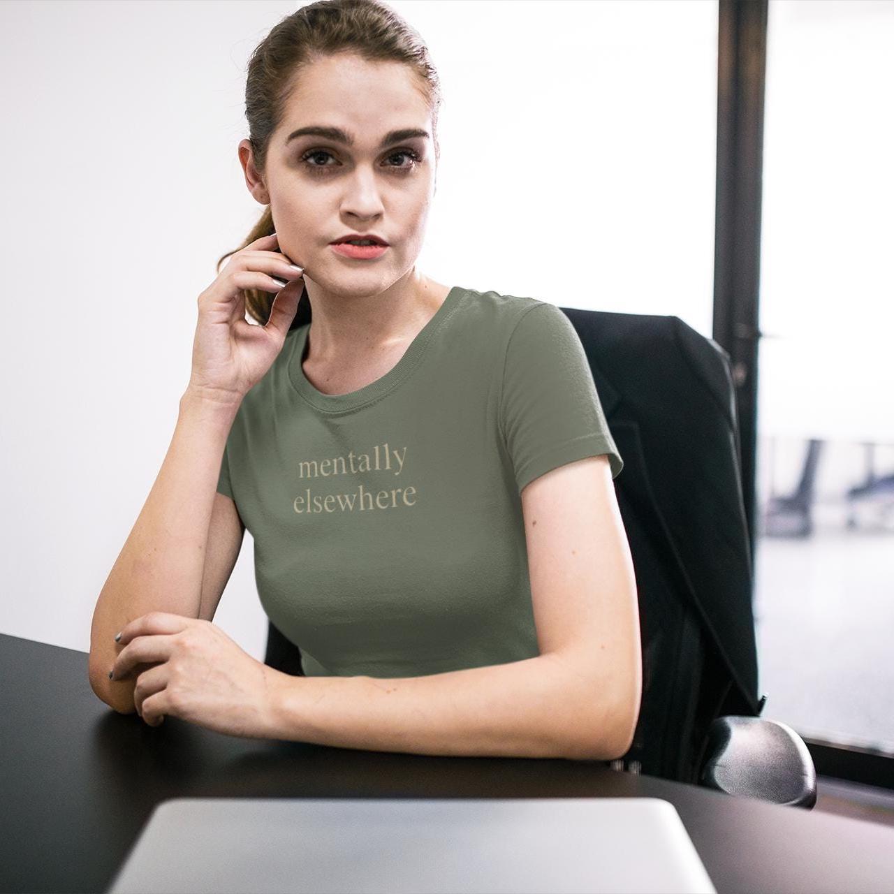his Mentally Elsewhere tee is for anyone who’s here—but not really. Made with soft-washed Comfort Colors cotton, this sarcastic minimalist T-shirt is perfect for introverts, daydreamers, and overthinkers who love a neutral, cozy vibe. Whether it’s a Zoom call or Sunday coffee, this tee keeps your energy politely distant.