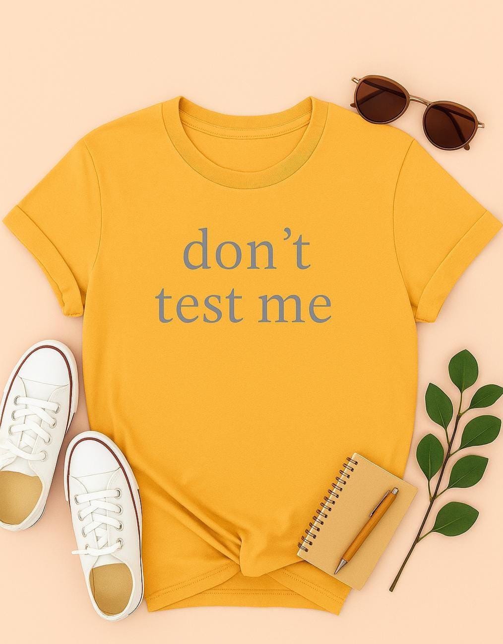 This Don’t Test Me tee brings bold energy in a soft voice—just like you. Made with premium Comfort Colors 1717 cotton, this buttery yellow shirt is your go-to for passive-aggressive flair. Whether you’re shutting it down at brunch or scrolling unbothered, this Whisper Girl staple says it all.