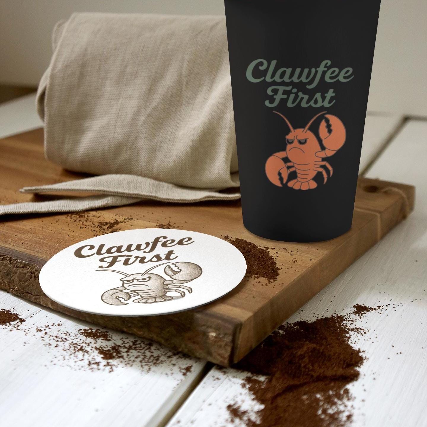 Keep your surfaces safe and your mood known with the “Clawfee First” coaster. Featuring a cranky lobster and vintage script, this cork-backed drink mat is perfect for crabby mornings, seafood lovers, or anyone with a caffeine-first policy.