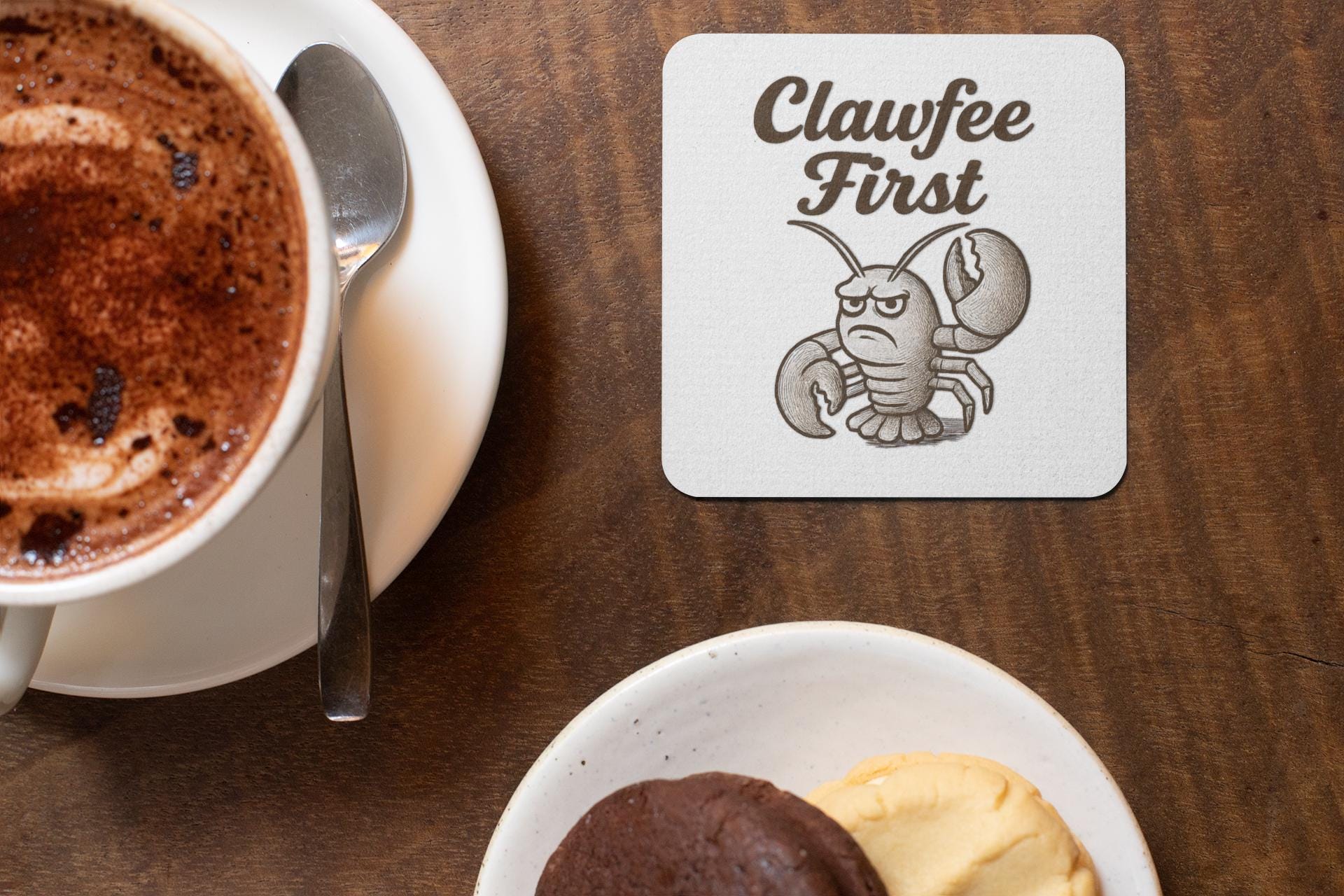 Funny Lobster Coaster: Clawfee First - Crabby Morning Humor Decor