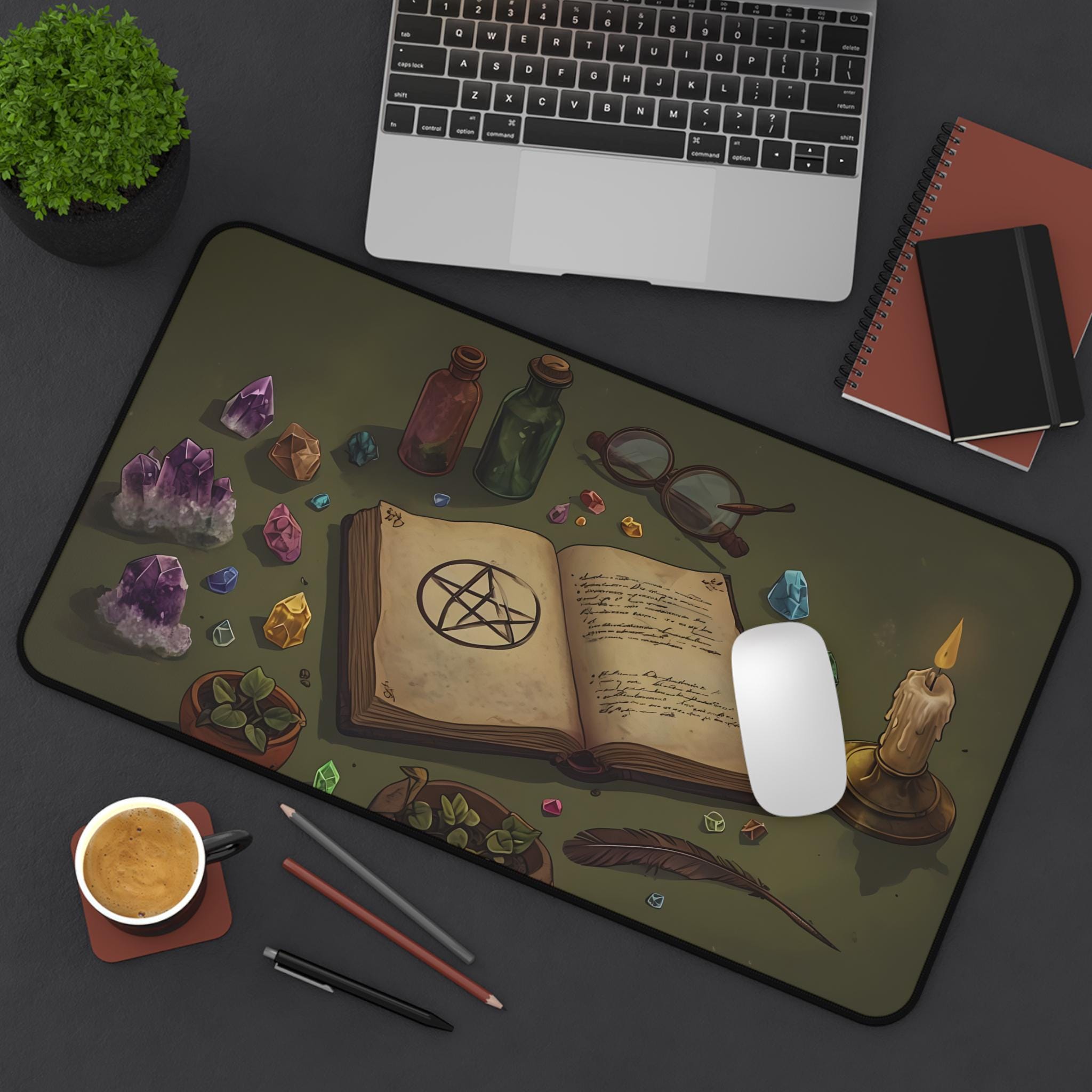 Mystical Witchy Desk Mat: Boho Home Office Decor, Crystal Lover Gift