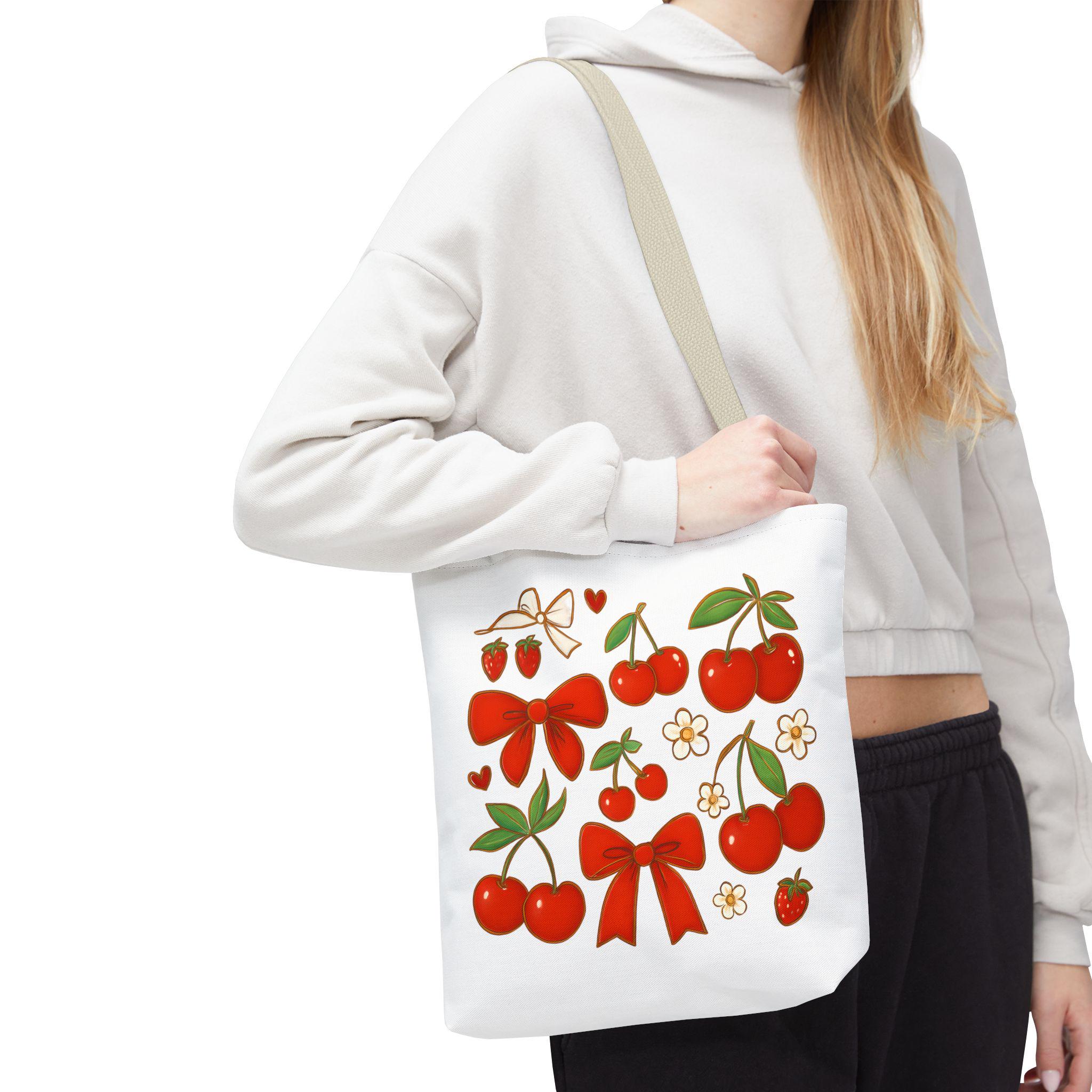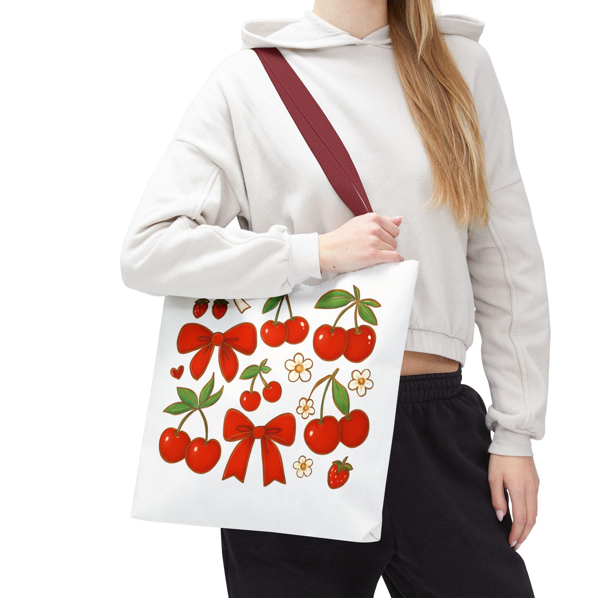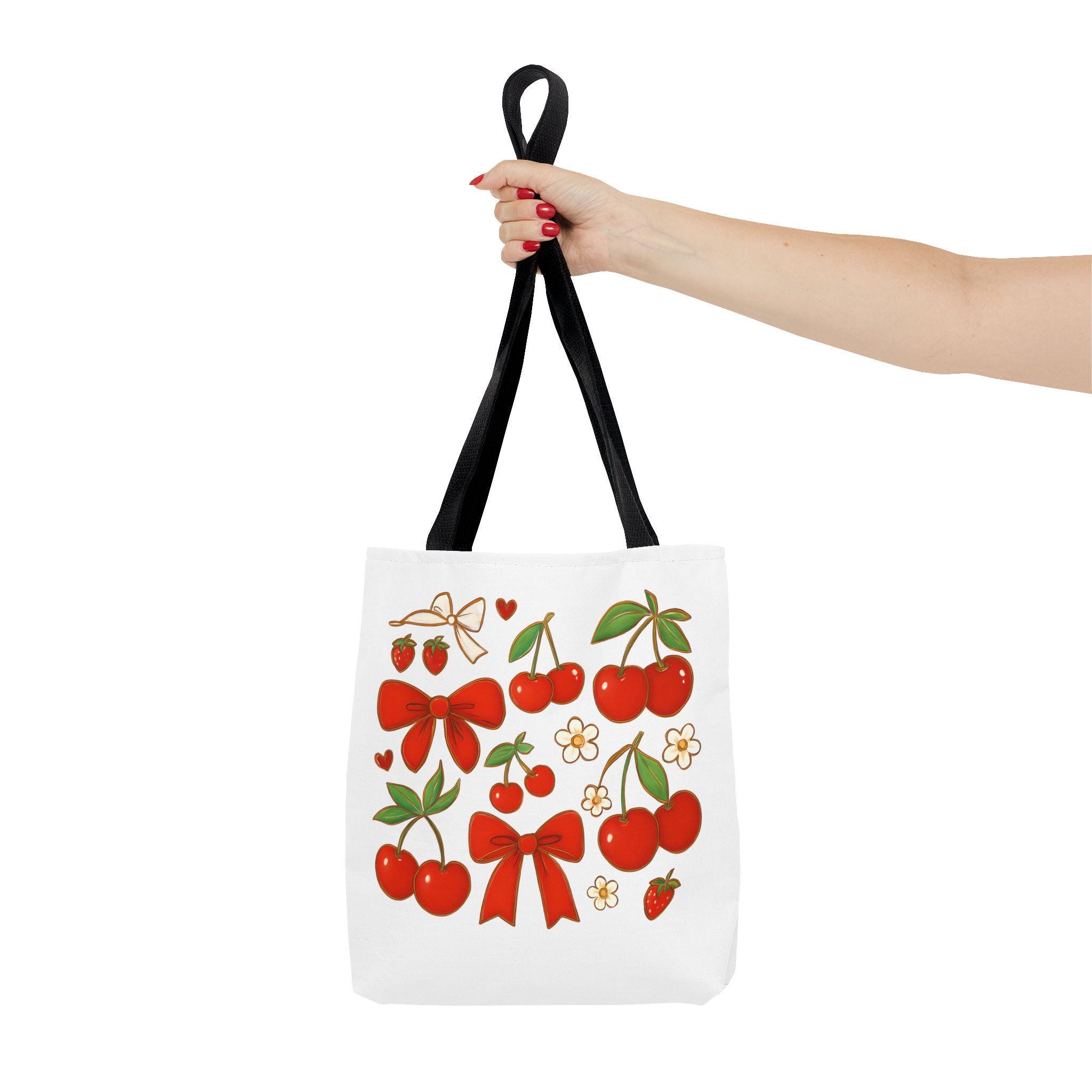 Cherry Bow Tote Bag: Cottagecore Fruit & Floral Canvas Bag
