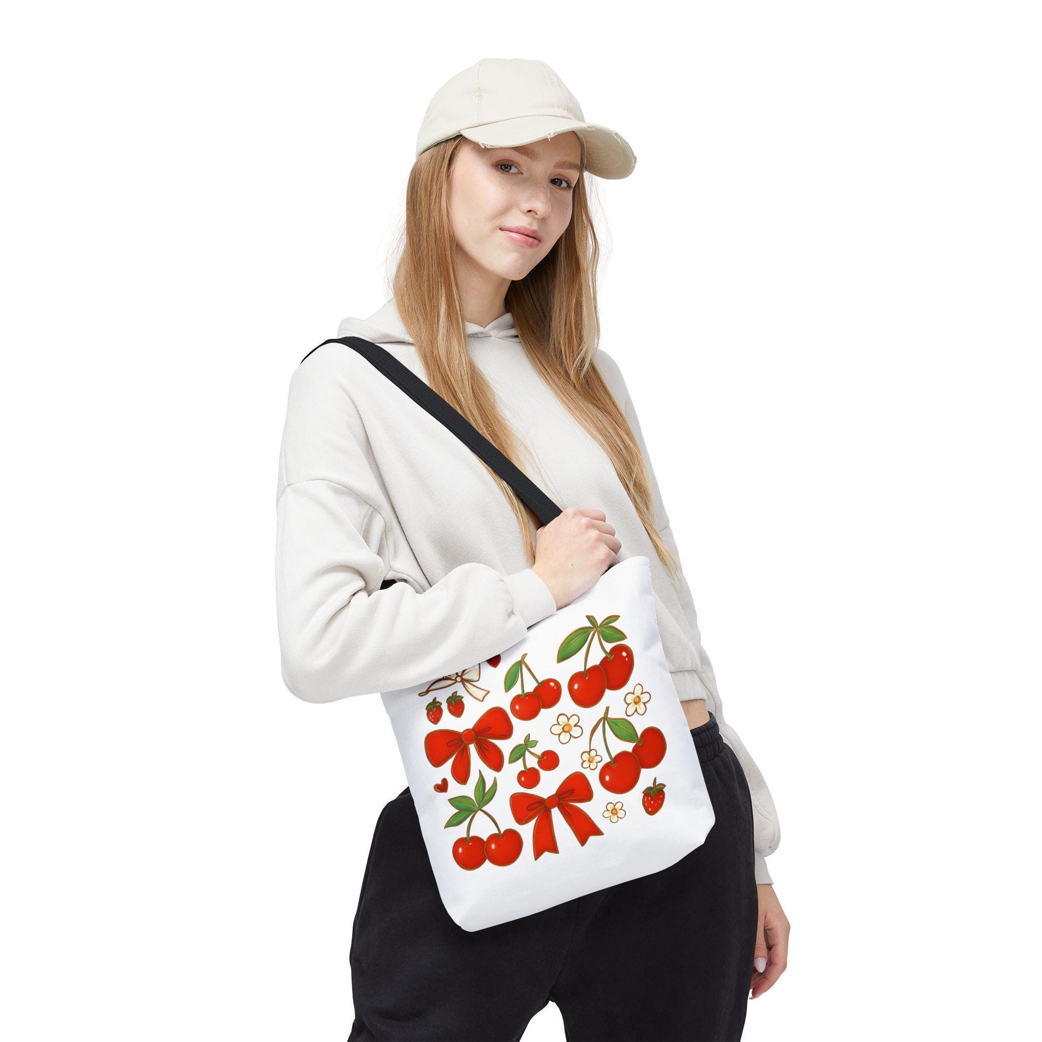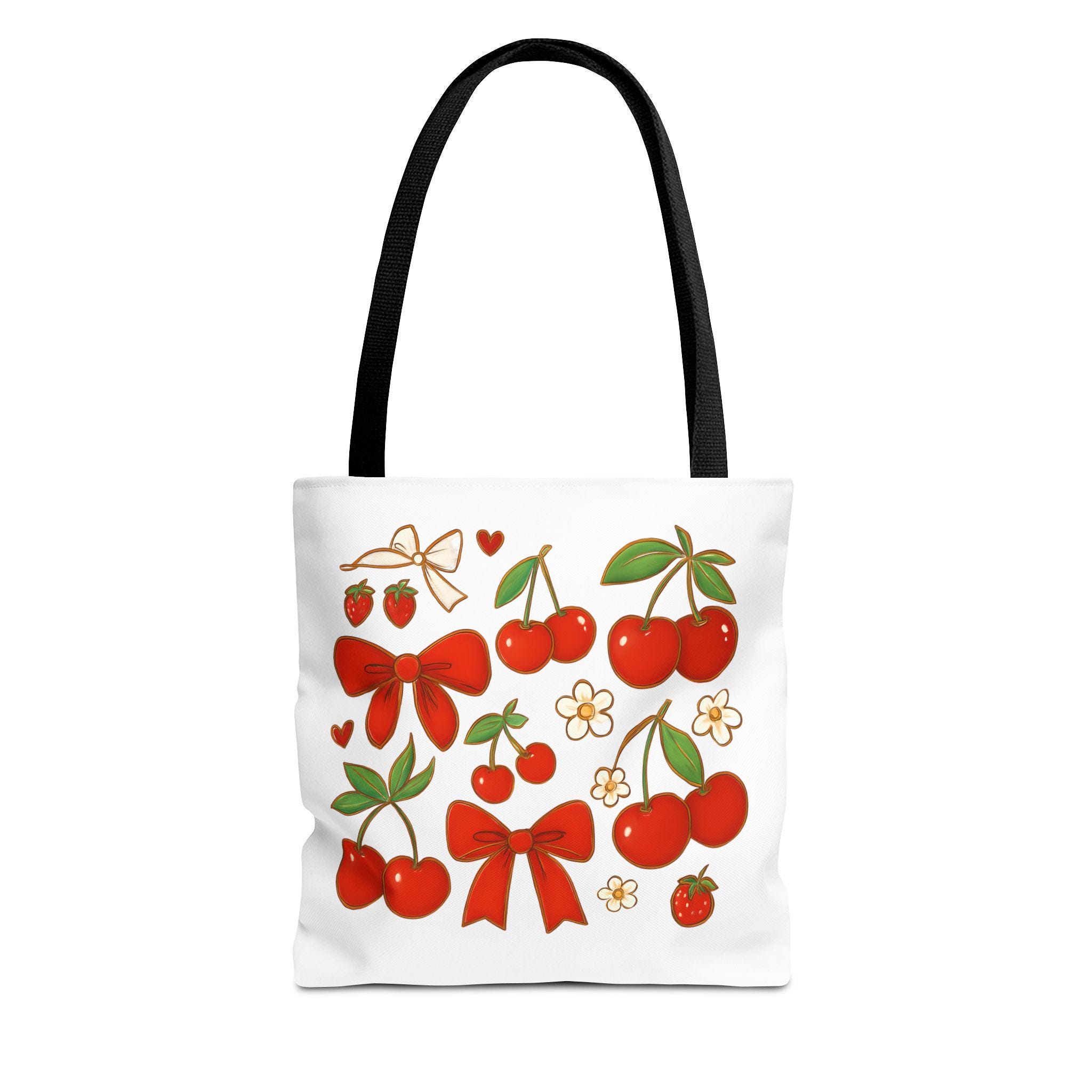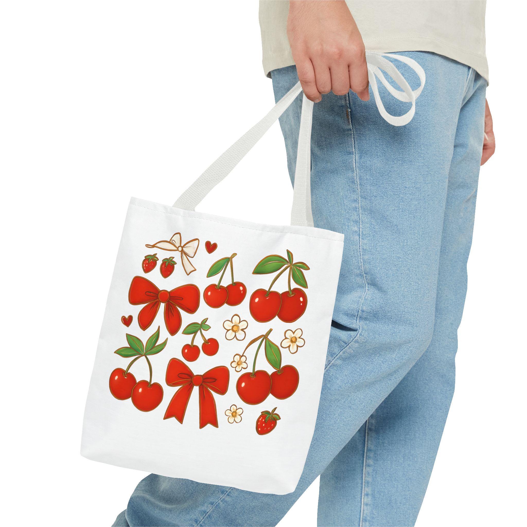Cherry Bow Tote Bag: Cottagecore Fruit & Floral Canvas Bag