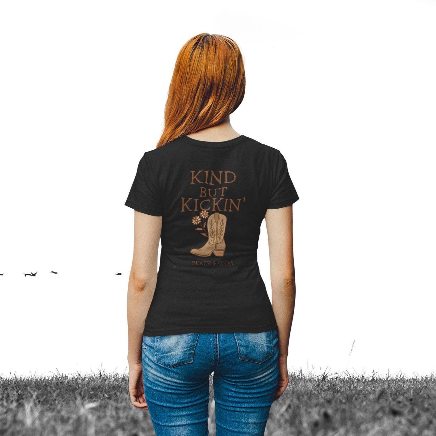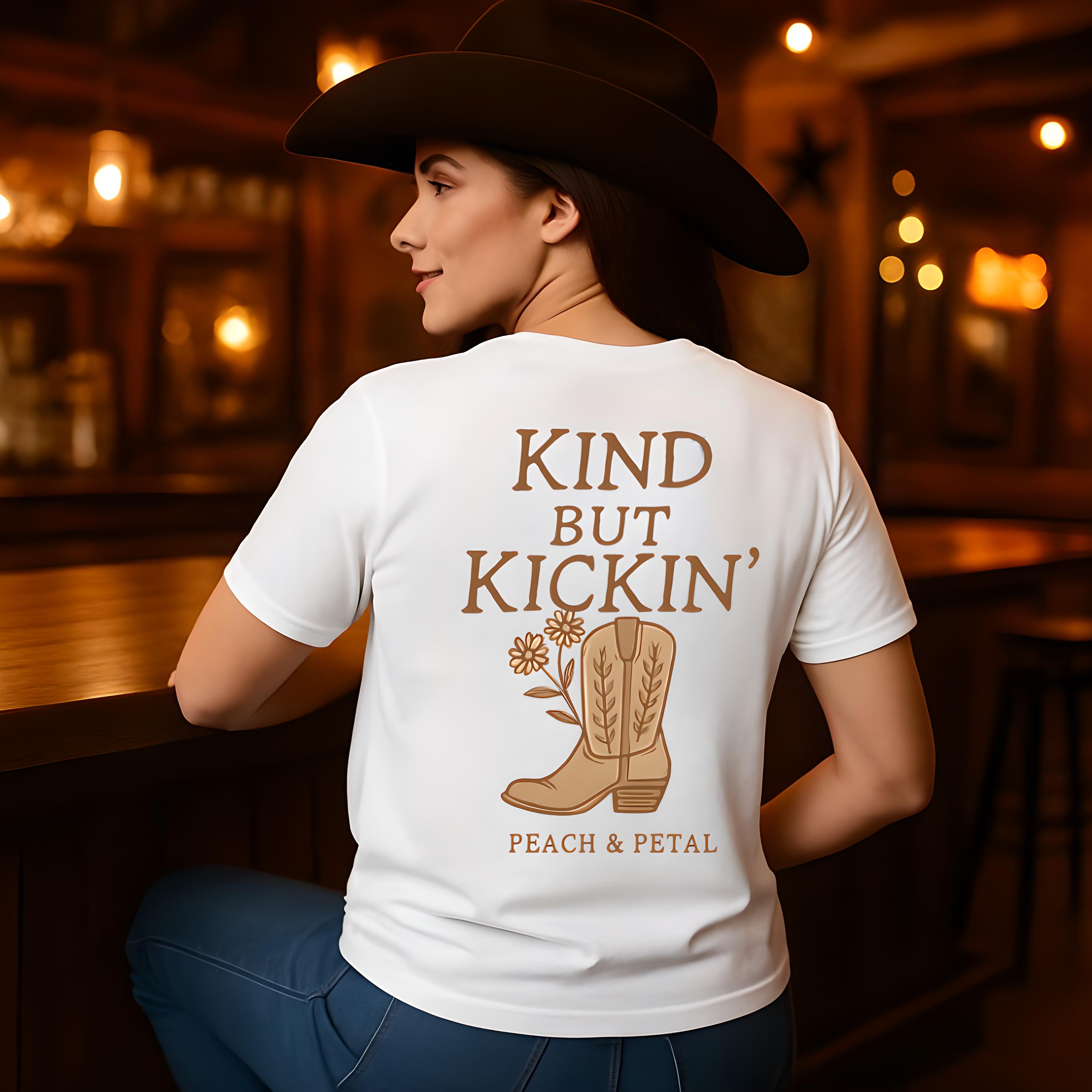 Kind But Kickin' Cowgirl T-Shirt: Western Boot Graphic Tee