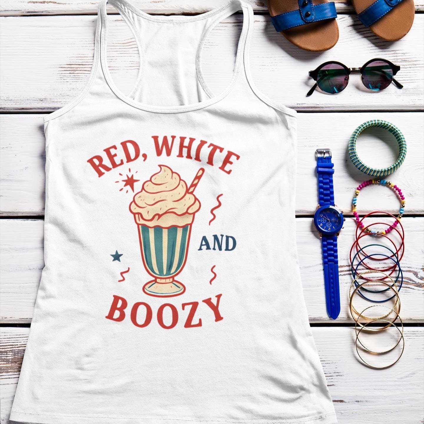 Red White and Boozy Tank Top: Funny 4th of July Racerback