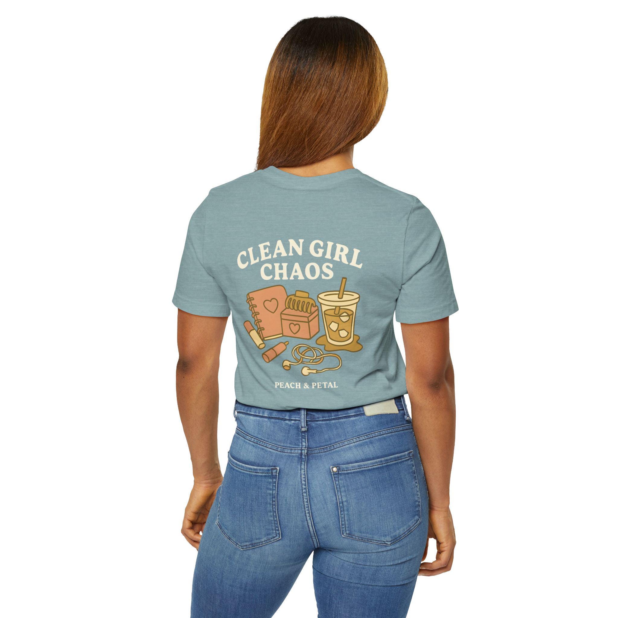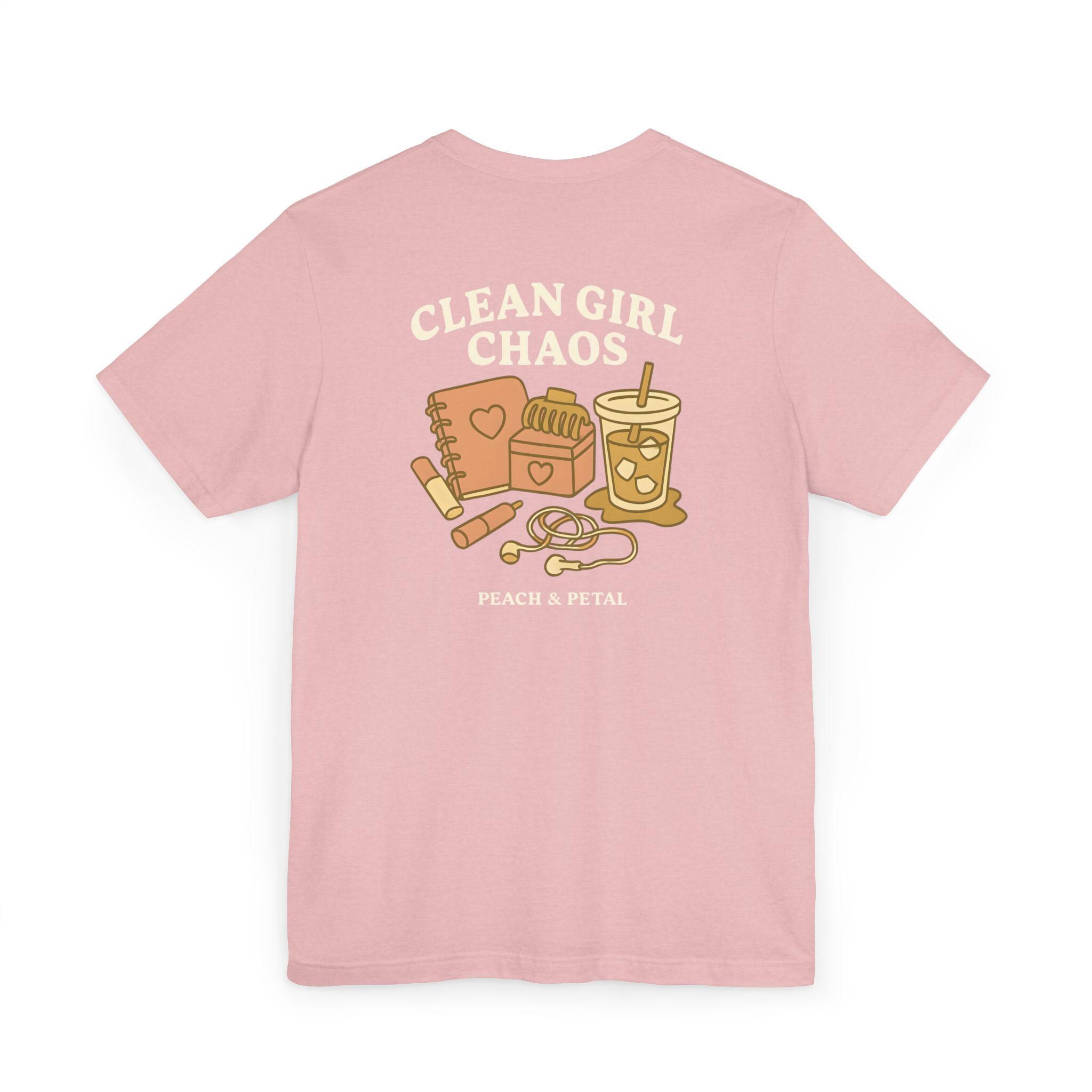 Chic Clean Girl T-Shirt, Clean Girl Chaos T-Shirt, Peach & Petal Aesthetic Tee, Iced Coffee Shirt Gift for Best Friend or Teen Girl