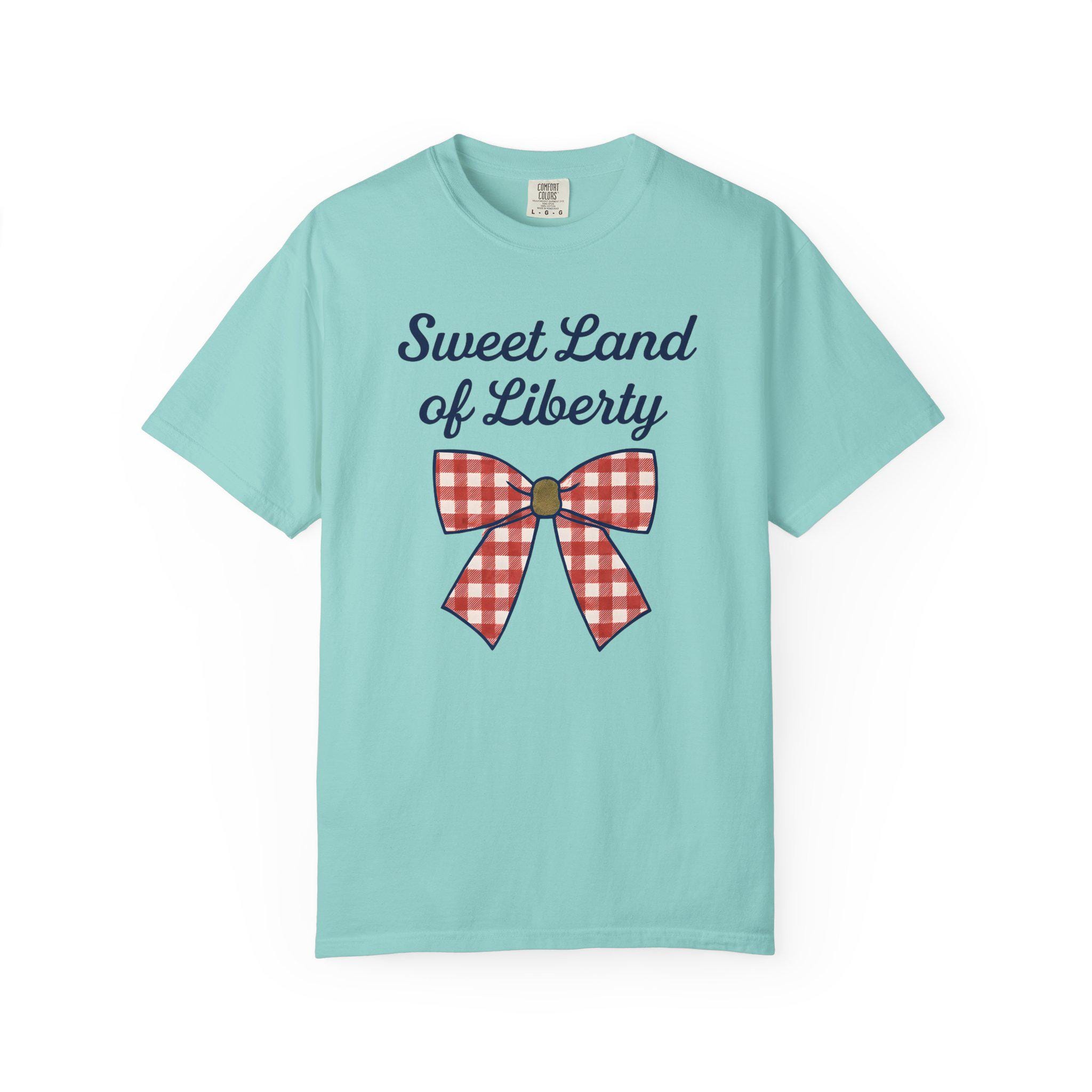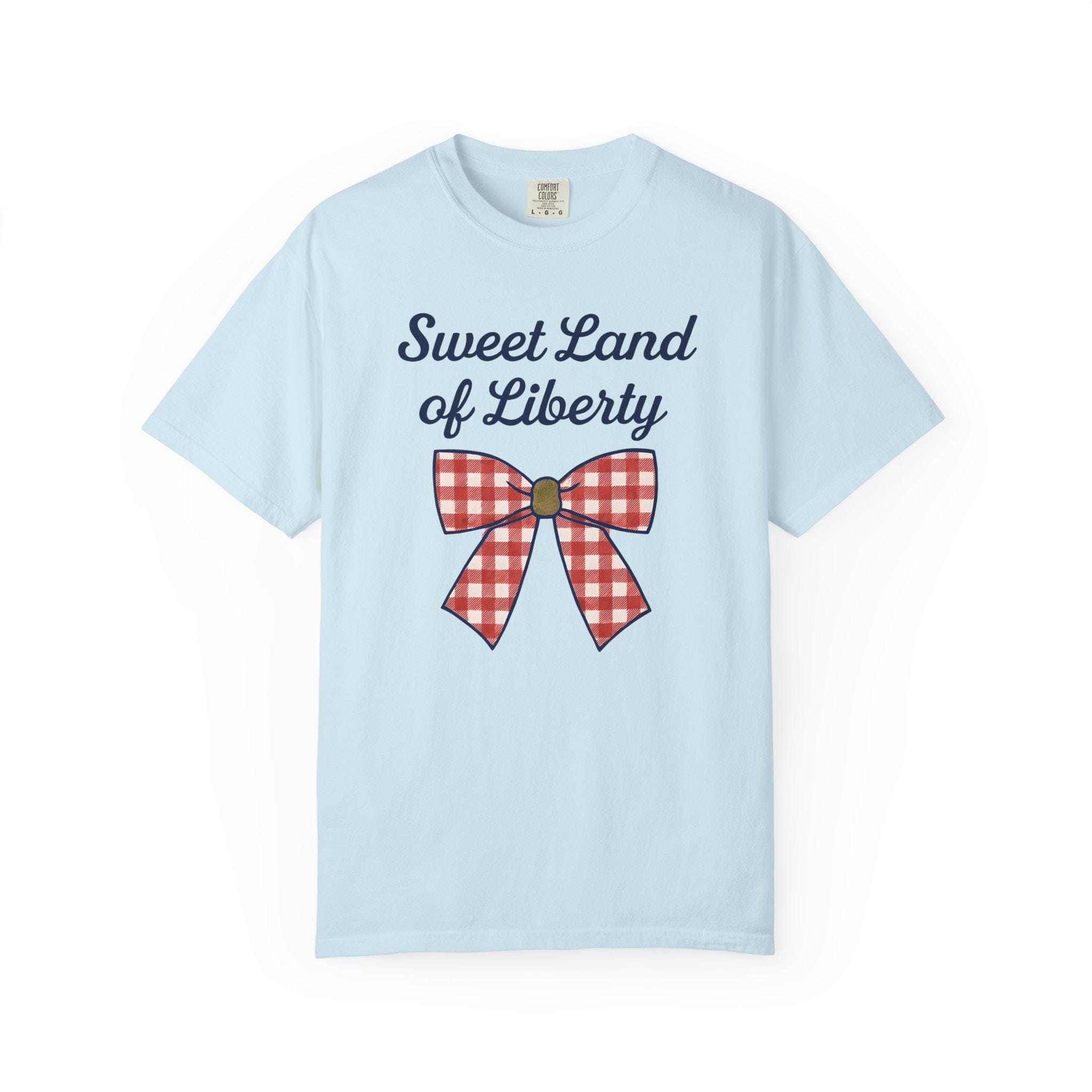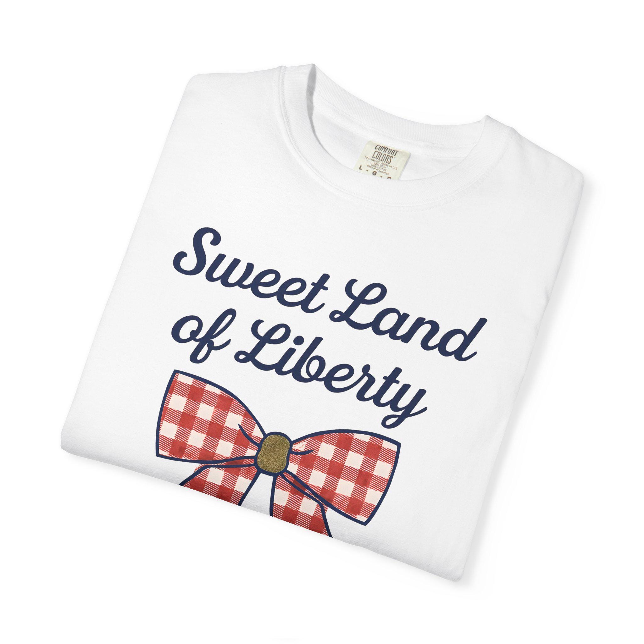 Sweet Land of Liberty Comfort Colors Tee: Red Gingham Bow, Patriotic USA