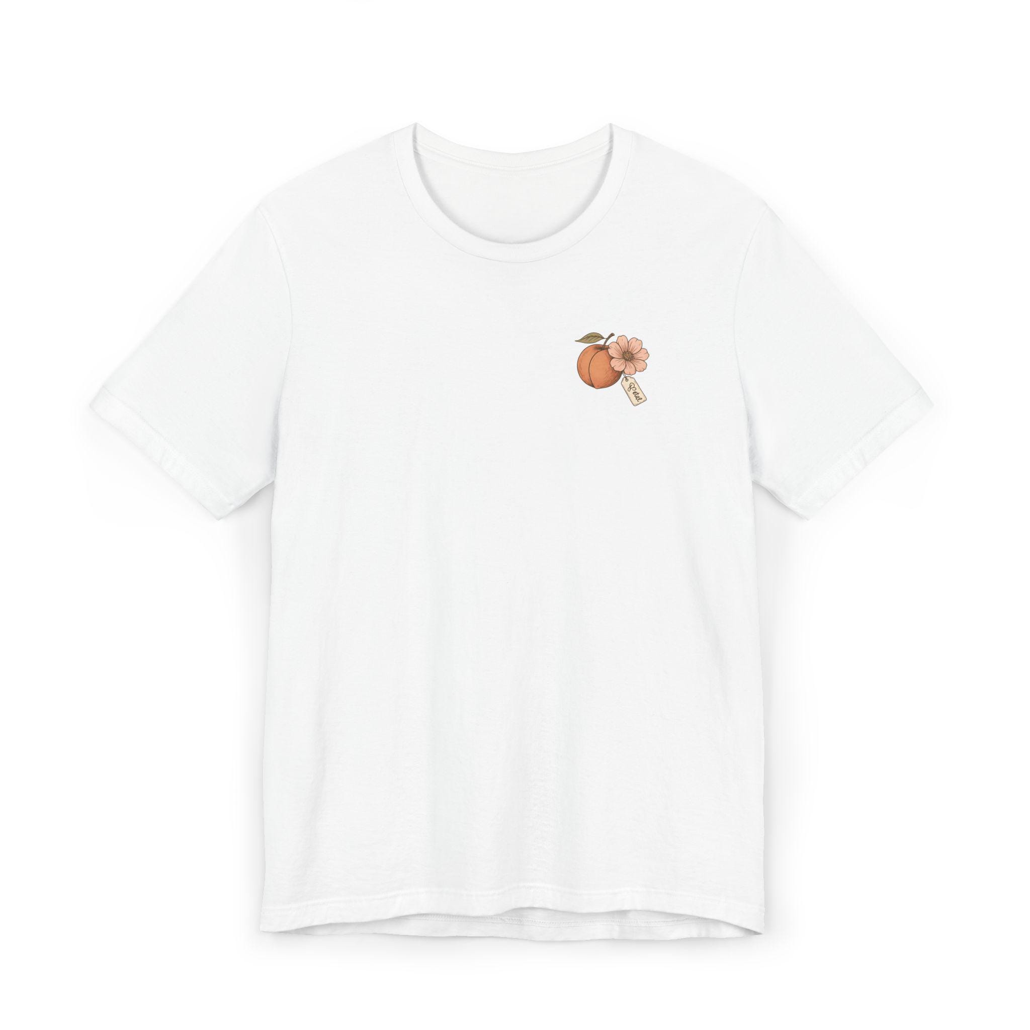 This Peach & Petal tee features a floral serif-text design and a hand holding a wildflower bouquet. It’s made for women who lead with both grace and grit, wrapped in a soft, vintage-inspired style.