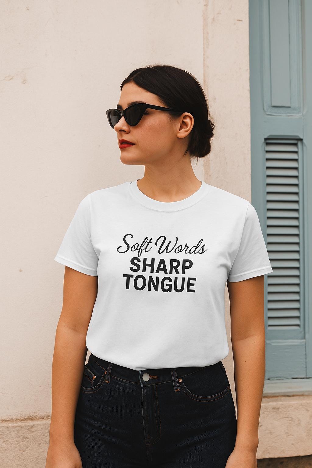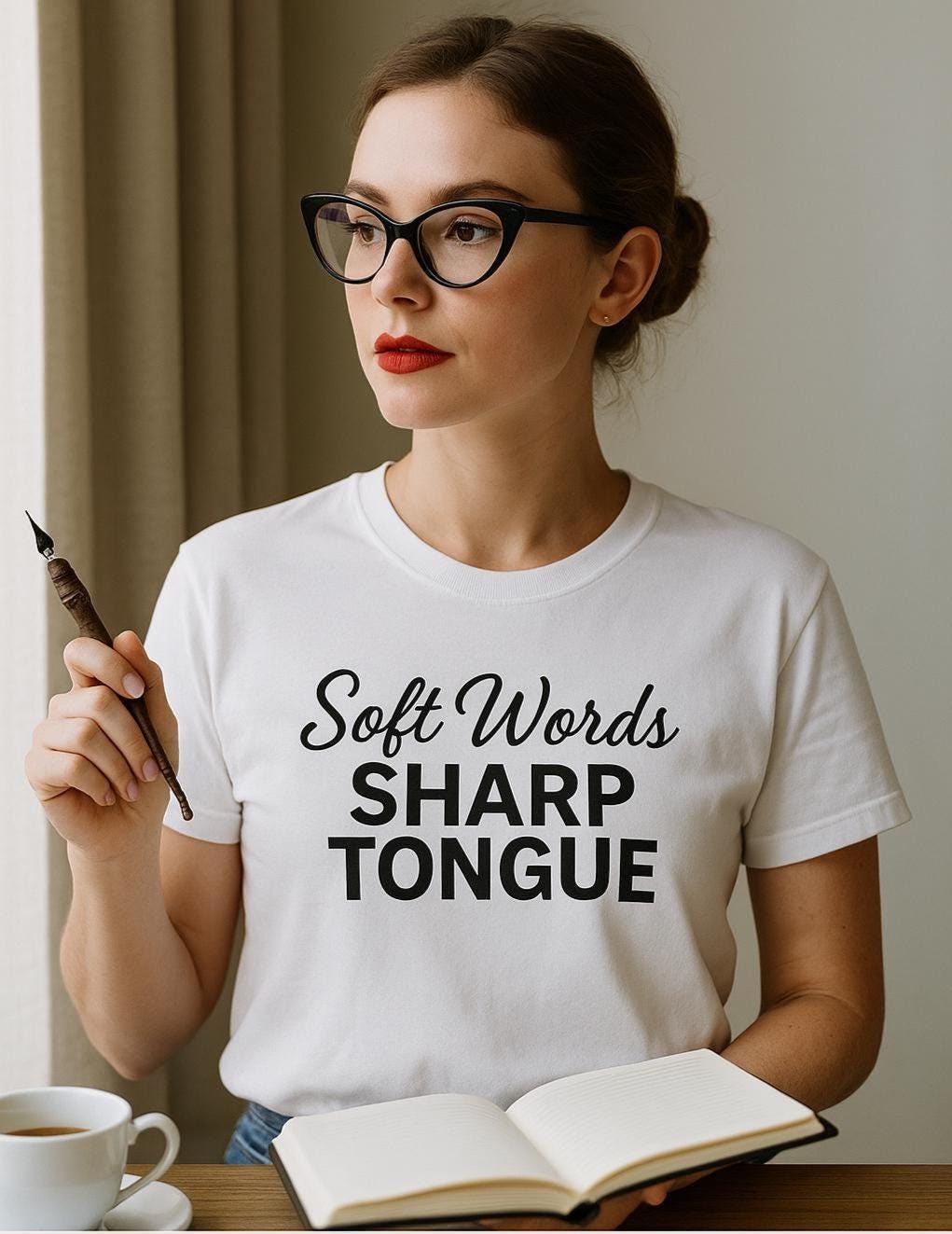 Soft Words Sharp Tongue Tee Witty Aesthetic T-Shirt Feminine Funny Shirt T-Shirt for Word Lovers, Gift for Writers