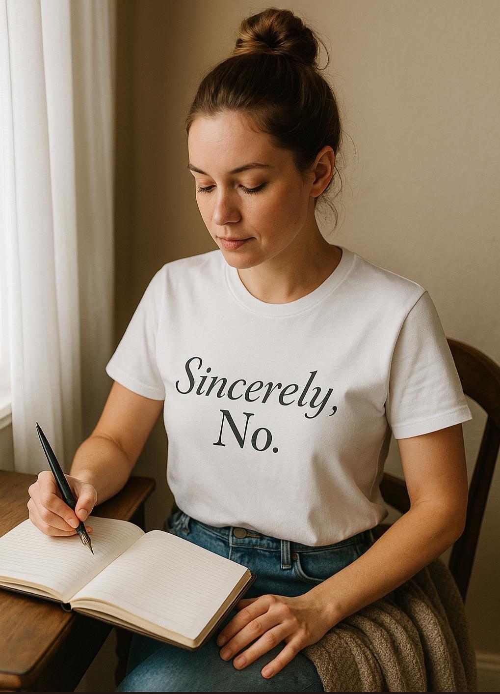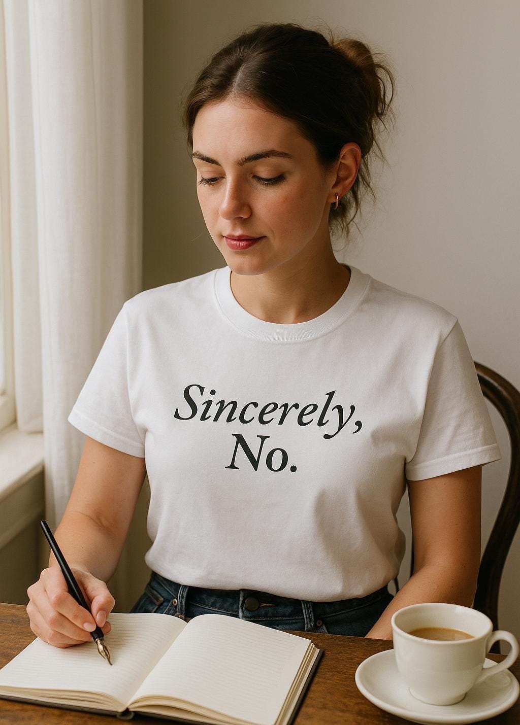 This Bella+Canvas 3001 tee brings quiet wit and minimalist style together. With its soft fabric, flattering unisex fit, and elegant script-and-serif combo, this shirt is made for women who write poetry and set boundaries with equal precision.