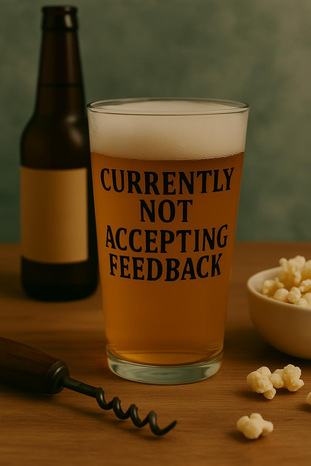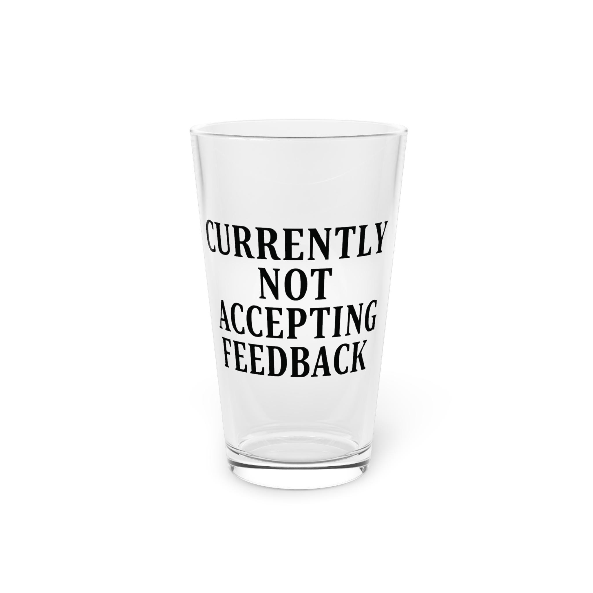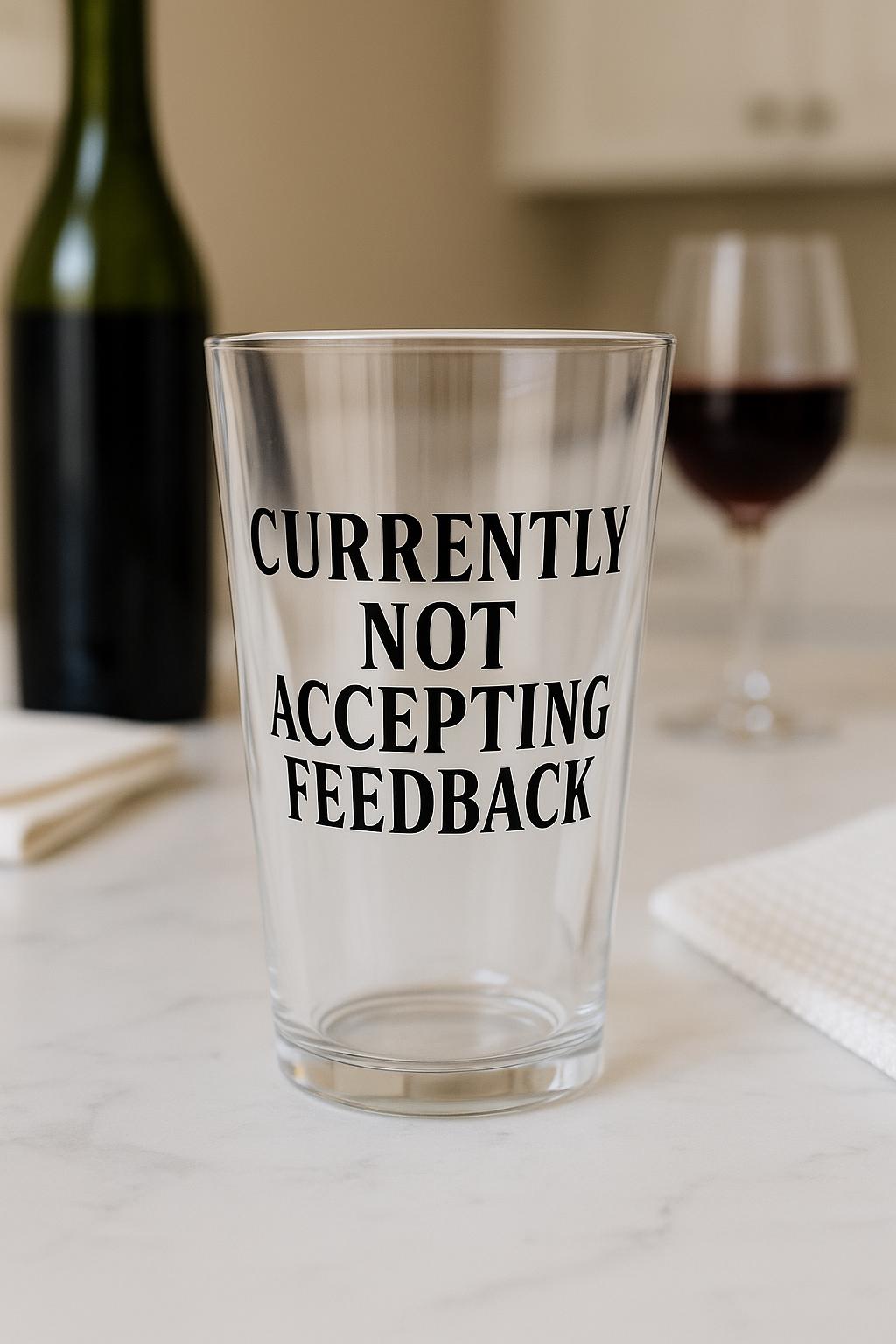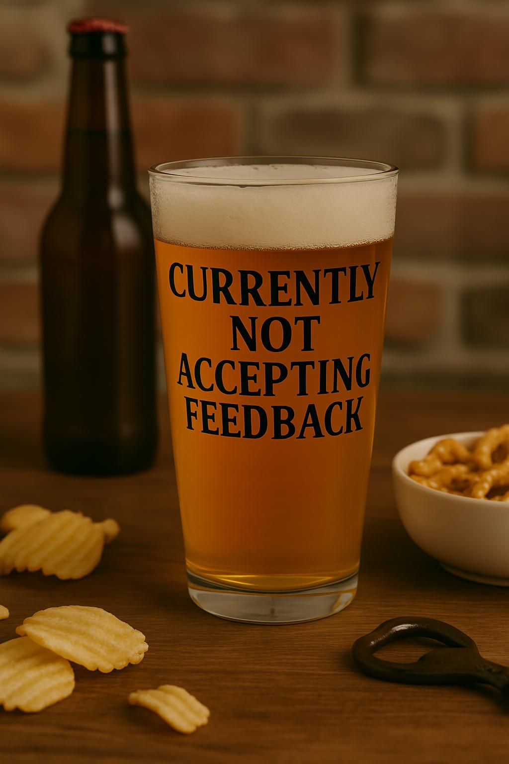 Funny Pint Glass: Sarcastic "Not Accepting Feedback" Gift