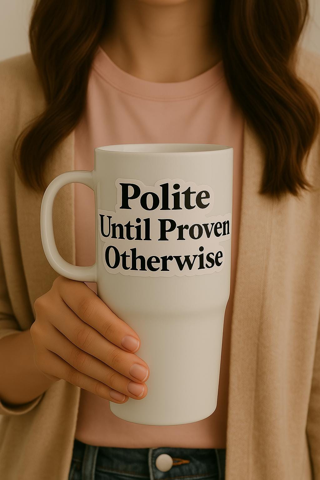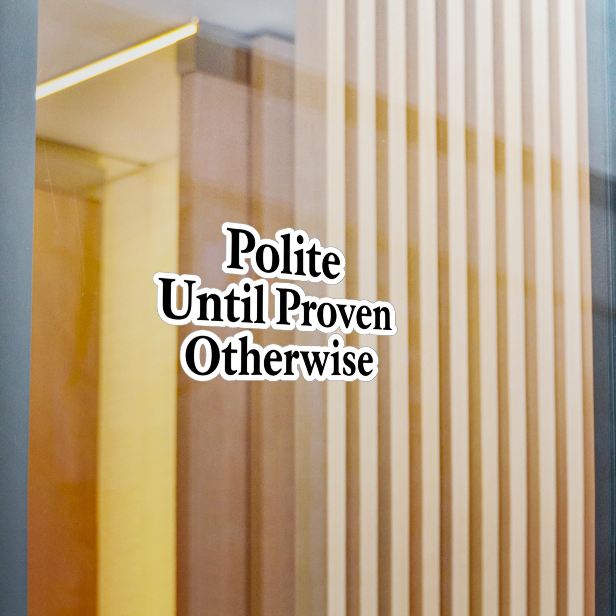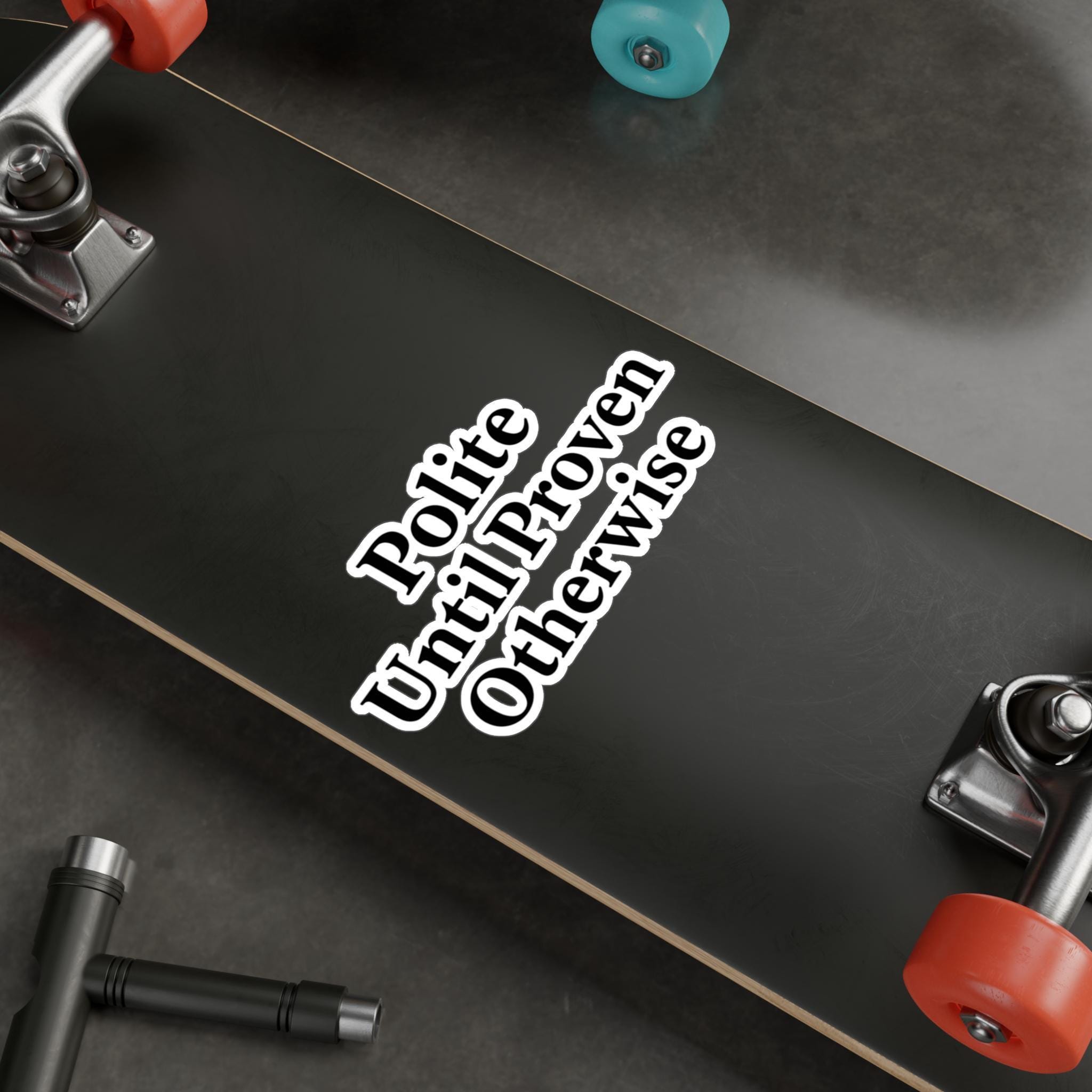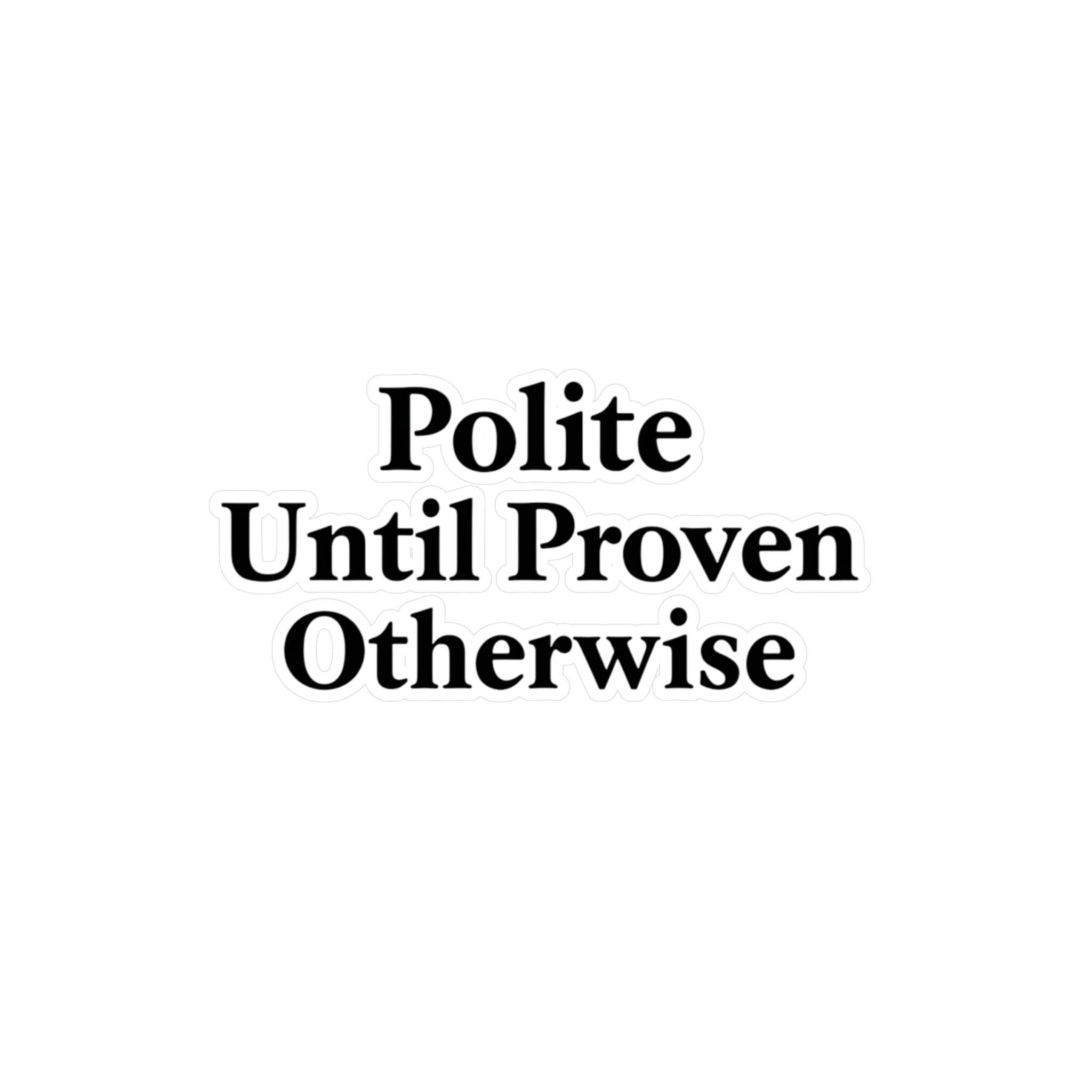 Express your sass with these 'Polite Until Proven Otherwise' kiss-cut vinyl decals. Perfect for anyone looking to add a touch of attitude to their laptop, water bottle, or notebook. Ideal for those who enjoy witty and cheeky designs.