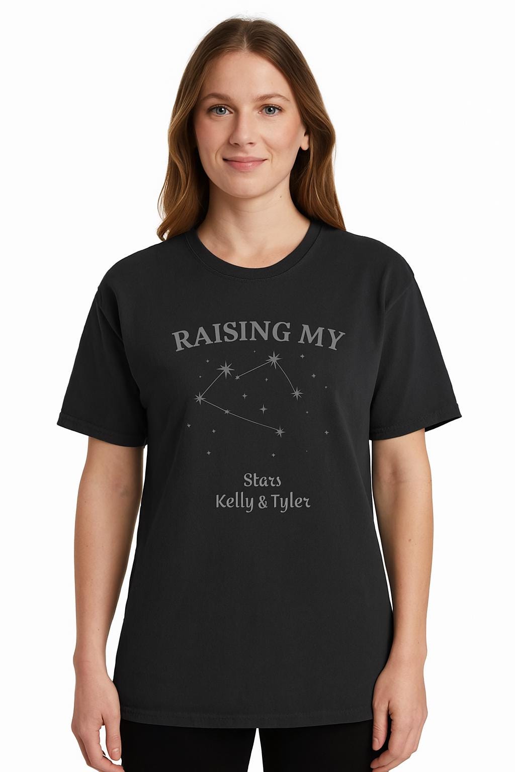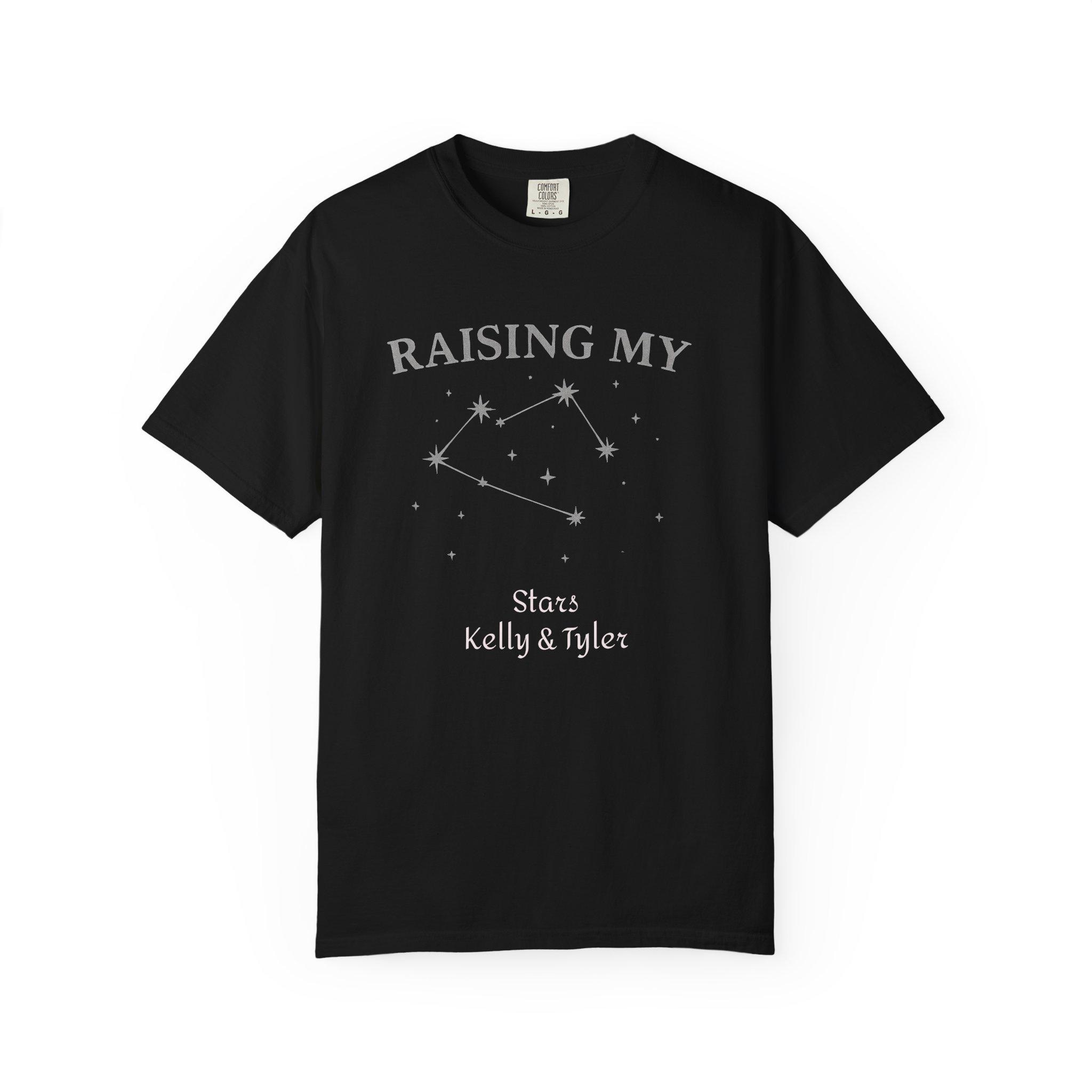 Because motherhood is star constellations of chaos and love. This personalized black Comfort Colors 1717 tee lets you customize your own cosmic momentâwhether youâre raising stars, wildflowers, legends, or your chaos crew.