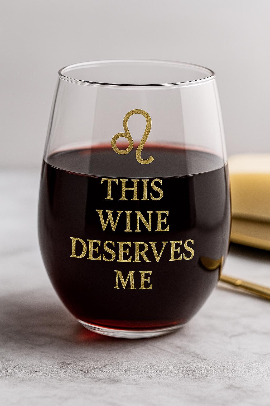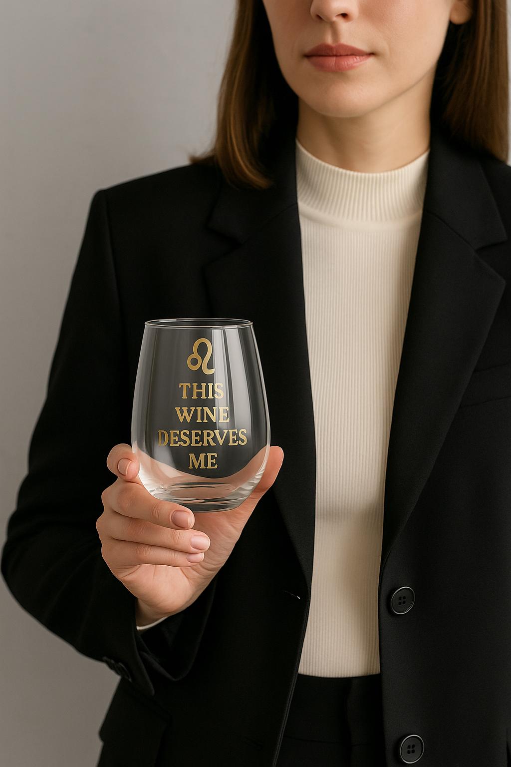 Gold print: “This Wine Deserves Me” + Leo ♌ symbol