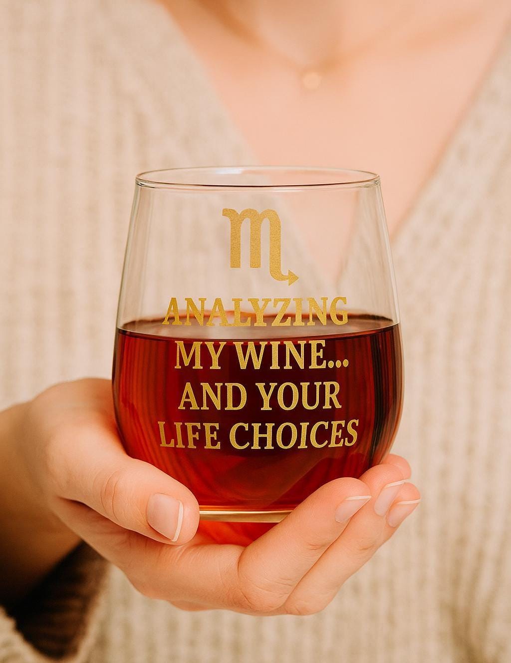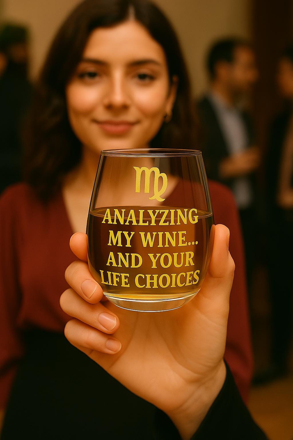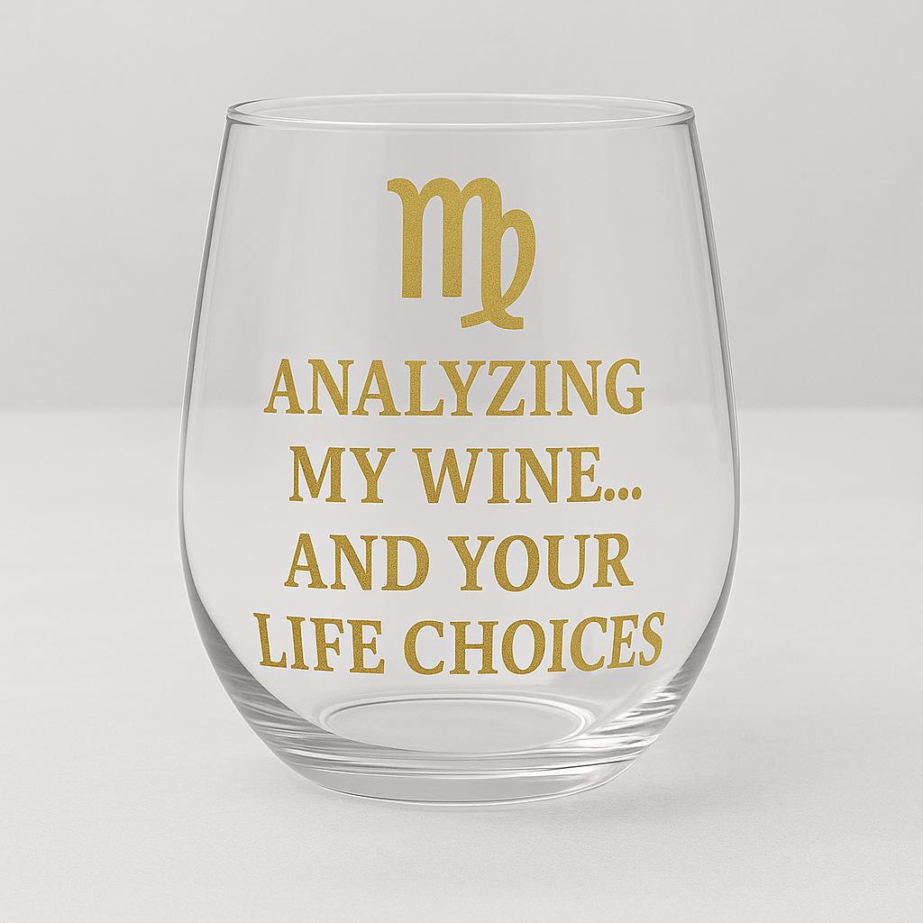 This 6-oz stemless wine glass is made for the meticulous and marvelous Virgo in your life. Featuring gold lettering that reads: “Analyzing My Wine... and Your Life Choices,” it’s the perfect blend of sass, class, and unapologetic Virgo energy.