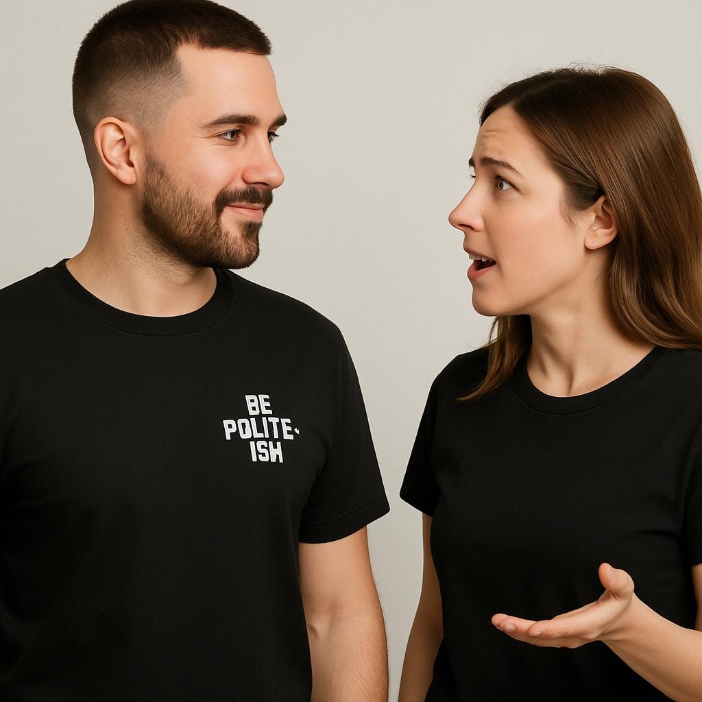 Be Polite-ish T-Shirt: Minimalist Slogan, Soft Cotton Blend
