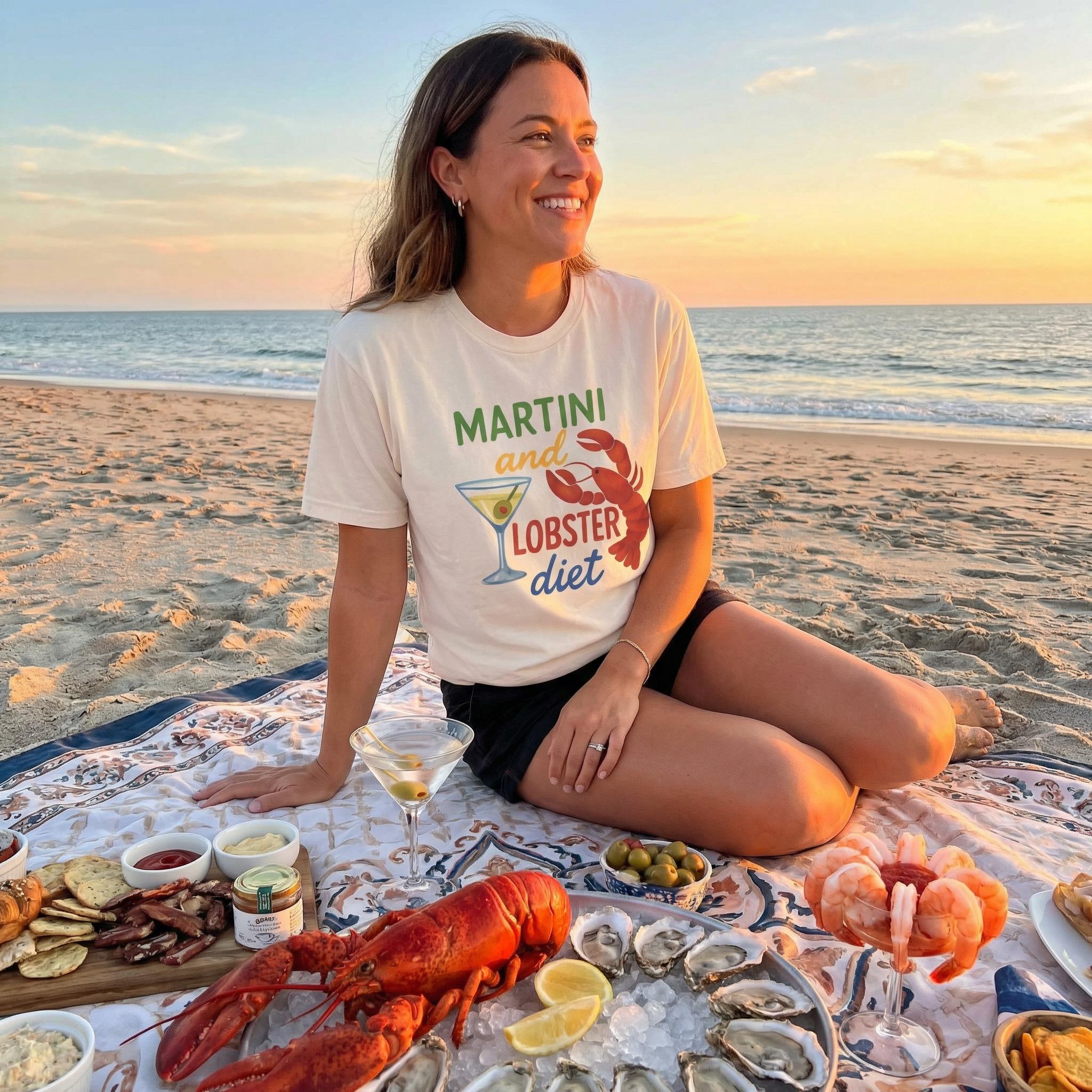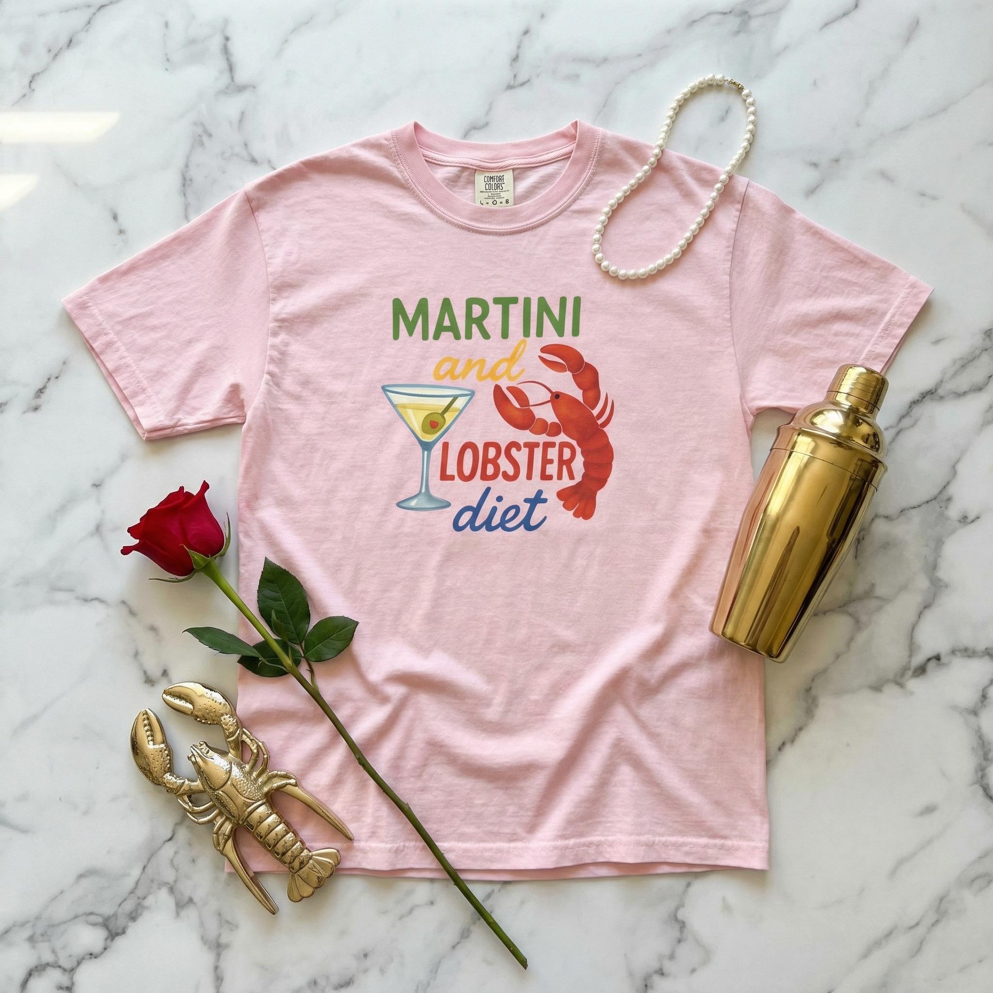 Martini and Lobster Diet Shirt Comfort Colors 1717 Seafood Lover Gift, Retro Vacation Shirt