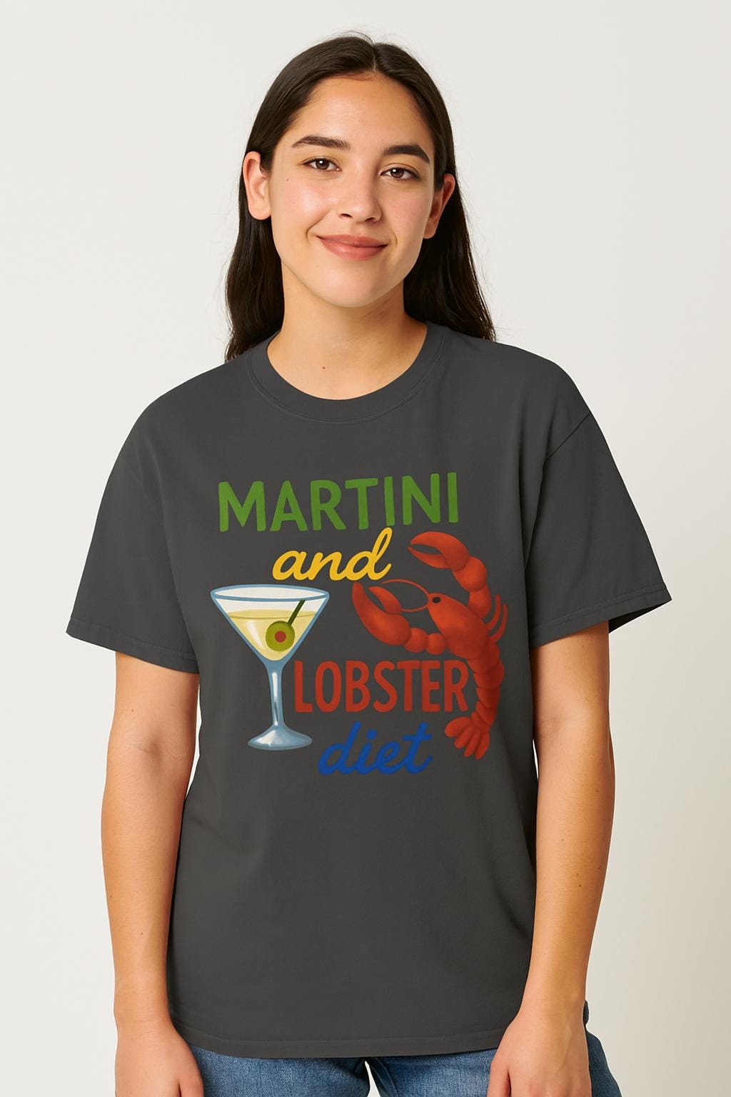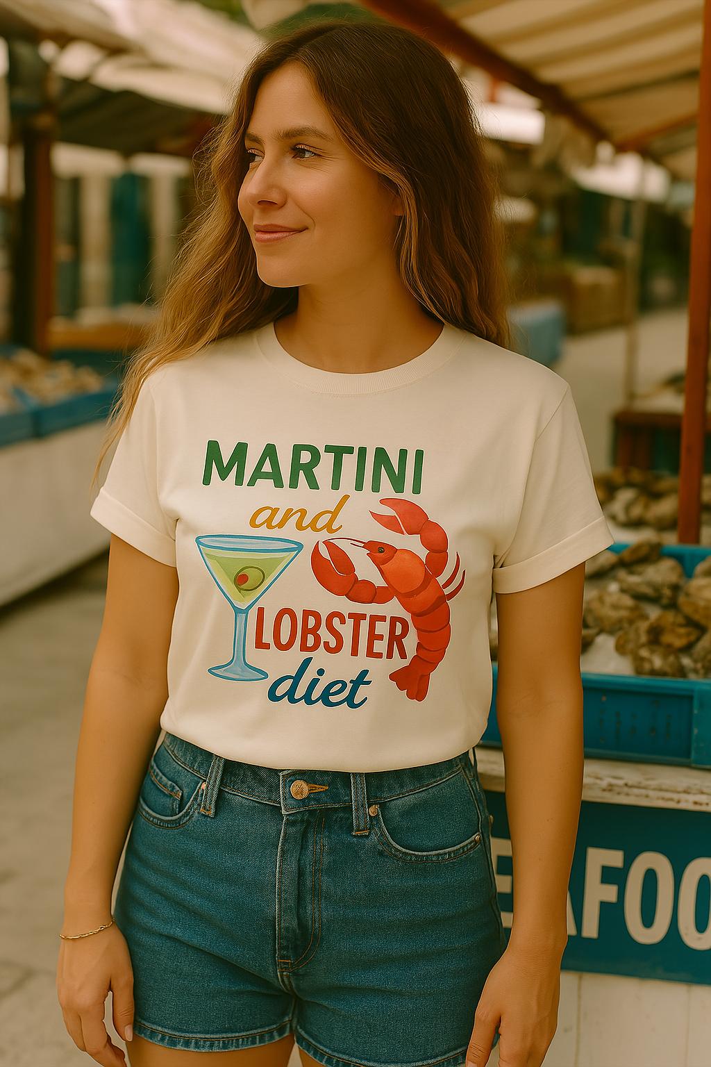 Funny Martini & Lobster T-Shirt: Foodie Beach Vacation Tee