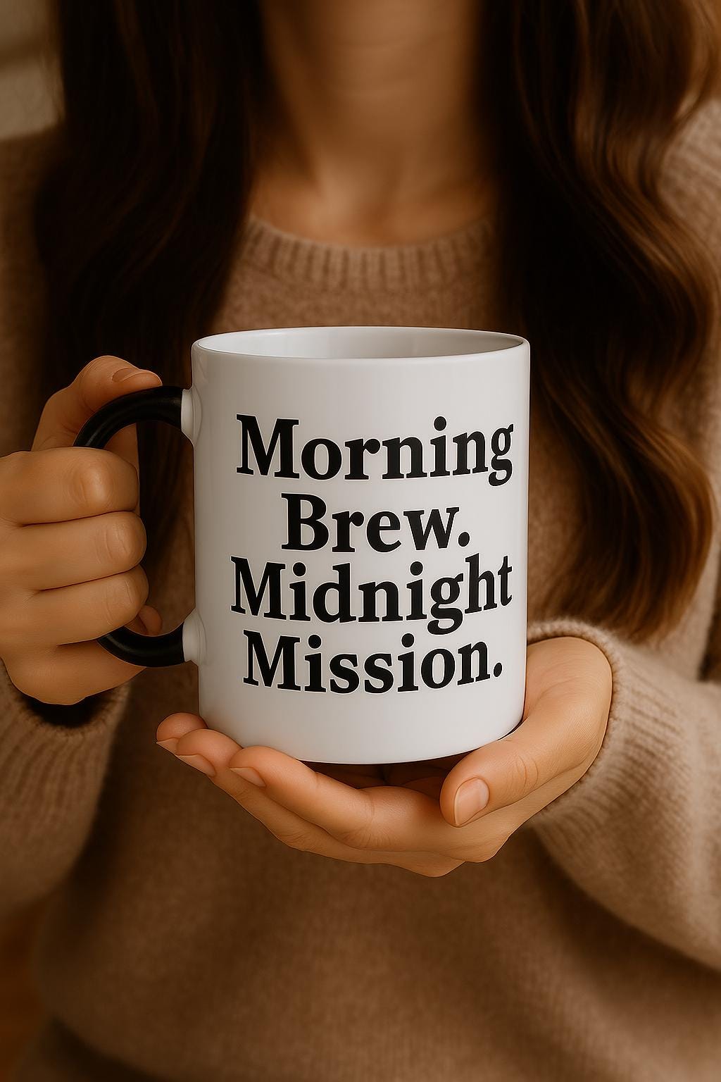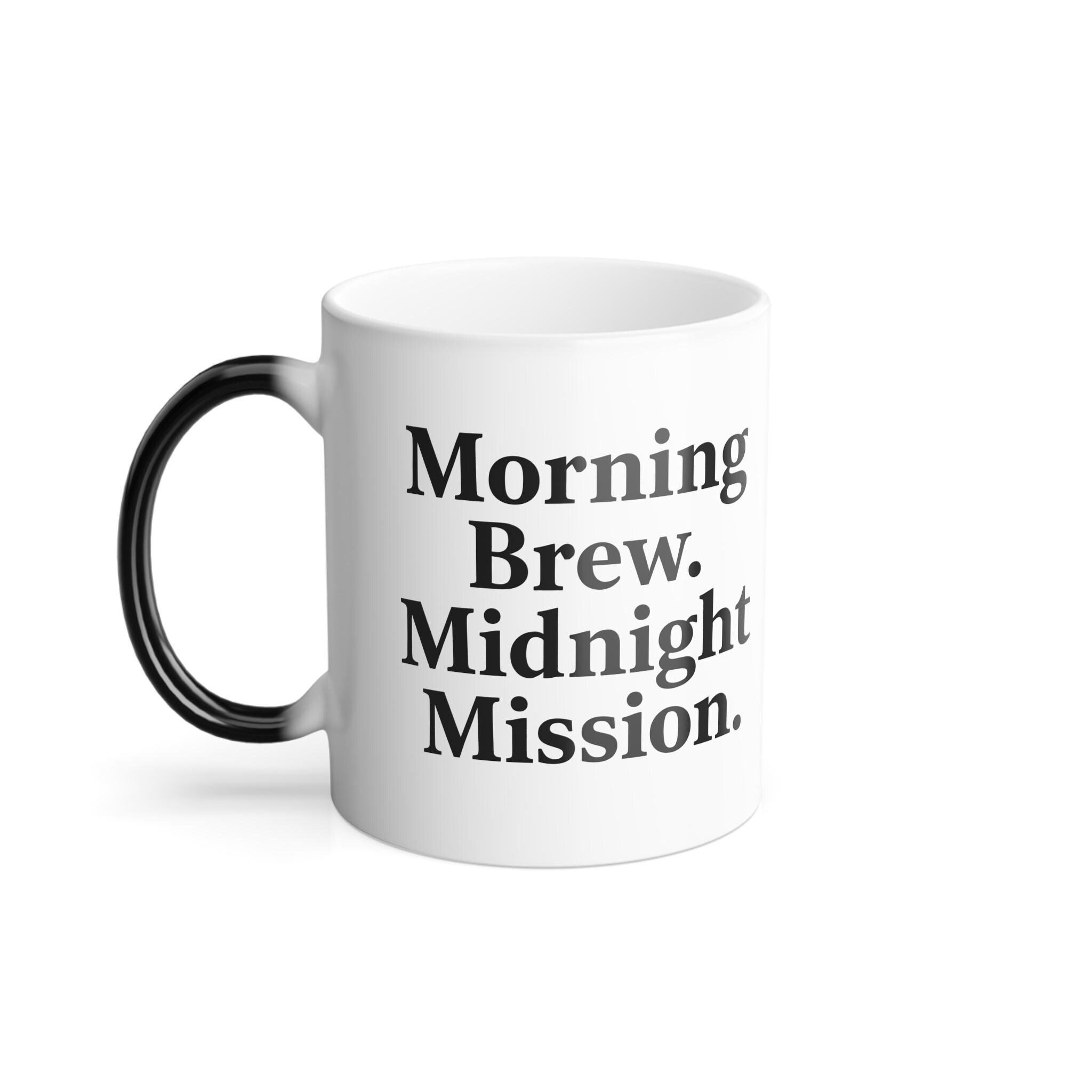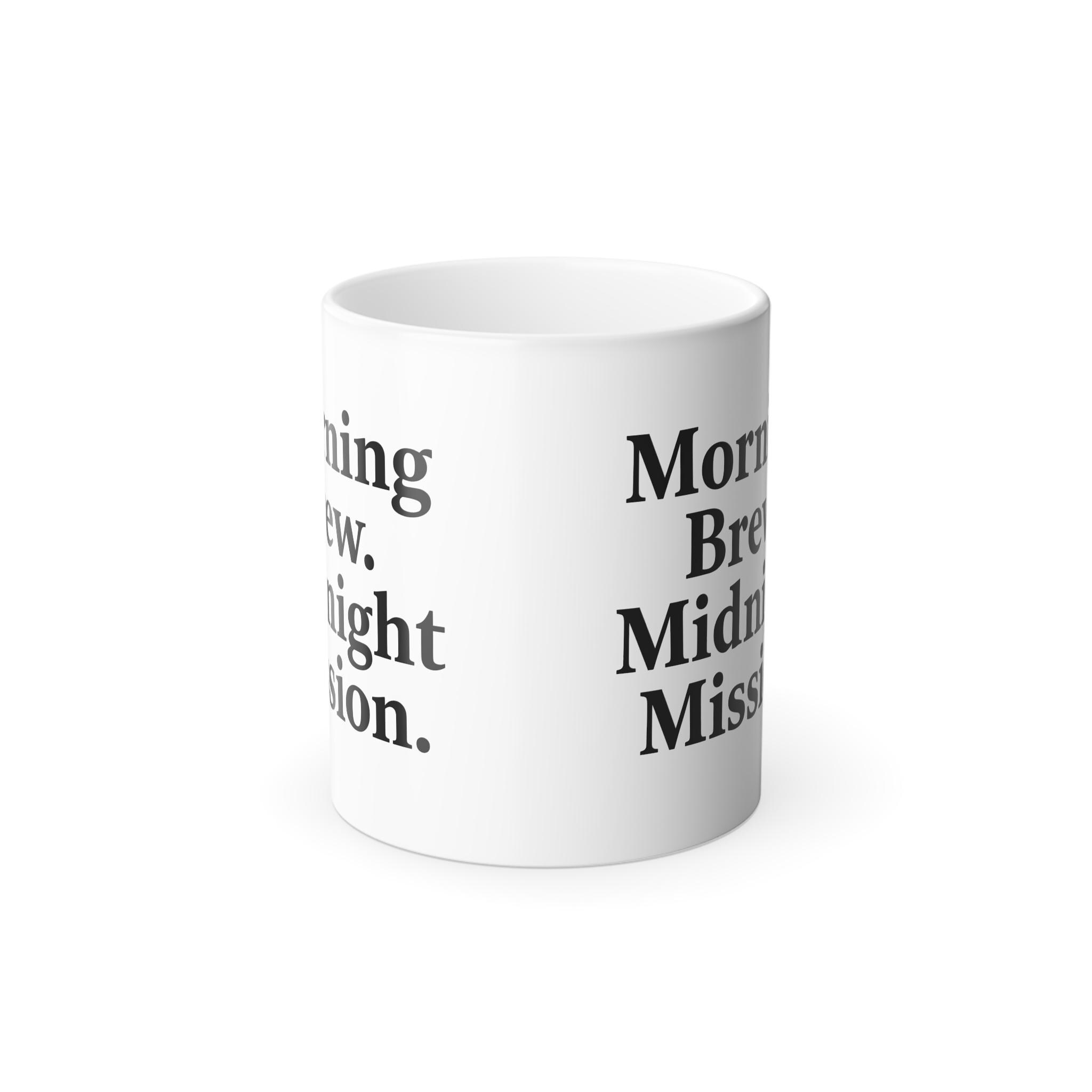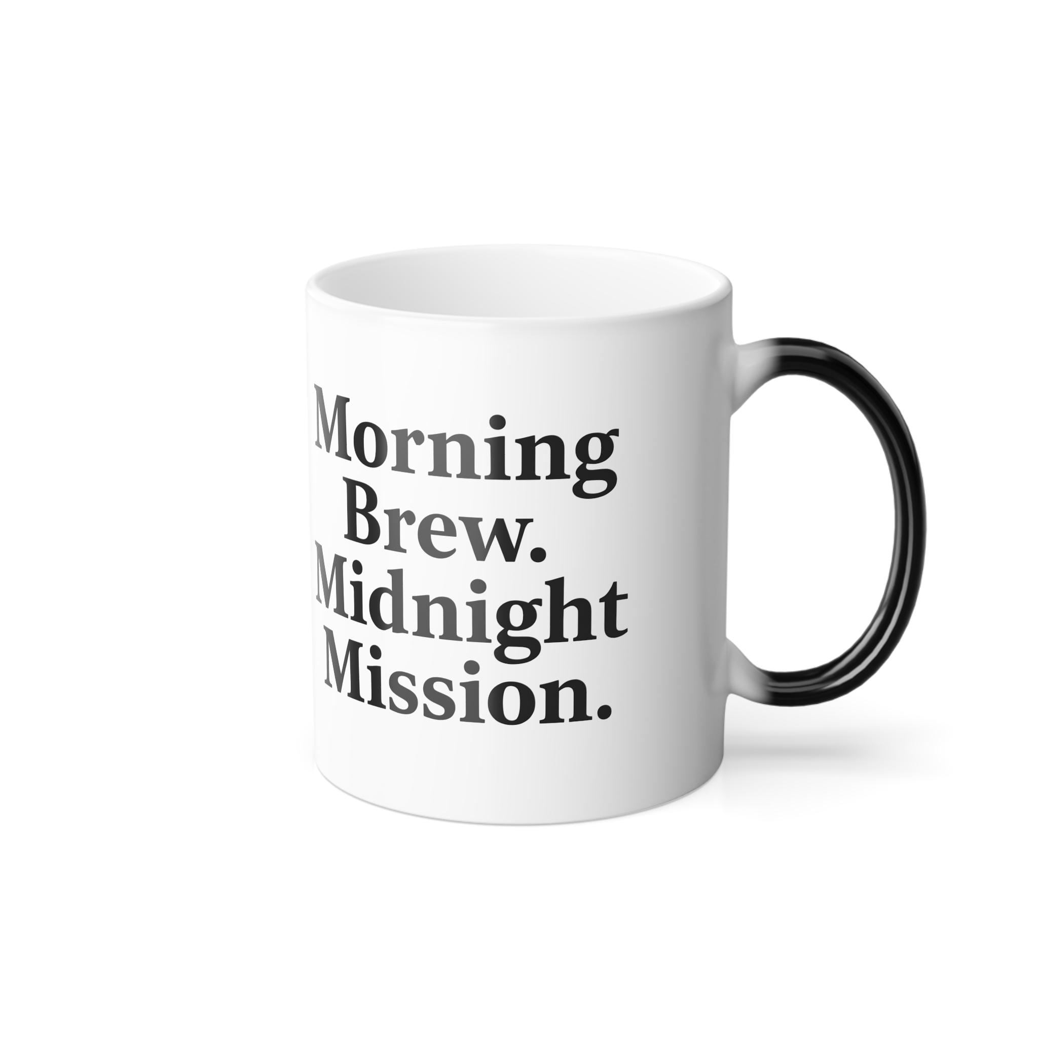 With bold black text and a magical color-changing glaze, the words “Morning Brew. Midnight Mission.” appear as your drink heats up — a reminder that your passion doesn't clock out.