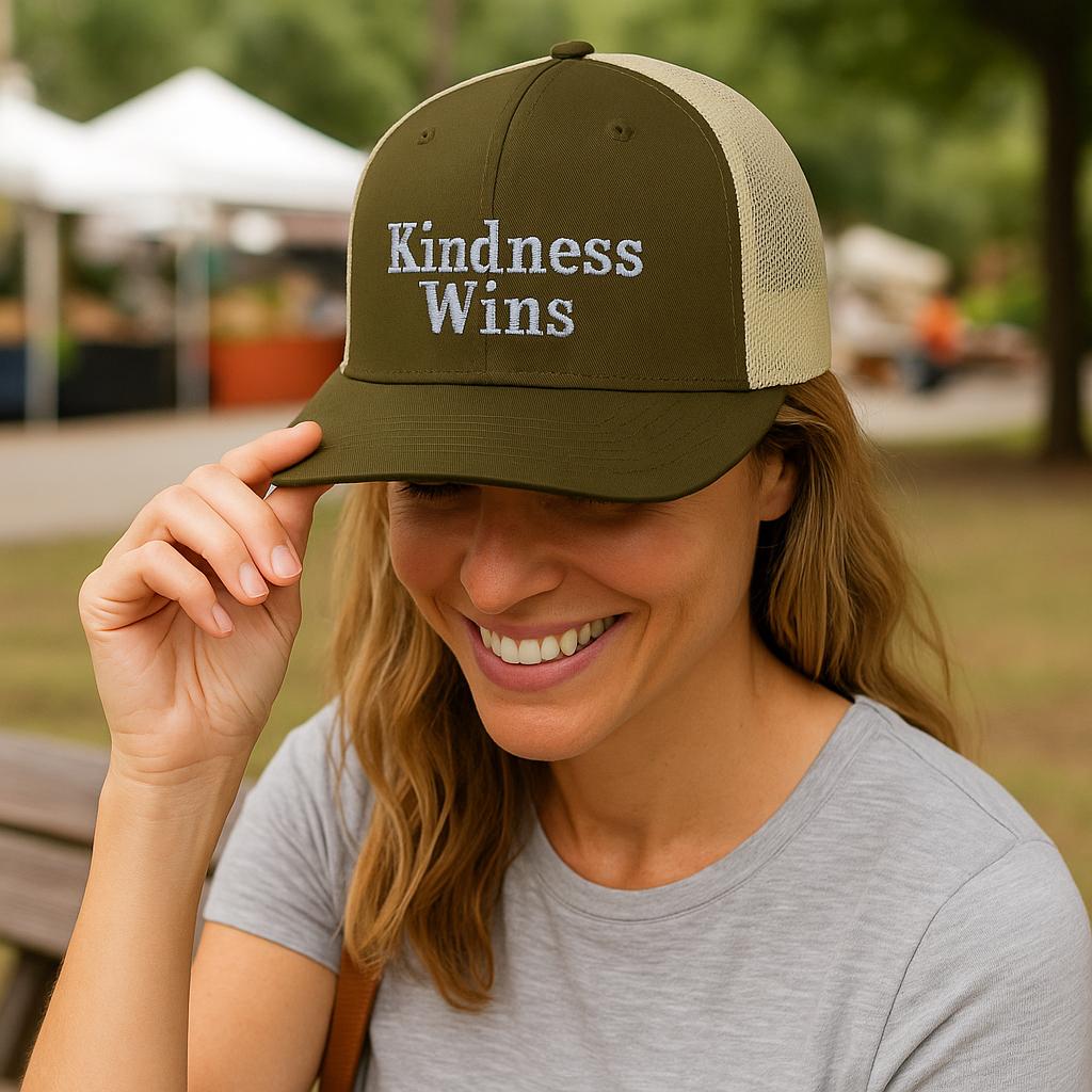 Embroidered Snapback Trucker Hat - Kindness Wins Mesh Back Dad Cap, Inspirational Faith Unisex Gift, Spread Kindness Hat