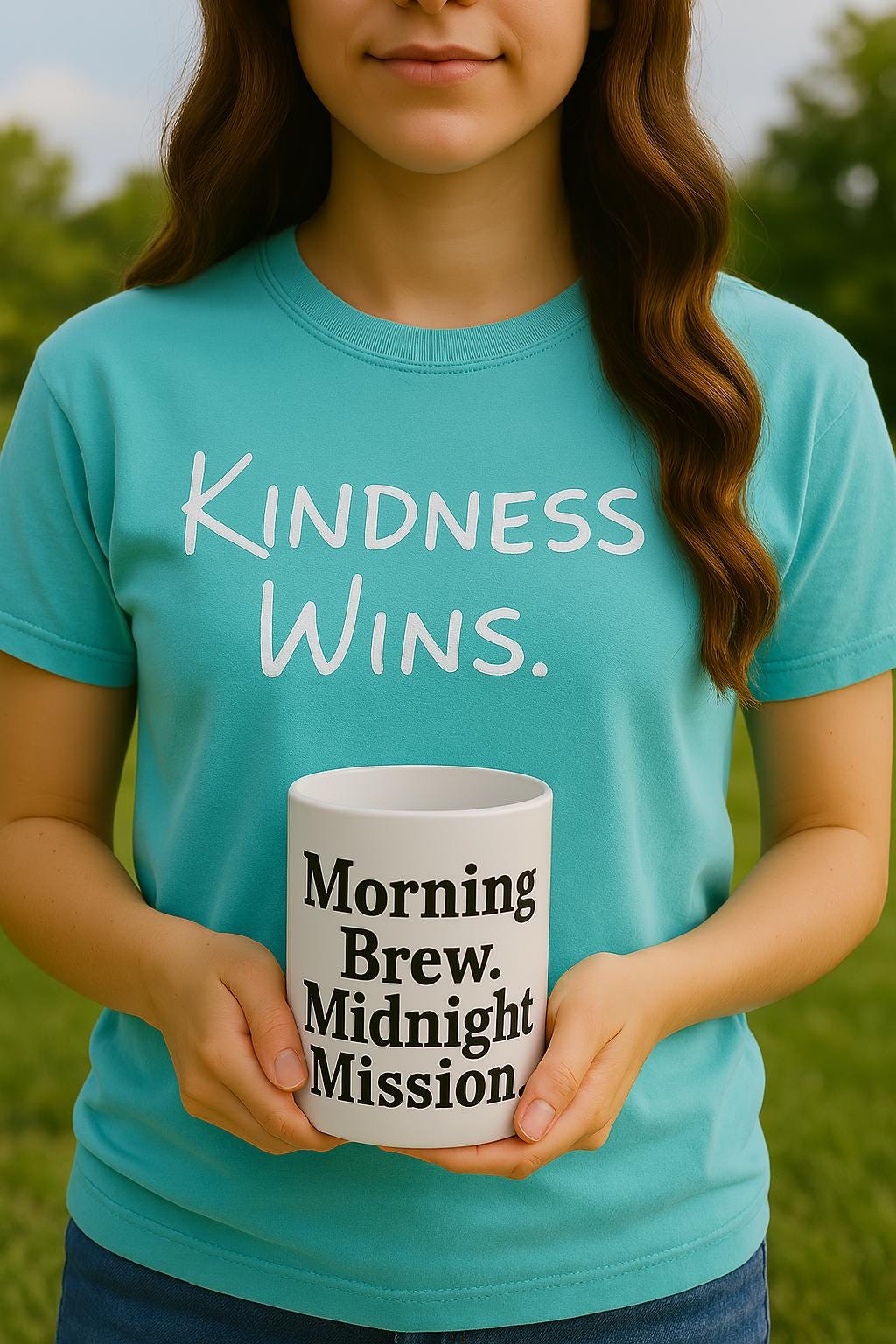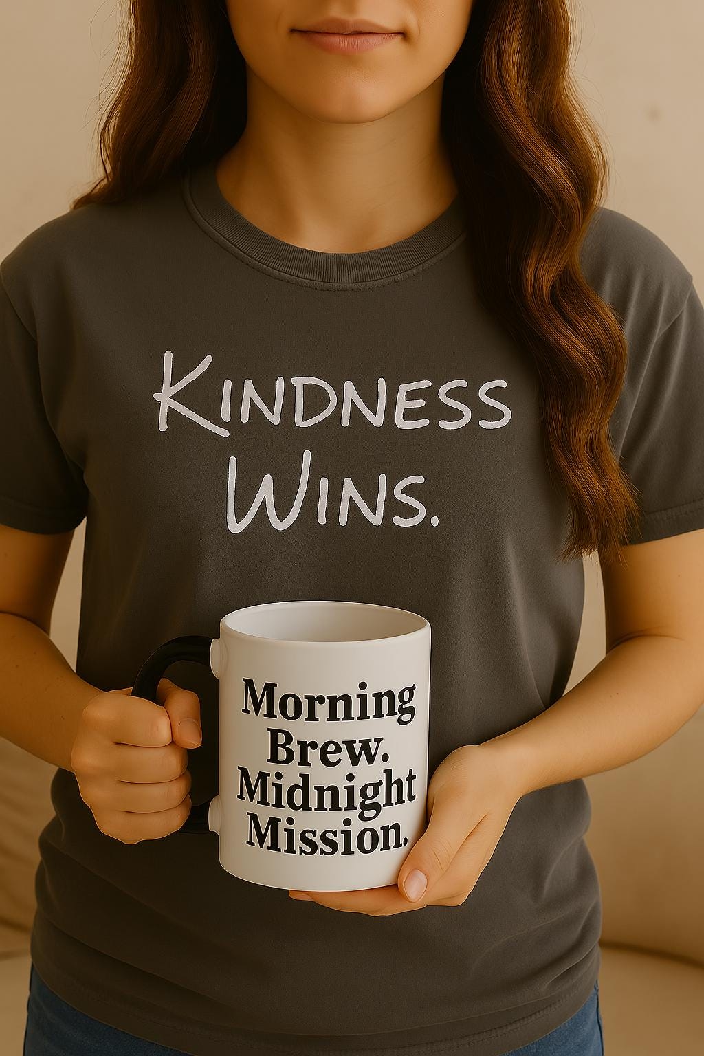 This Comfort Colors 1717 tee is embroidered with the words “Kindness Wins” — a simple reminder that gentleness doesn’t mean weakness, and compassion is always in style.