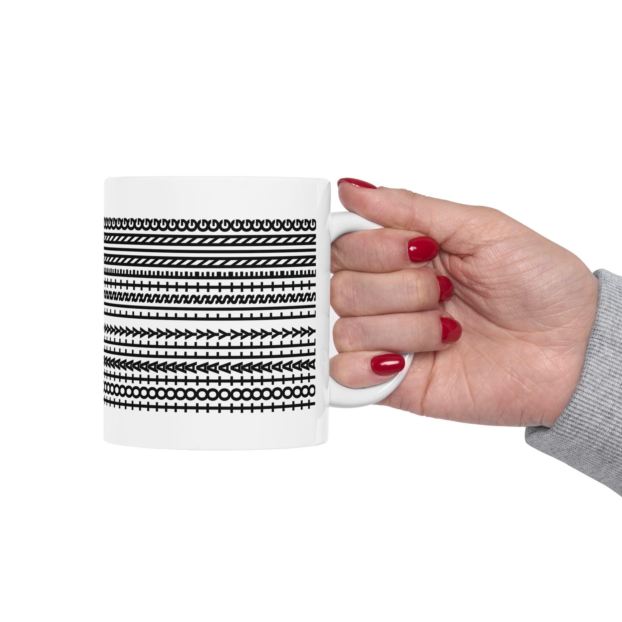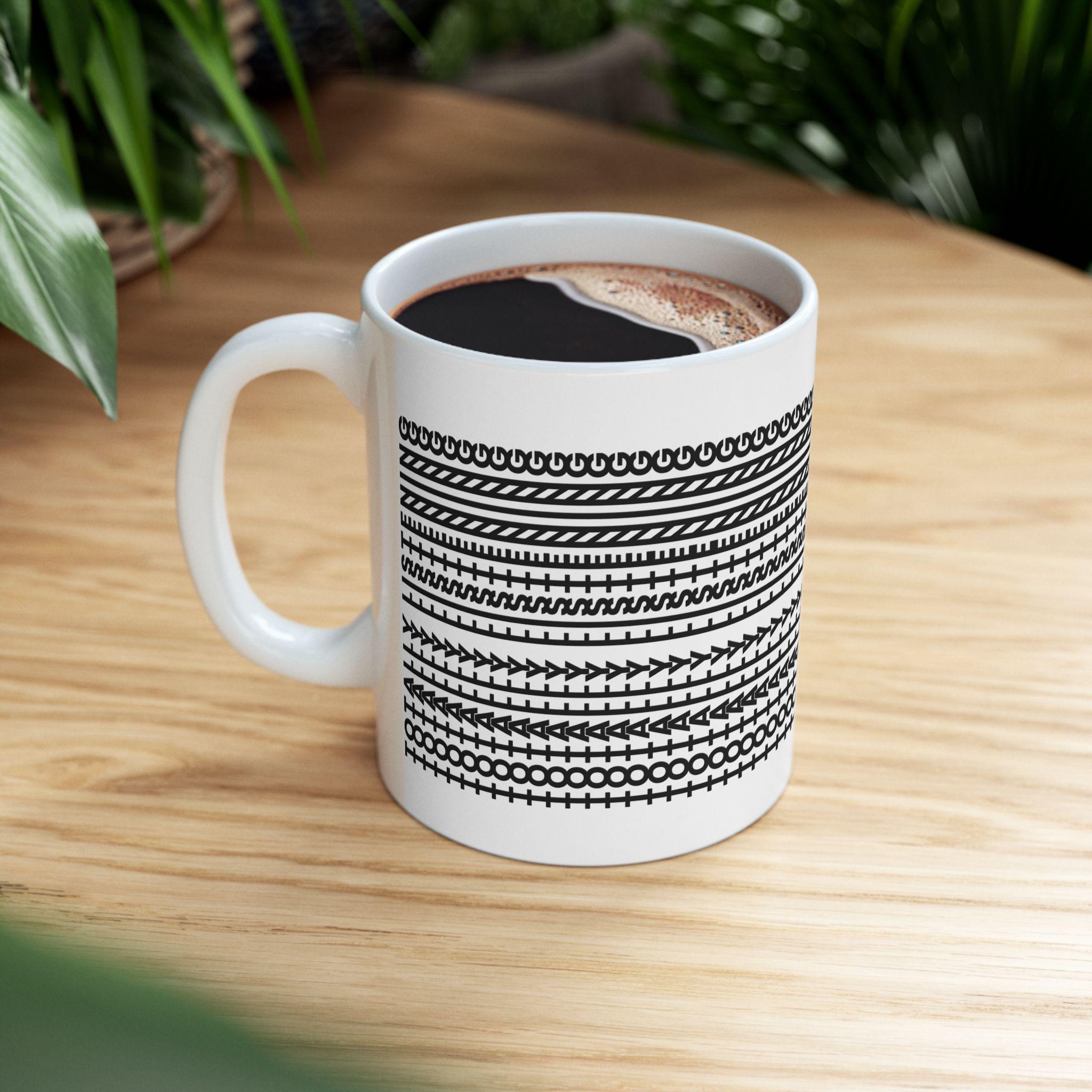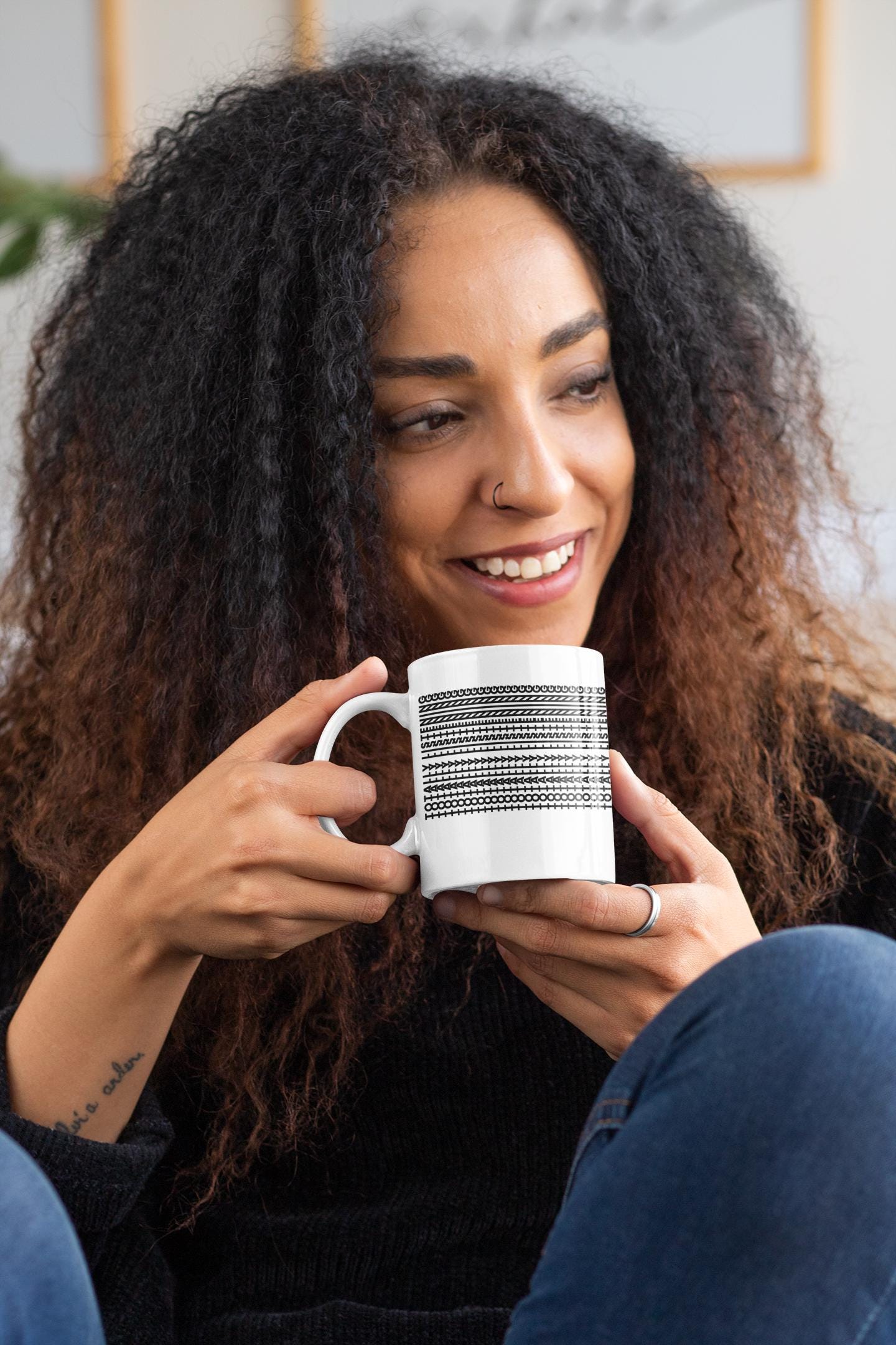 This mug looks like a trendy black-and-white pattern at first glance — but hidden within the lines is the cheeky phrase:
