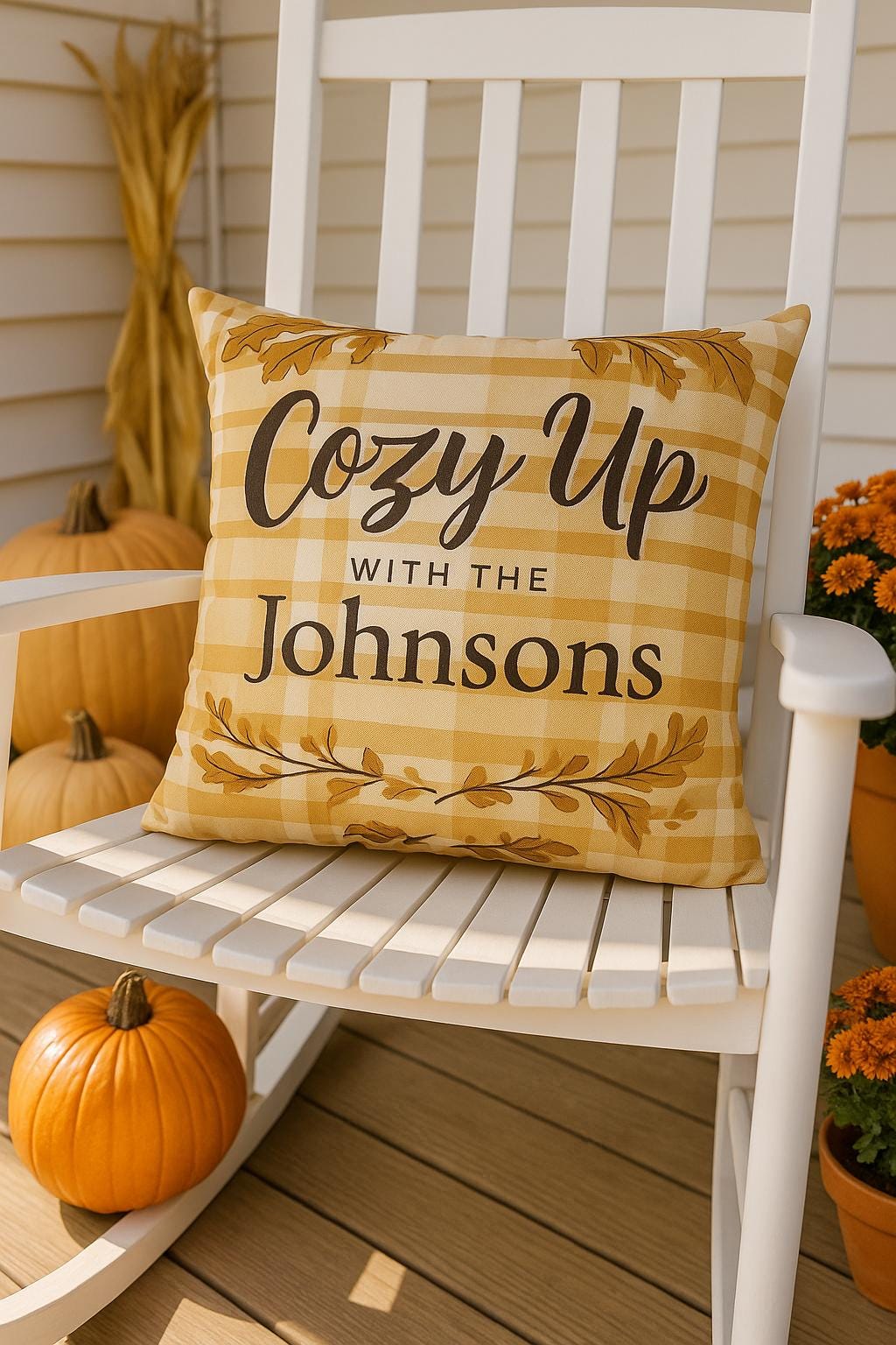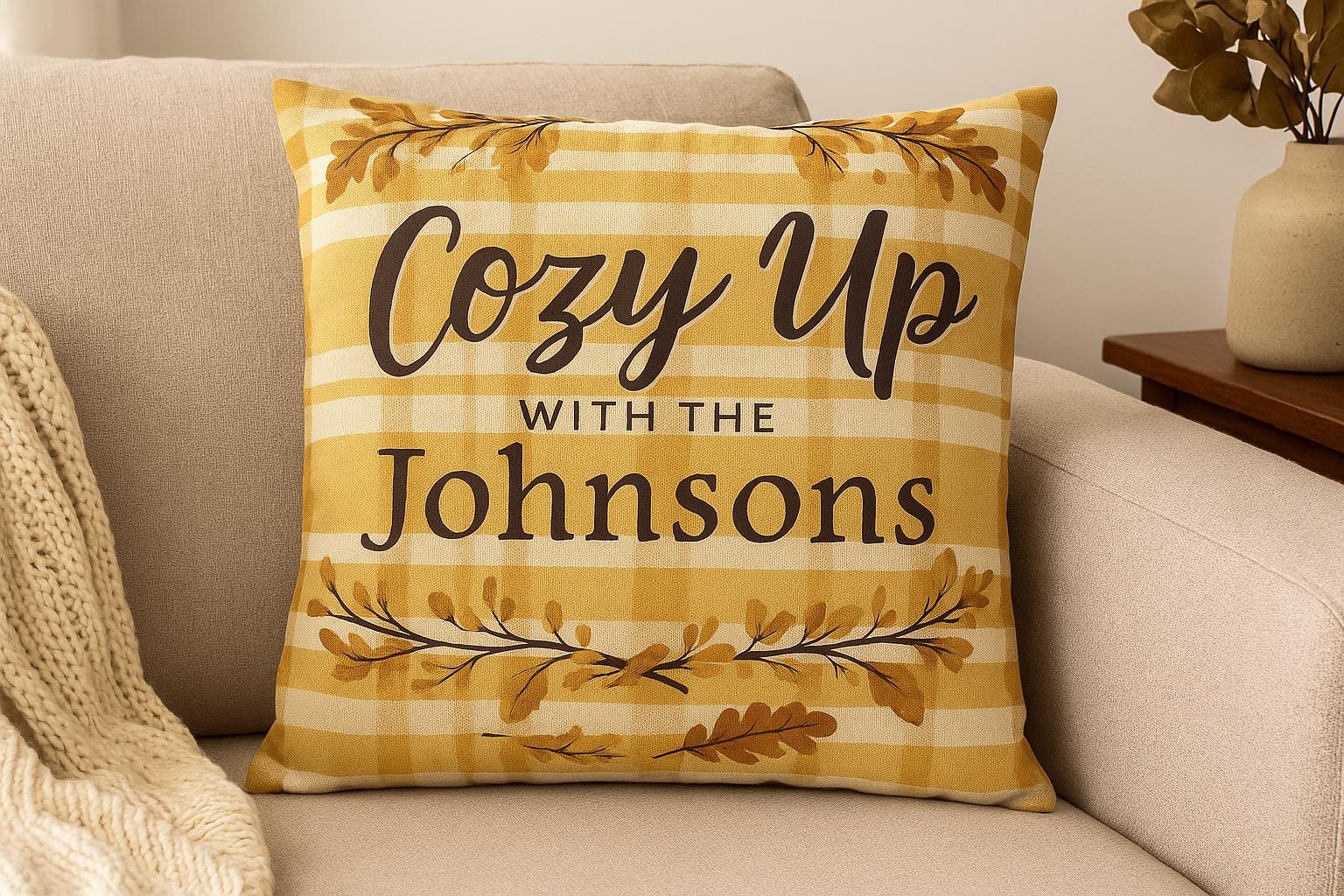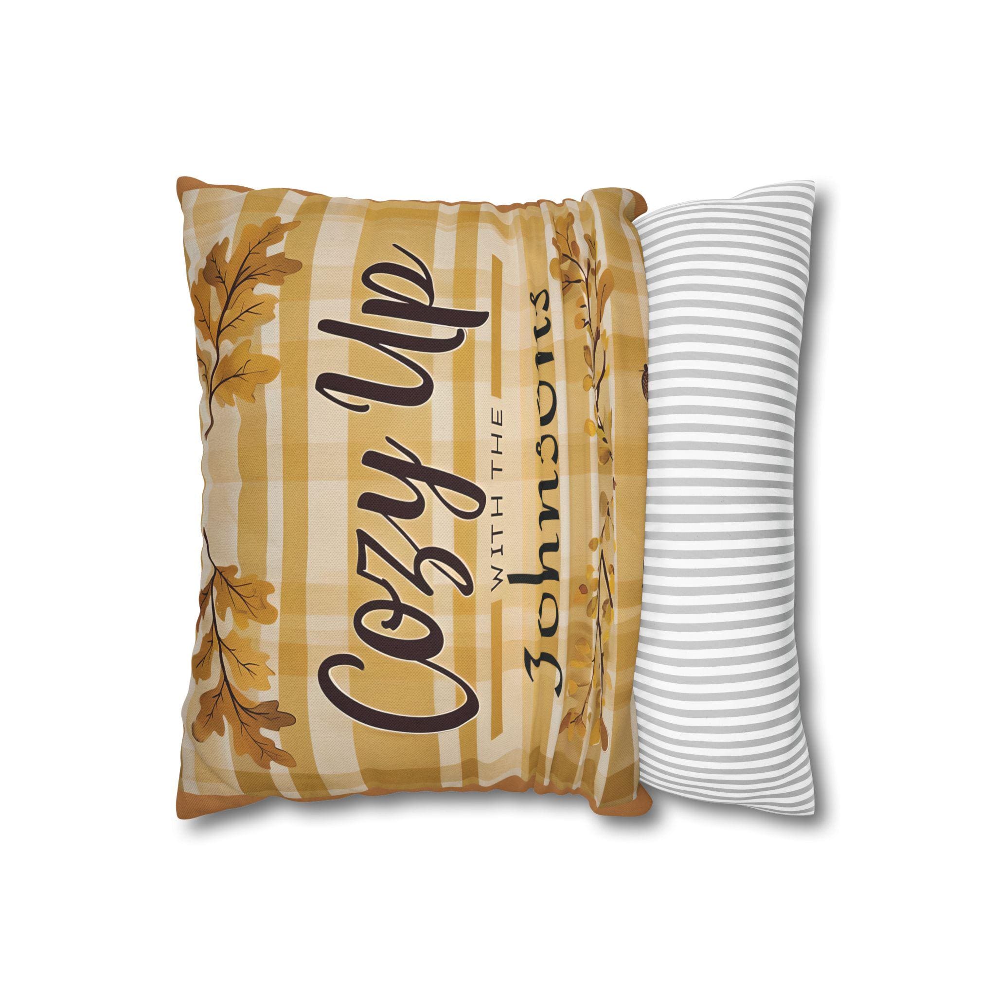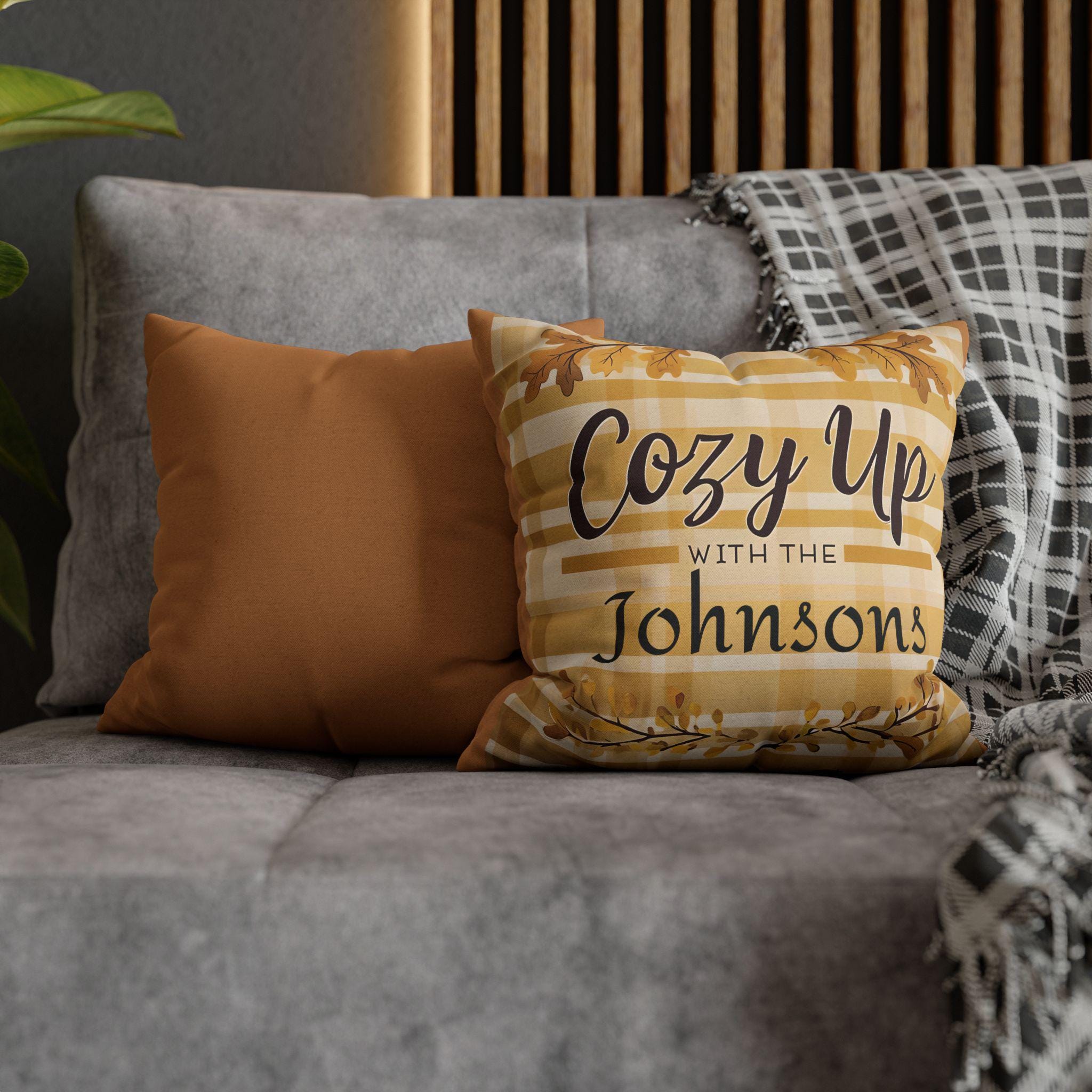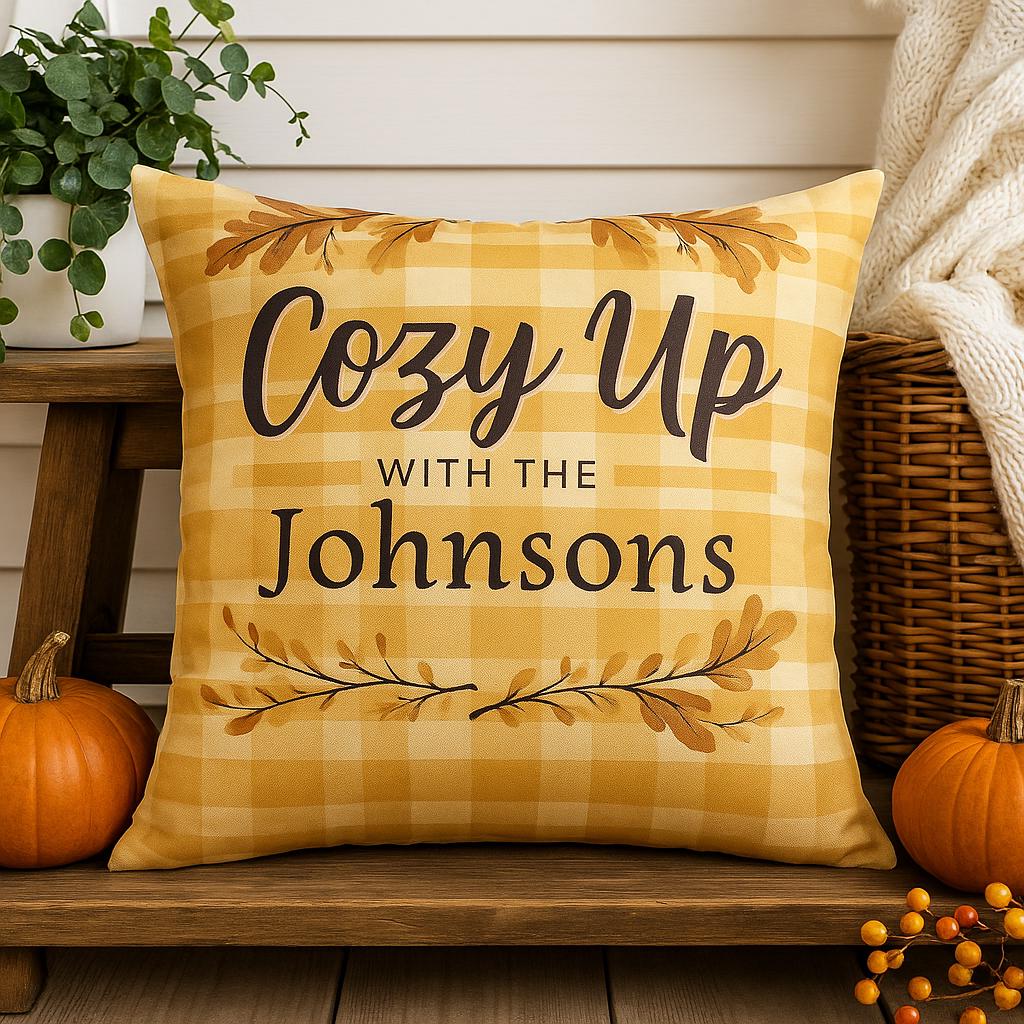 Add the perfect fall touch to your home with this personalized autumn pillow cover featuring warm golden plaid, oak leaves, and your custom family name! Whether you're decorating your porch swing or snuggling up indoors, this rustic farmhouse-style cushion cover sets the tone for cozy nights and pumpkin-spiced everything.