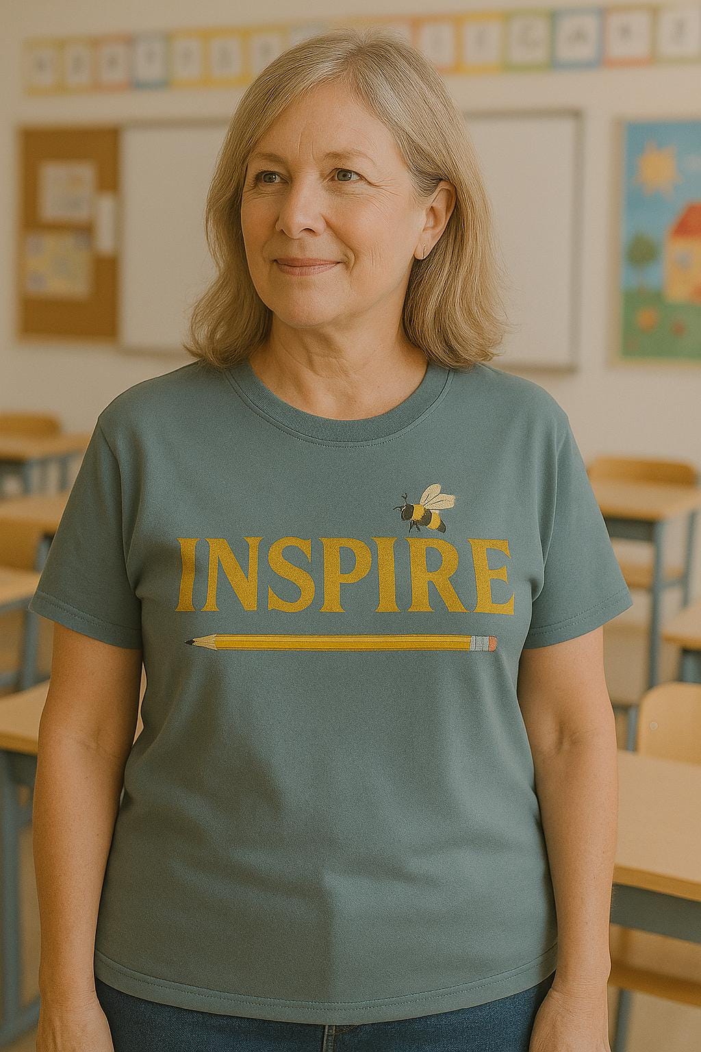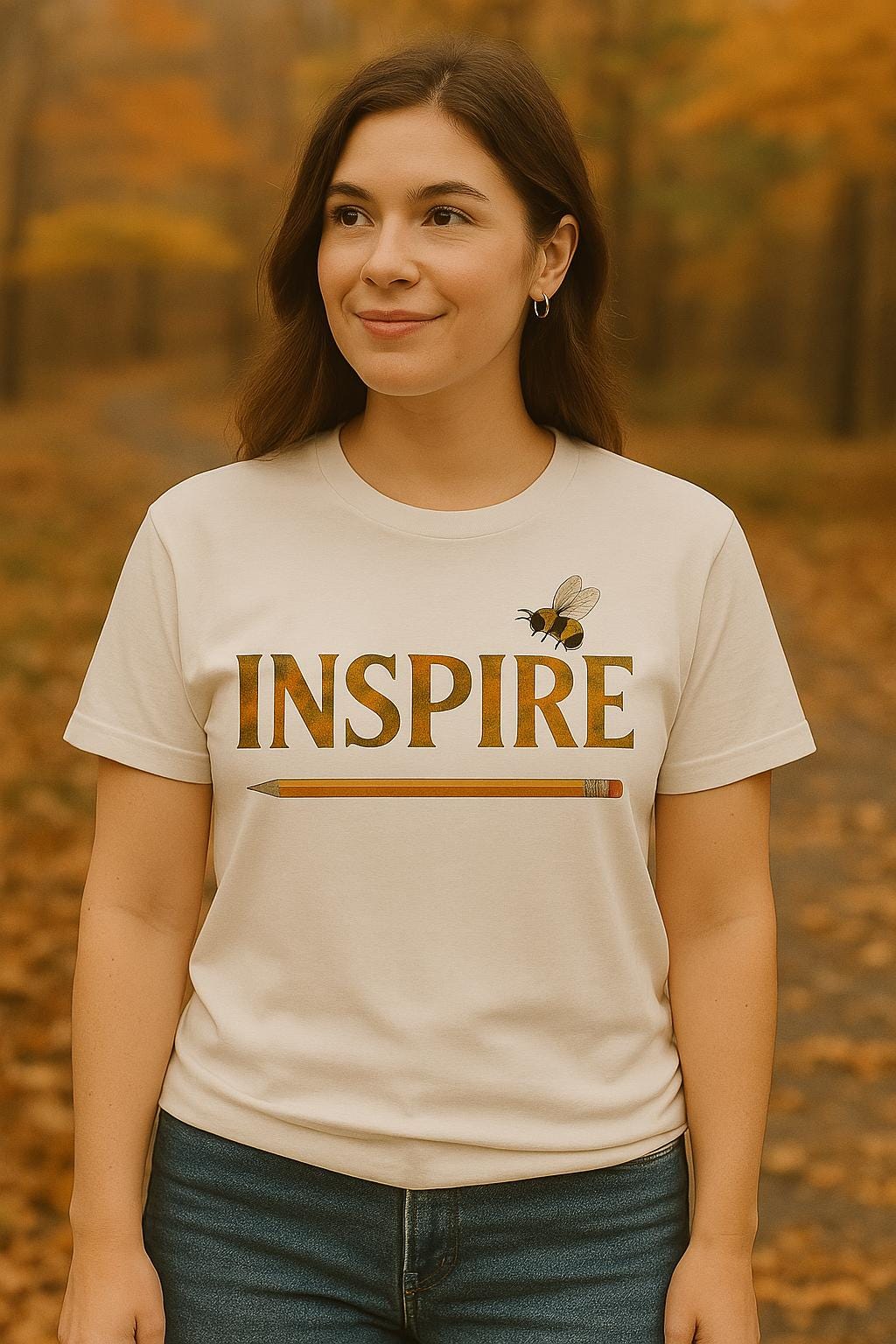 This INSPIRE Teacher T-Shirt celebrates the power of education and creativity with this “INSPIRE” Comfort Colors T-shirt — a meaningful and stylish choice for teachers, writers, or anyone who leads with purpose. With autumn-toned floral lettering, a pencil underline, and a tiny buzzing bee, this soft tee reminds us that big change starts with small acts of inspiration.