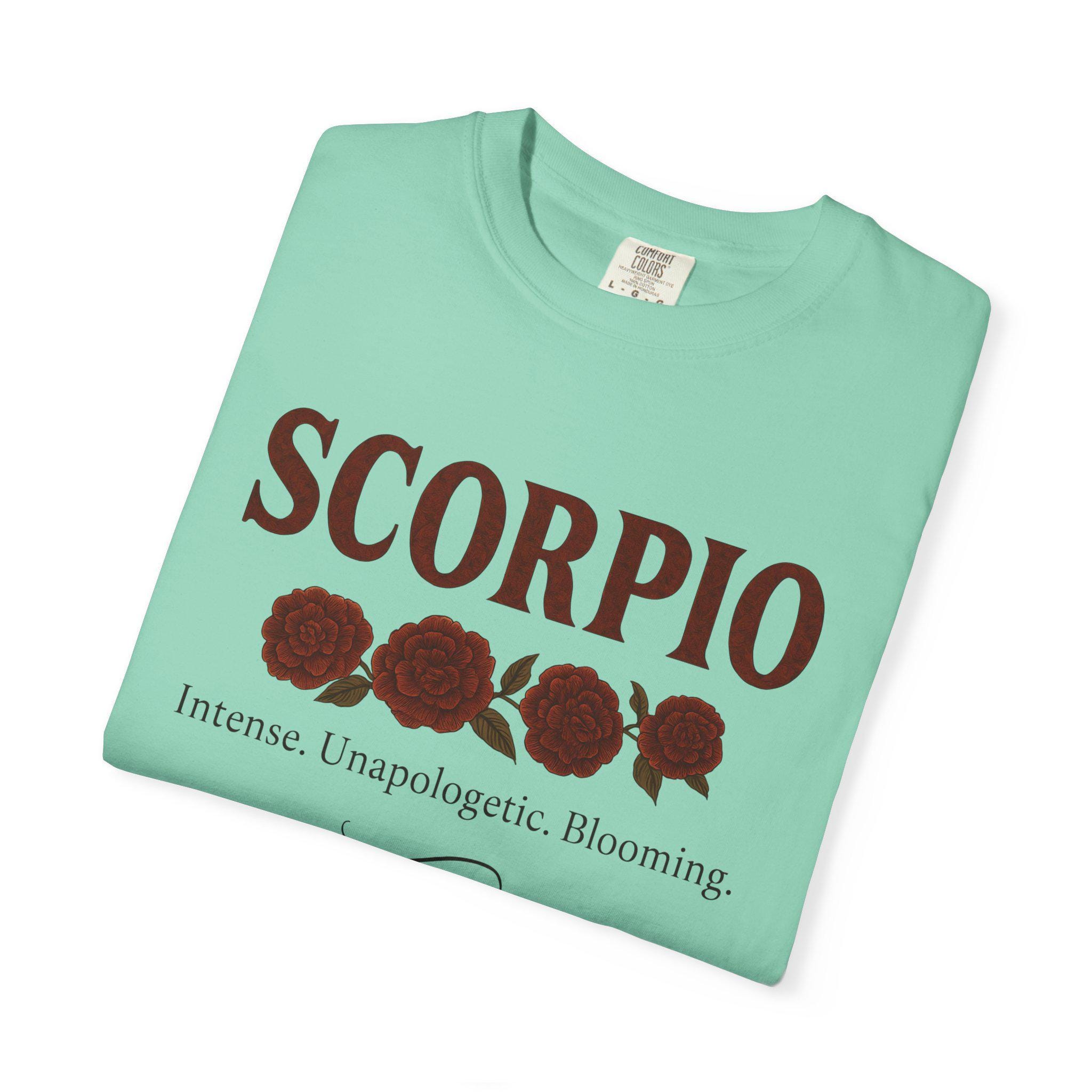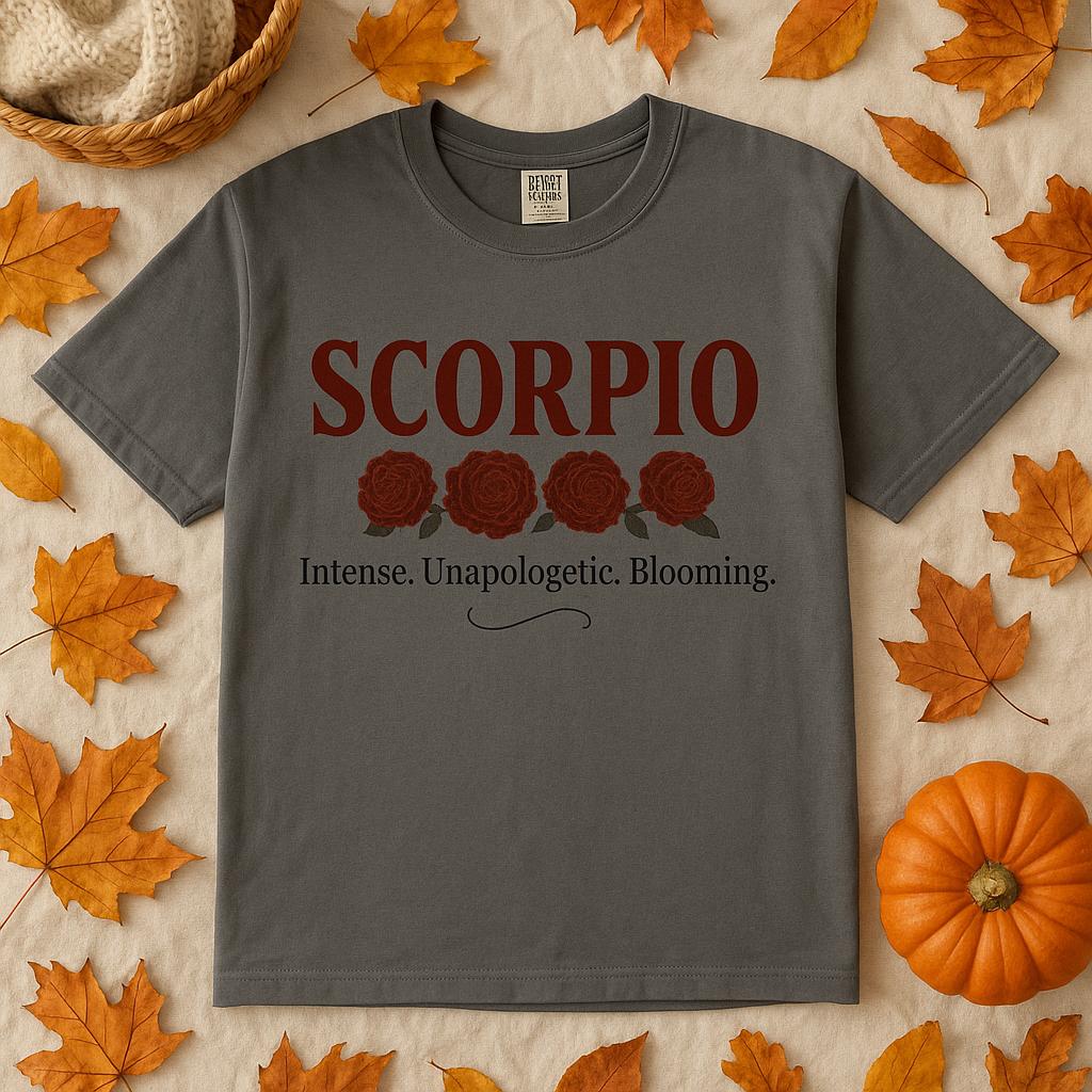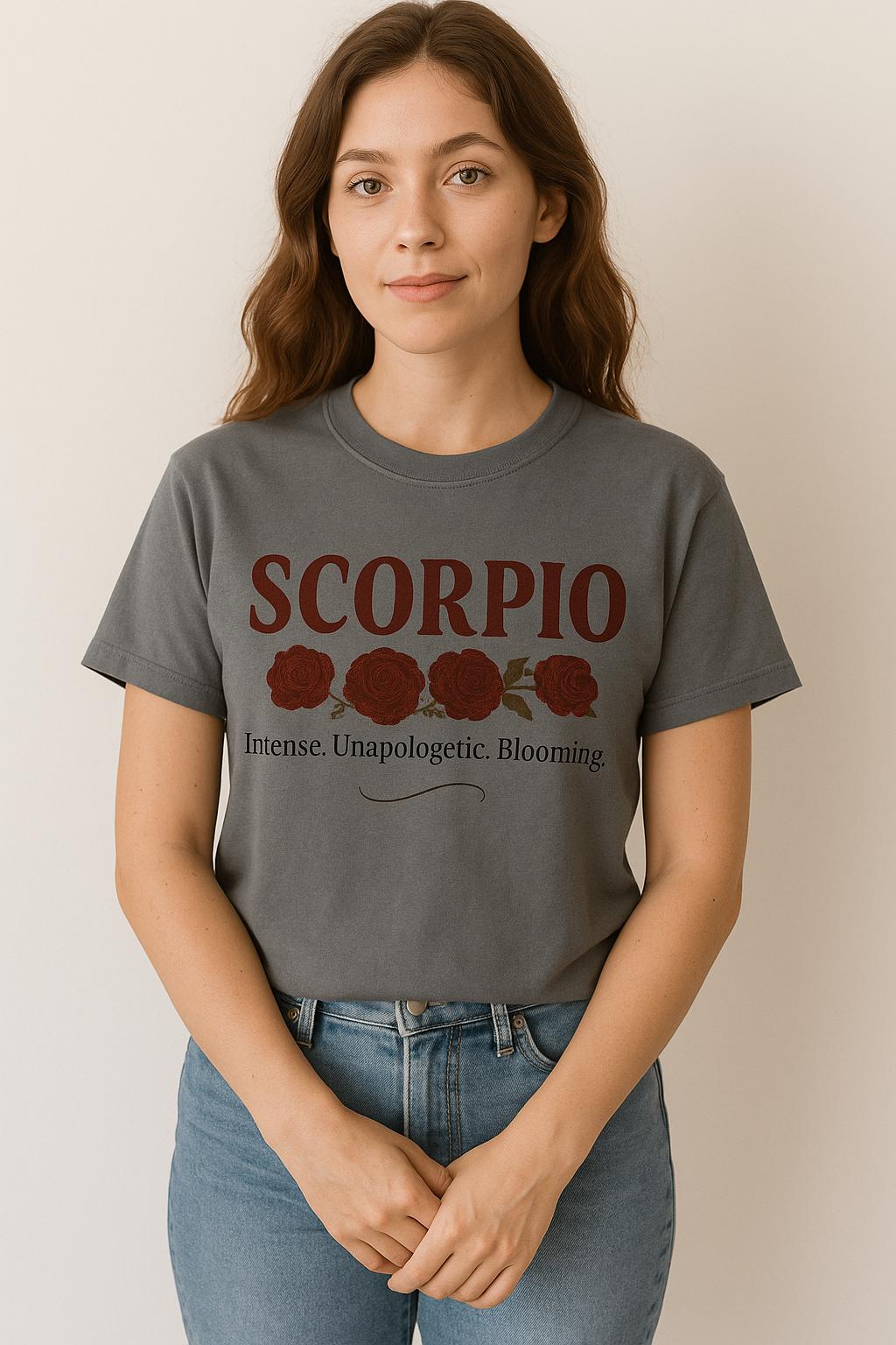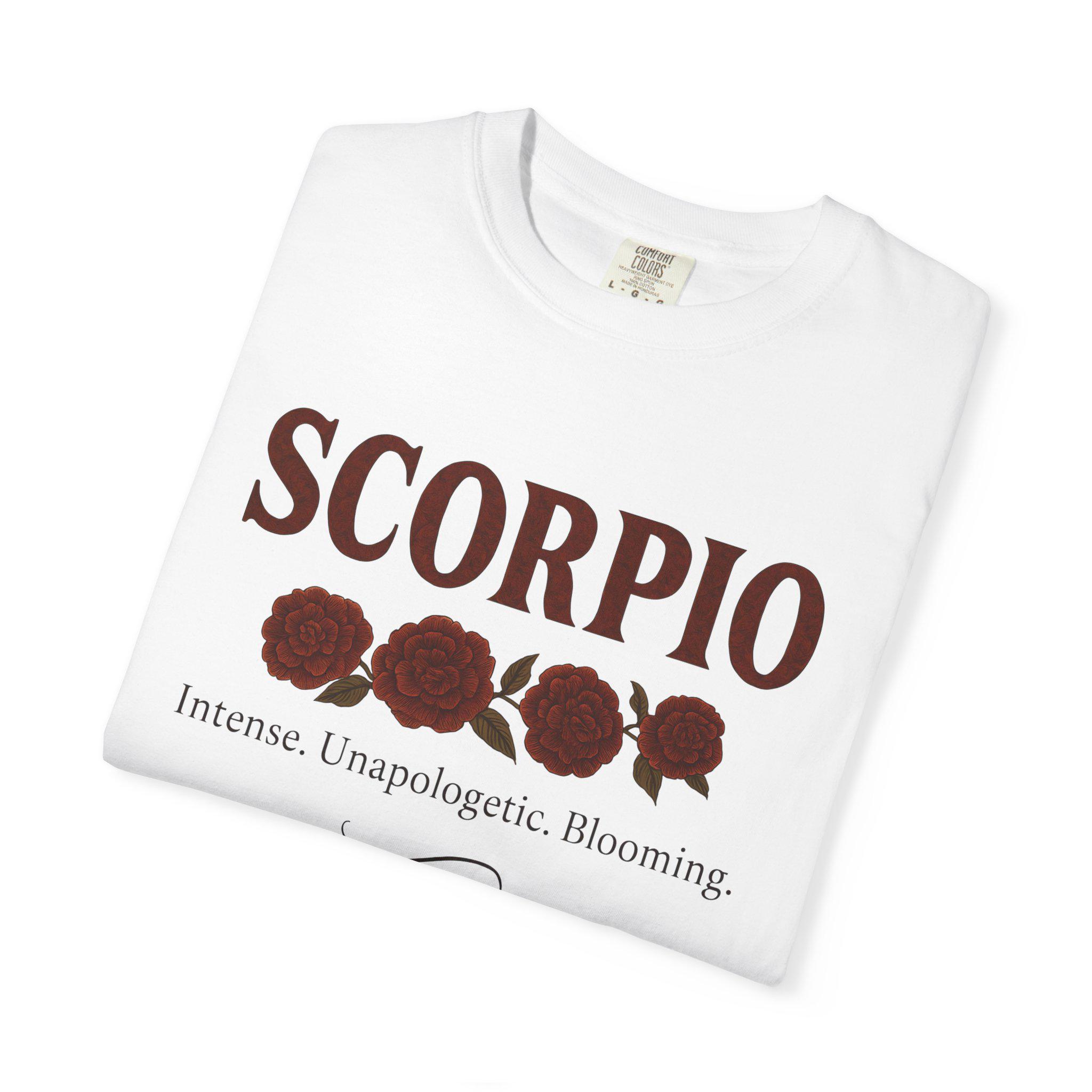 Celebrate your inner mystic (or gift one!) with this stunning Comfort Colors T-shirt designed for Scorpios who bloom even in the shadows. With deep red florals and bold typography, this astrology-inspired design captures everything that makes Scorpios unforgettable: passion, mystery, and a powerful transformation energy.