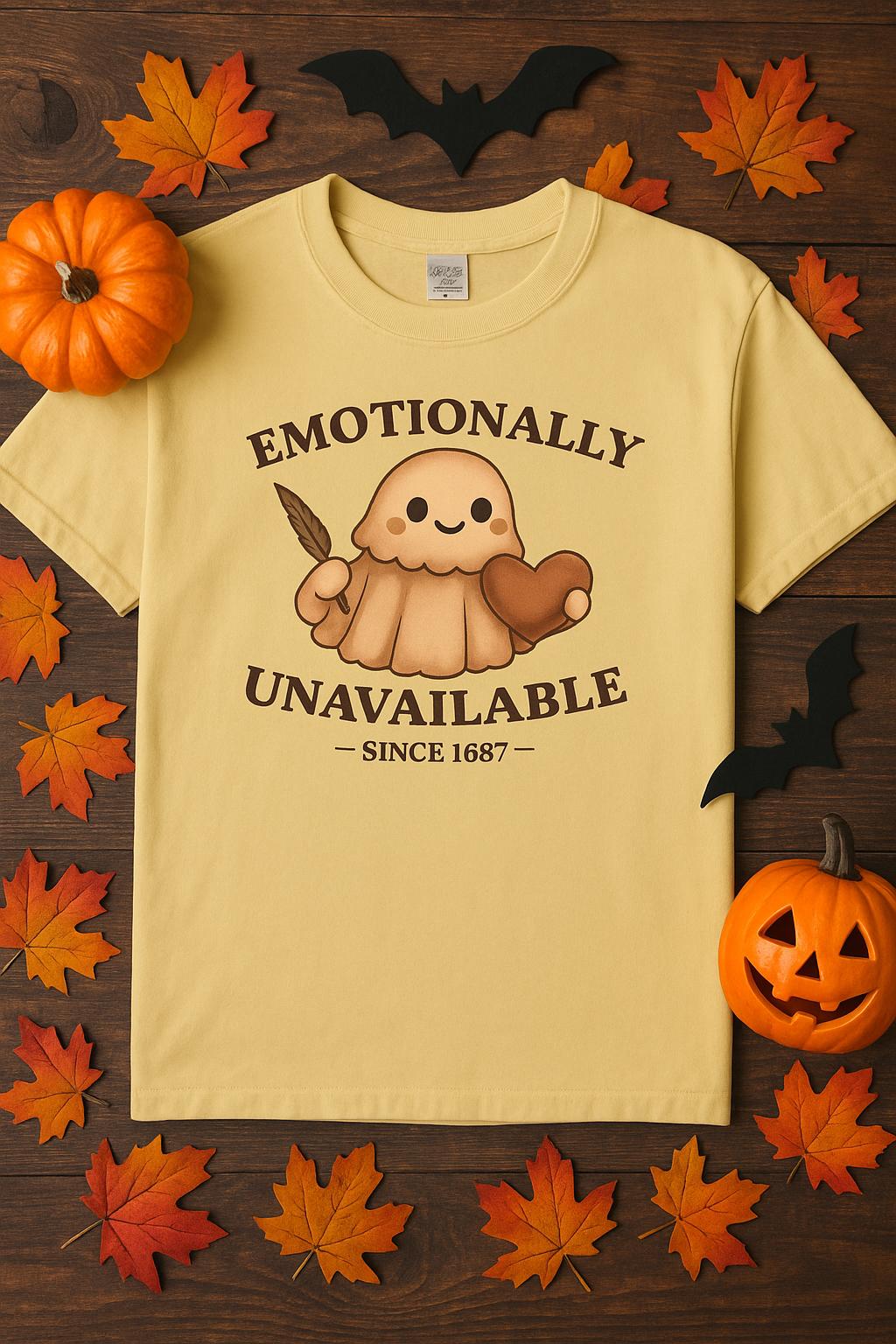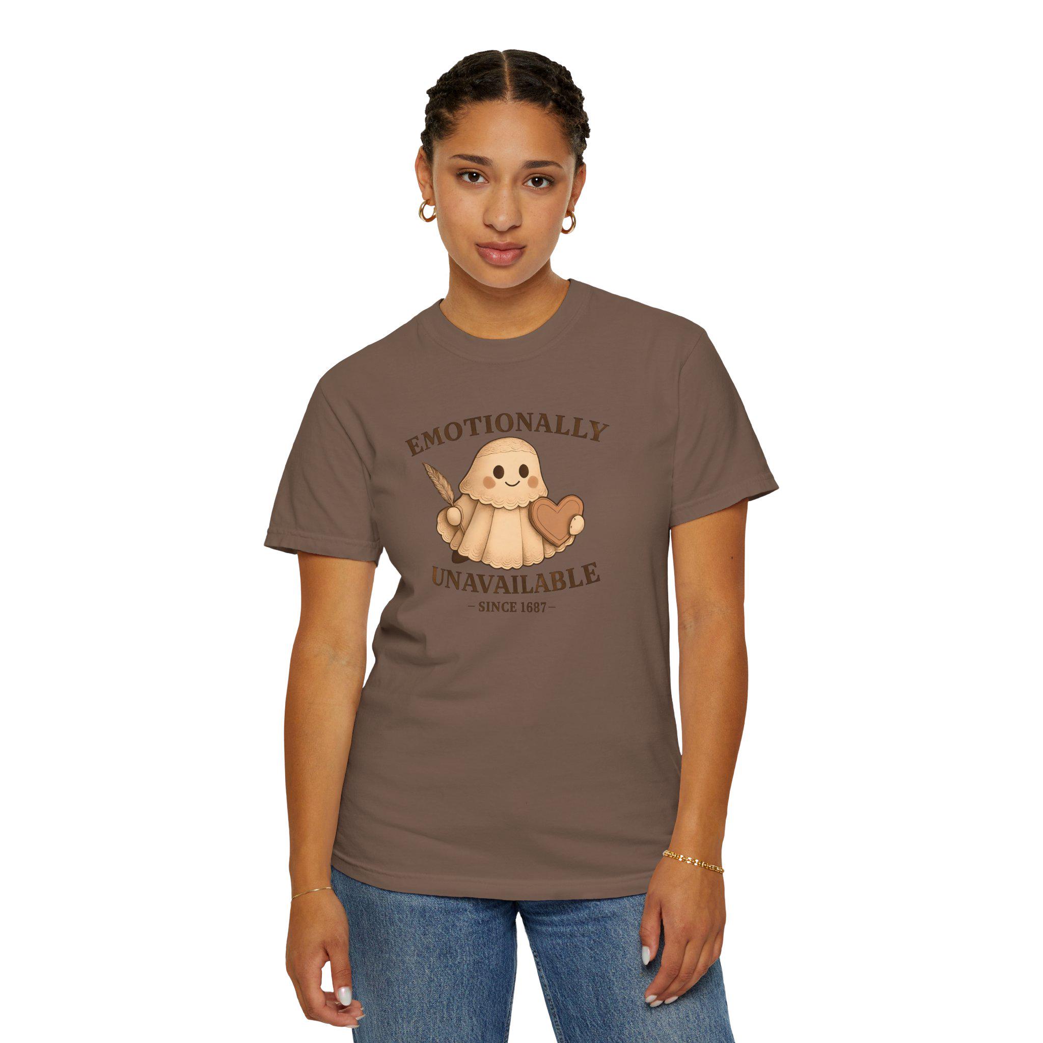 Emotionally Unavailable Ghost Comfort Colors Tee: Pastel Goth Humor