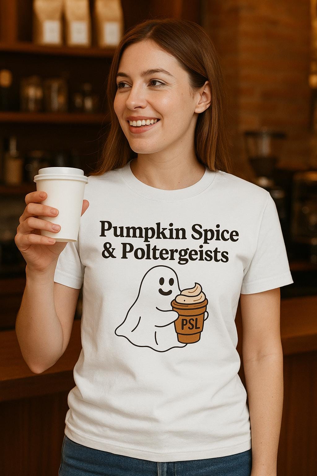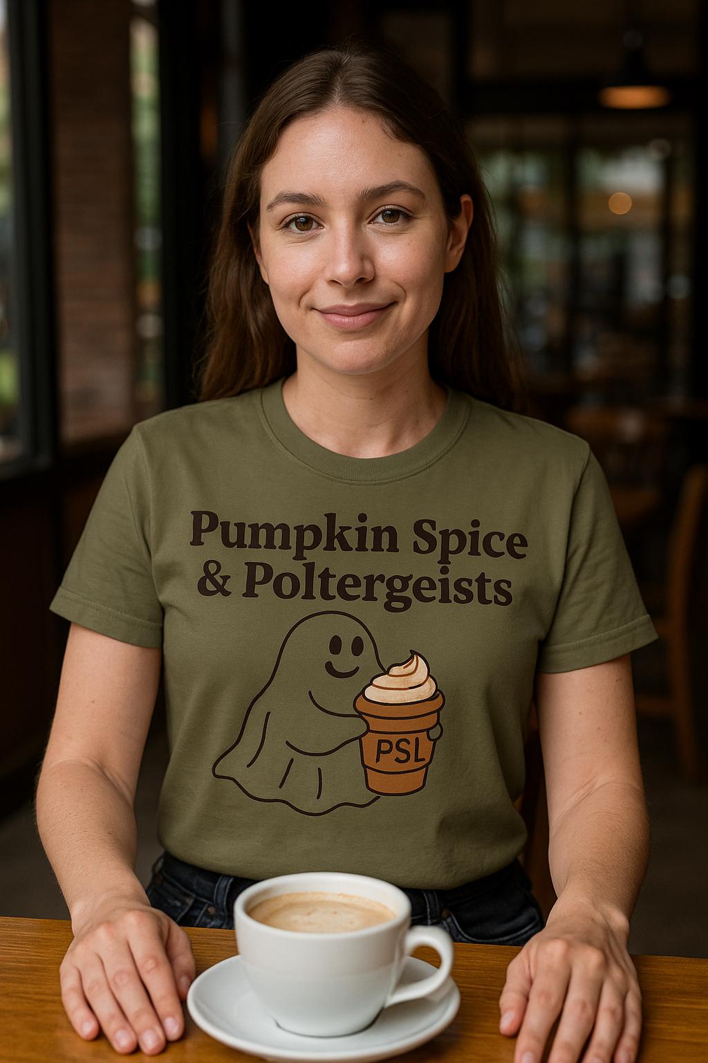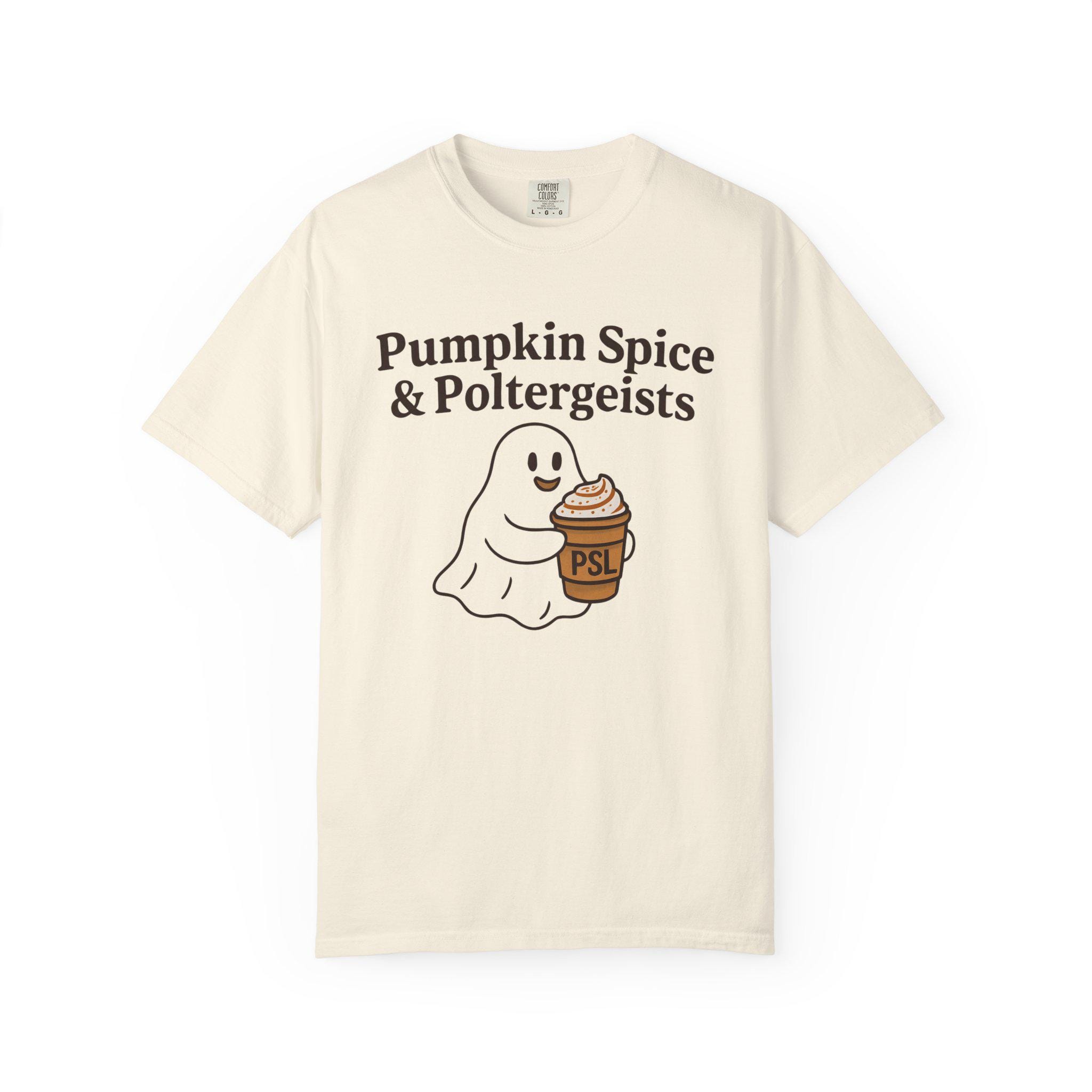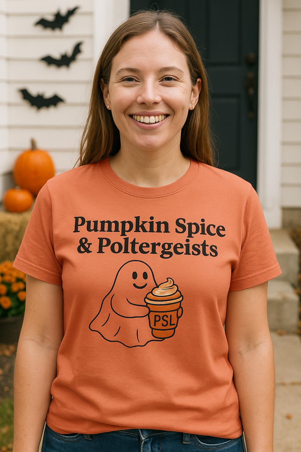 Celebrate the cozy vibes of fall with our Pumpkin Spice & Poltergeists T-Shirt, a perfect blend of seasonal charm and playful Halloween spirit. This cute ghost shirt stands out for PSL lovers seeking a unique autumn tee that brings warmth and whimsy together.
