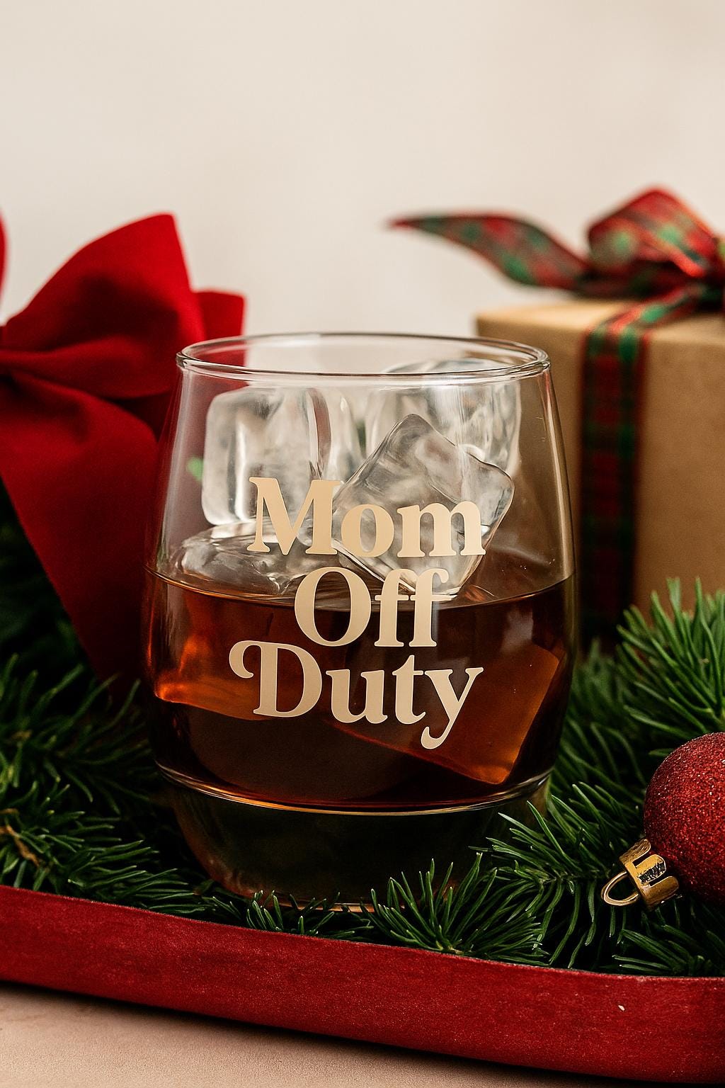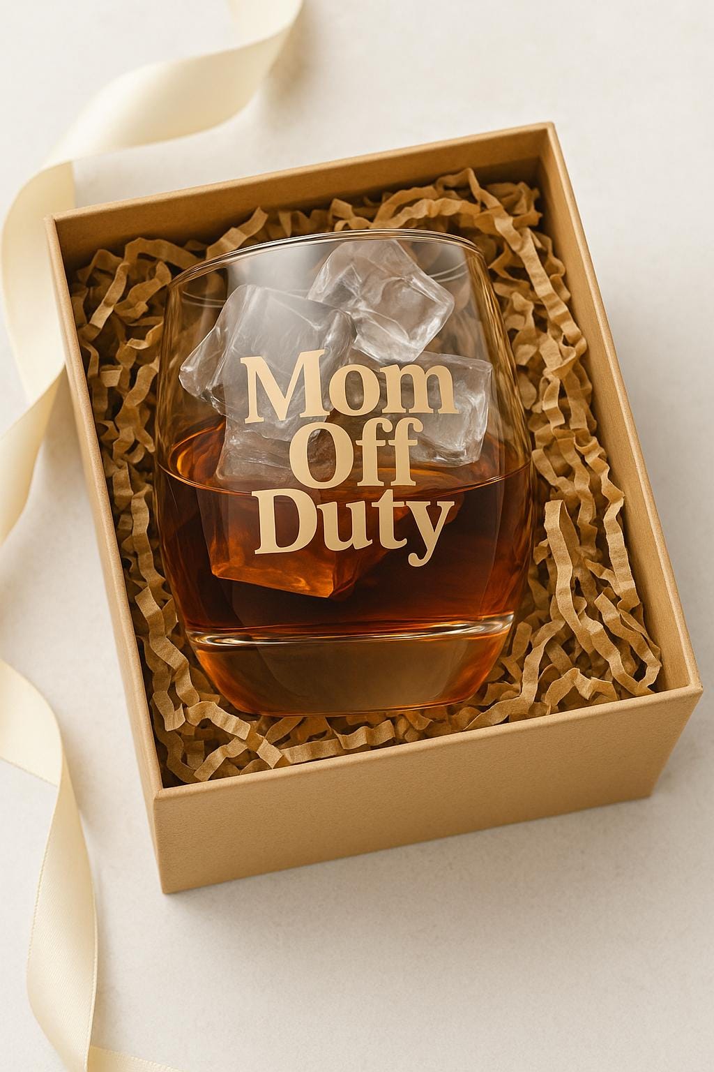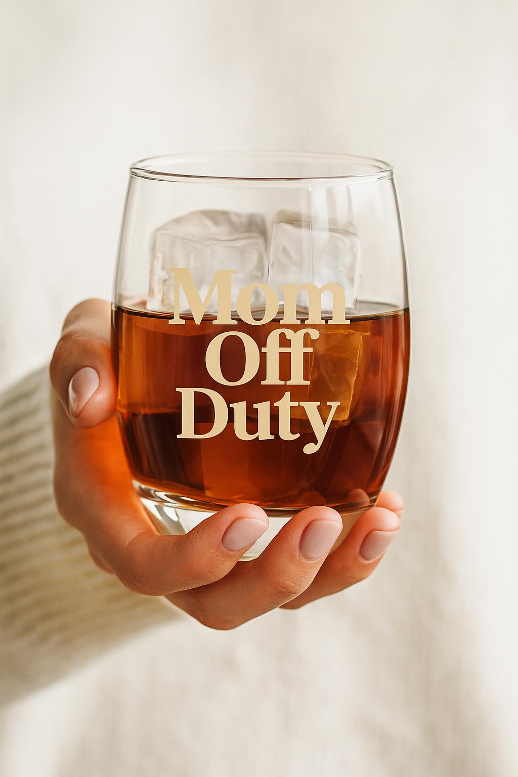 This 6 oz Mom Off Duty whiskey or wine glass is the perfect reminder that rest is required. Whether she's sipping bourbon, wine, or iced coffee, this glass helps her say it loud and clear: I'm off duty.