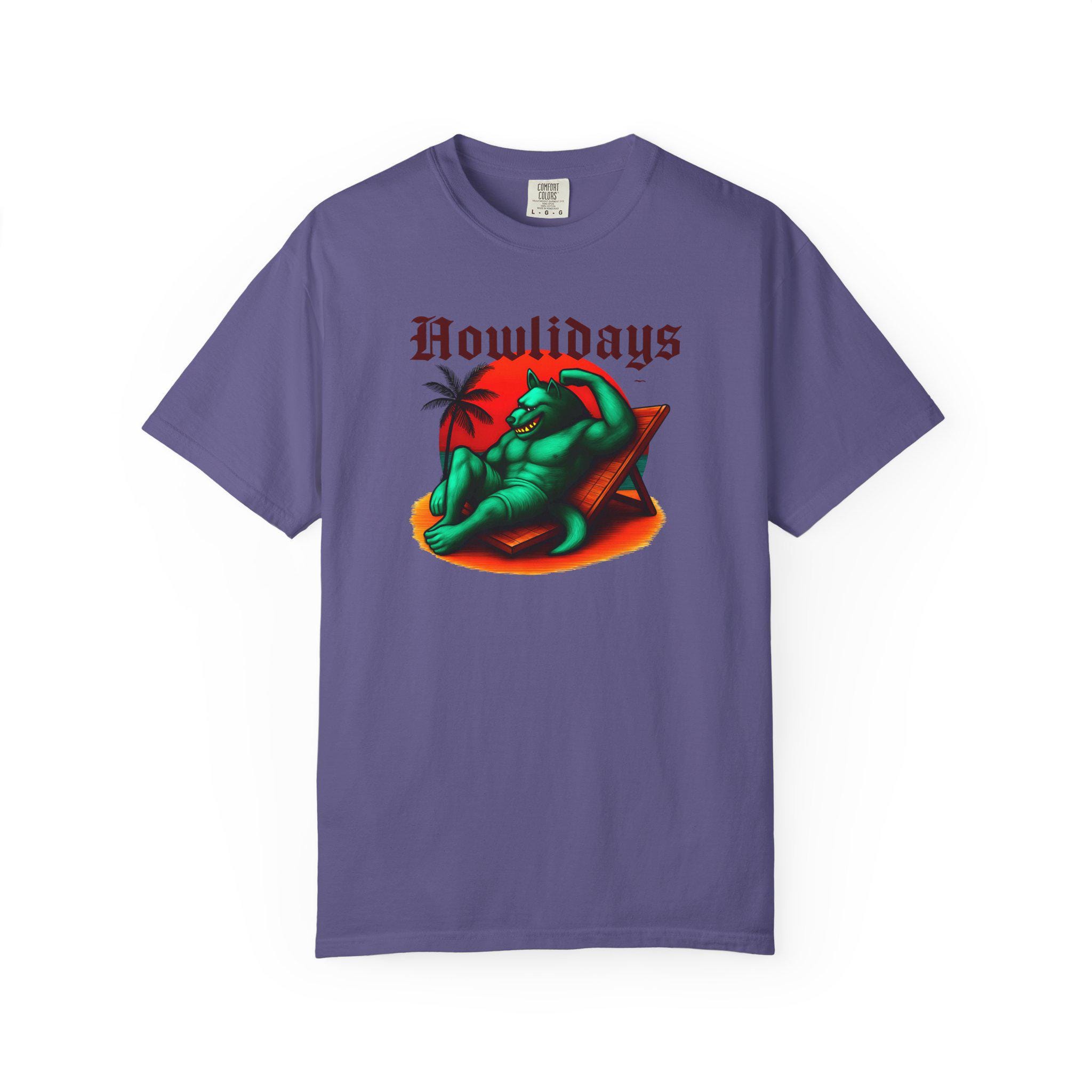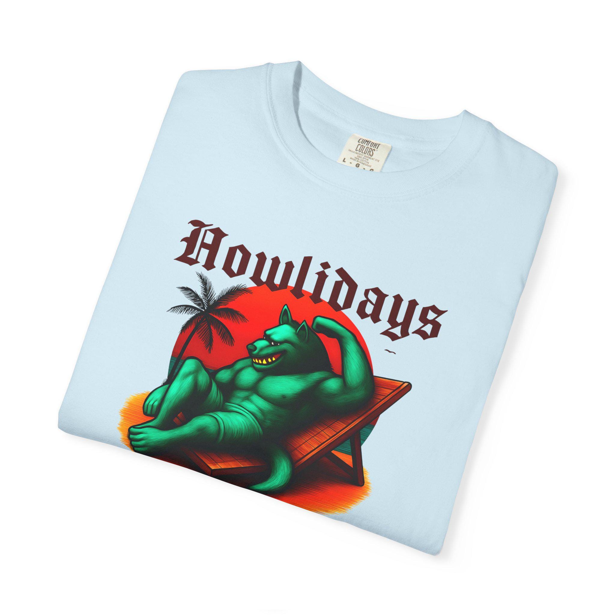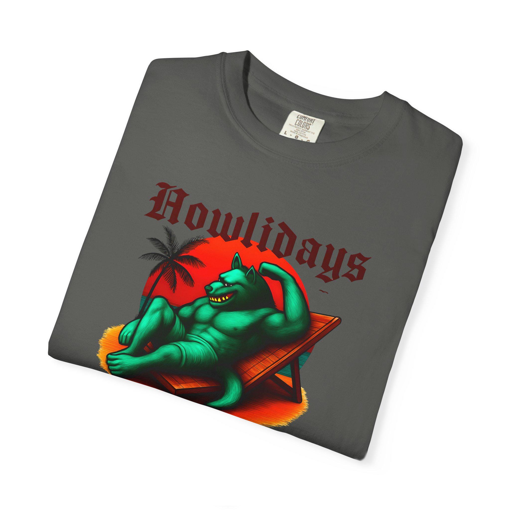 Wolfman Howlidays Comfort Colors T-Shirt: Spooky Halloween Beach Tee