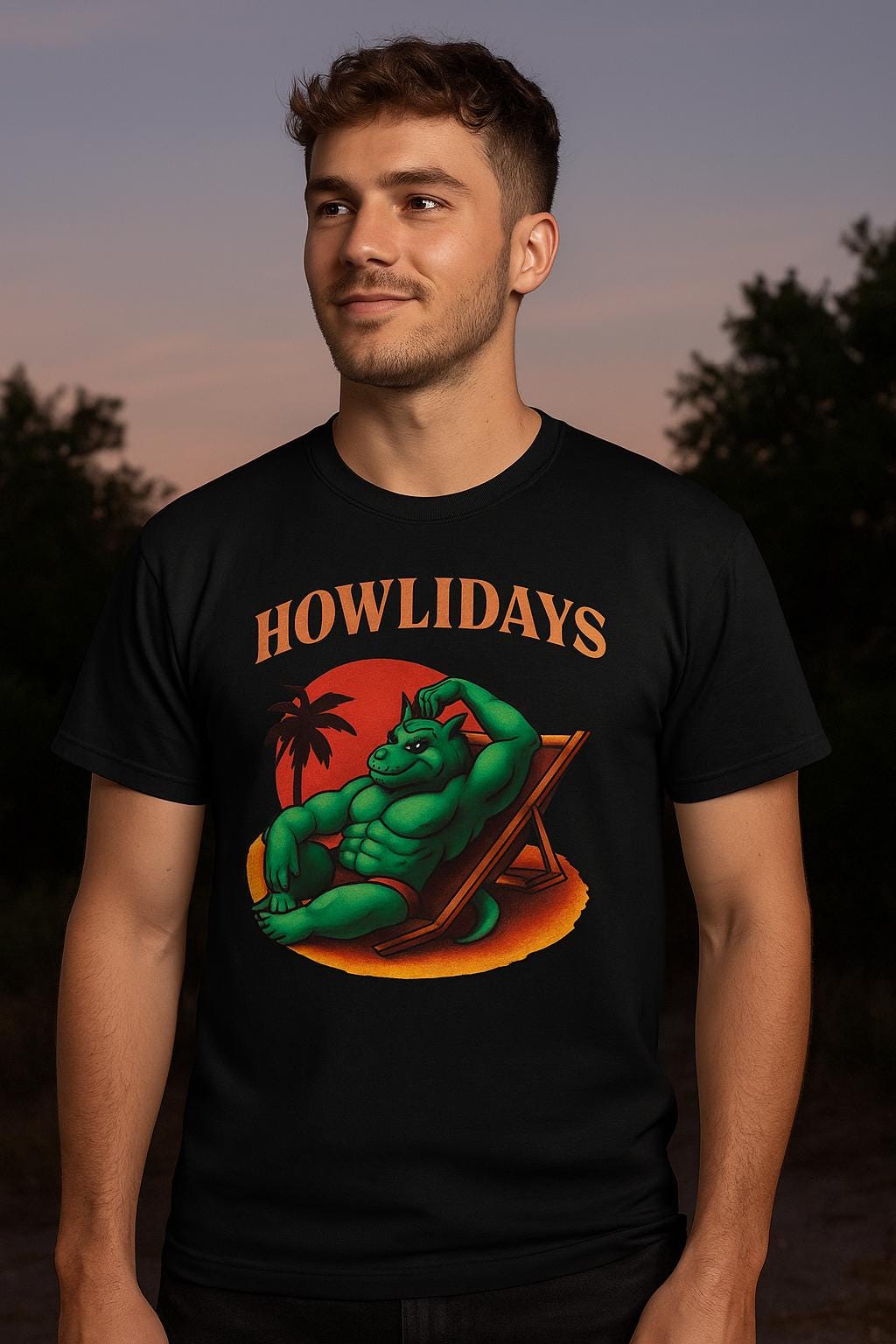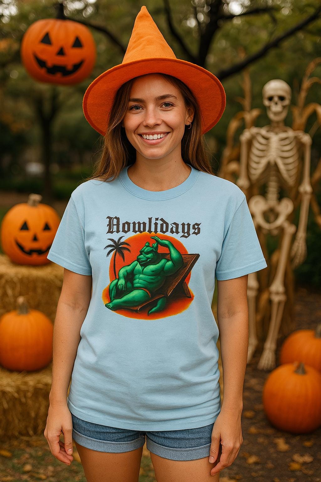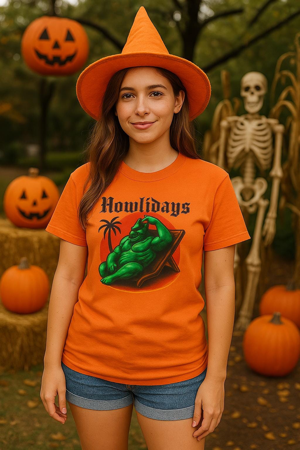 Wolfman Howlidays Comfort Colors T-Shirt: Spooky Halloween Beach Tee