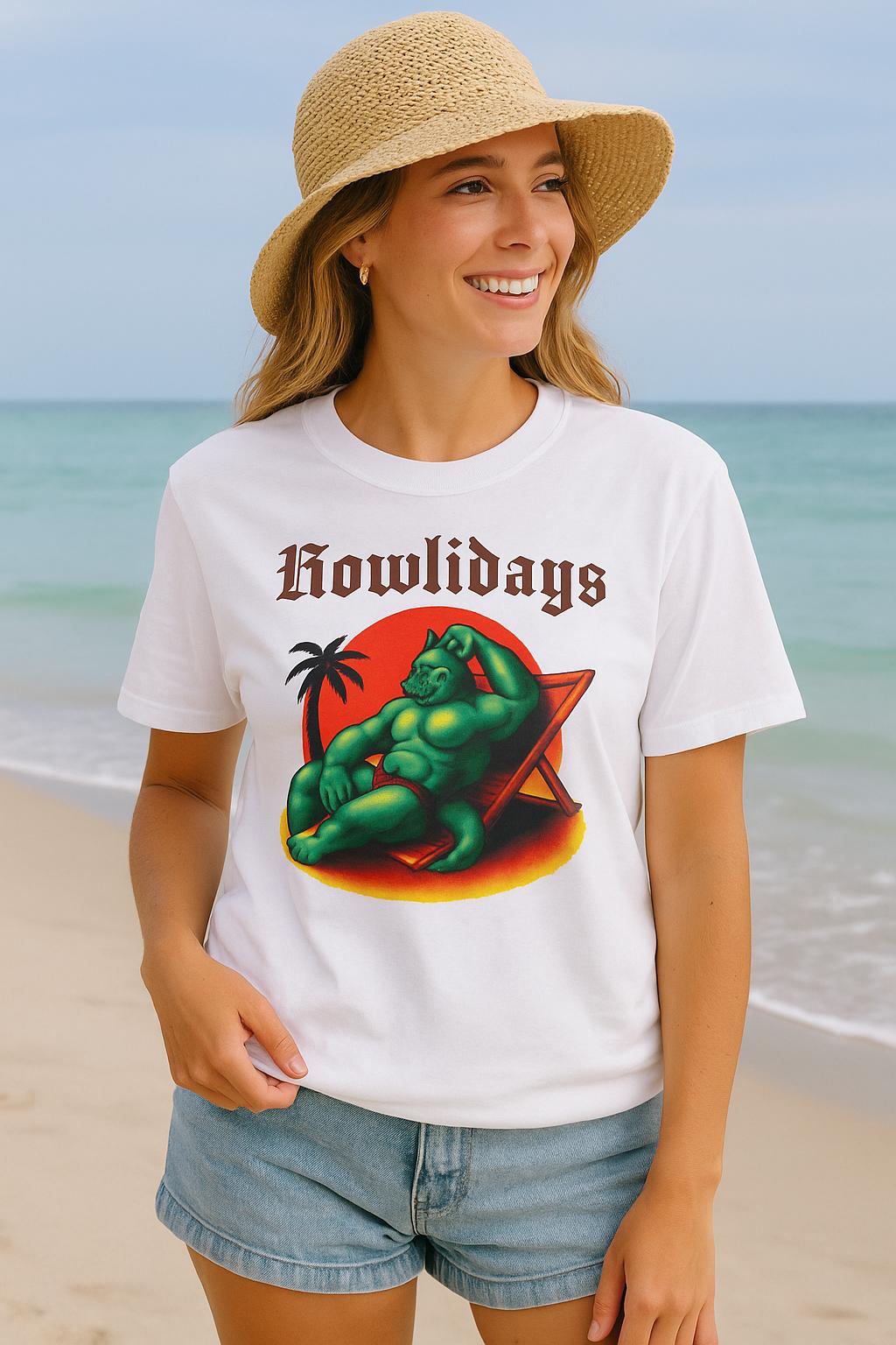 This Wolfman Howlidays Comfort Colors T-shirt is where spooky meets sunny. Featuring a jacked werewolf chilling in a beach chair under a red moon and palm trees, it's the ultimate crossover between haunted and holiday. Perfect for monster lovers, Halloween addicts, horror fans, or anyone whose vibe is more howl than ho-ho-ho.
