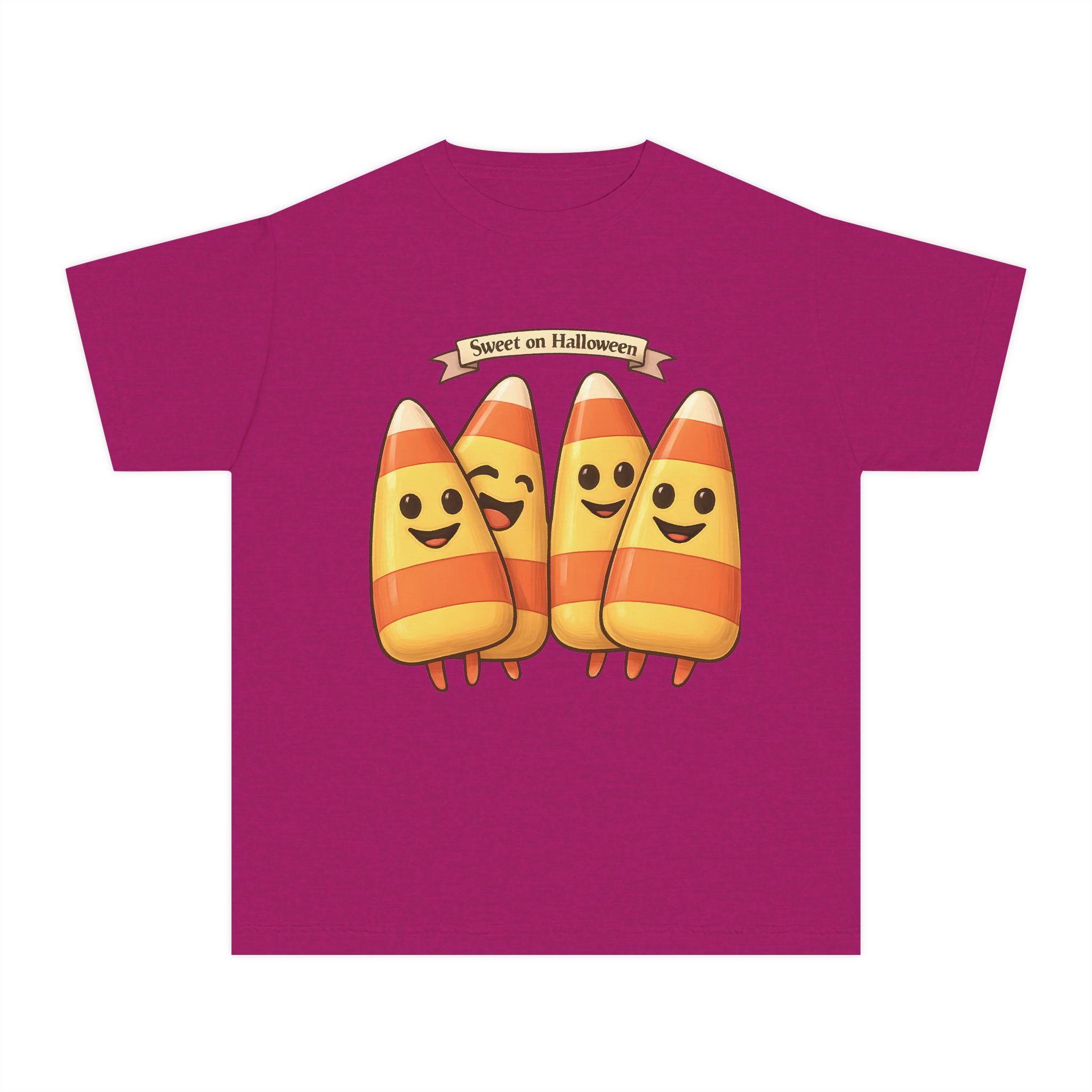 This vibrant, youth-sized holiday apparel showcases a cheerful candy corn design that captures the sweet fun of fall festivities. Whether dressing up for a school event or adding a touch of humor to casual days, this shirt is a versatile addition to any young trick-or-treater’s wardrobe. It also makes a thoughtful gift for young Halloween fans who love a good laugh and a splash of seasonal color.