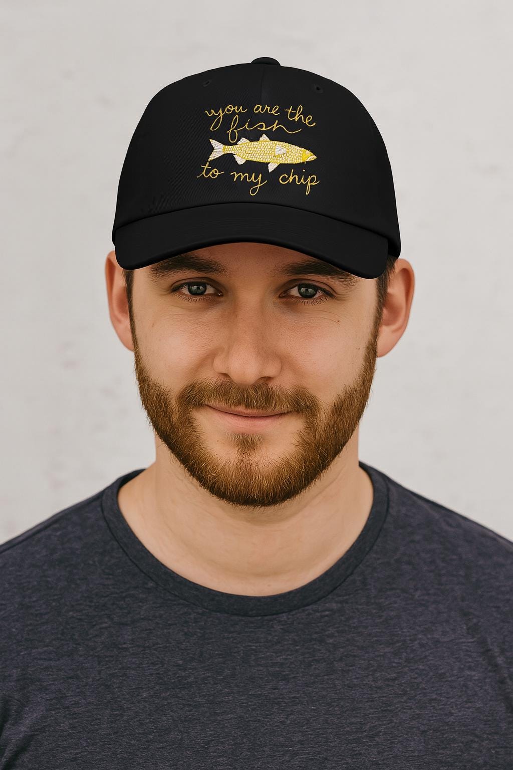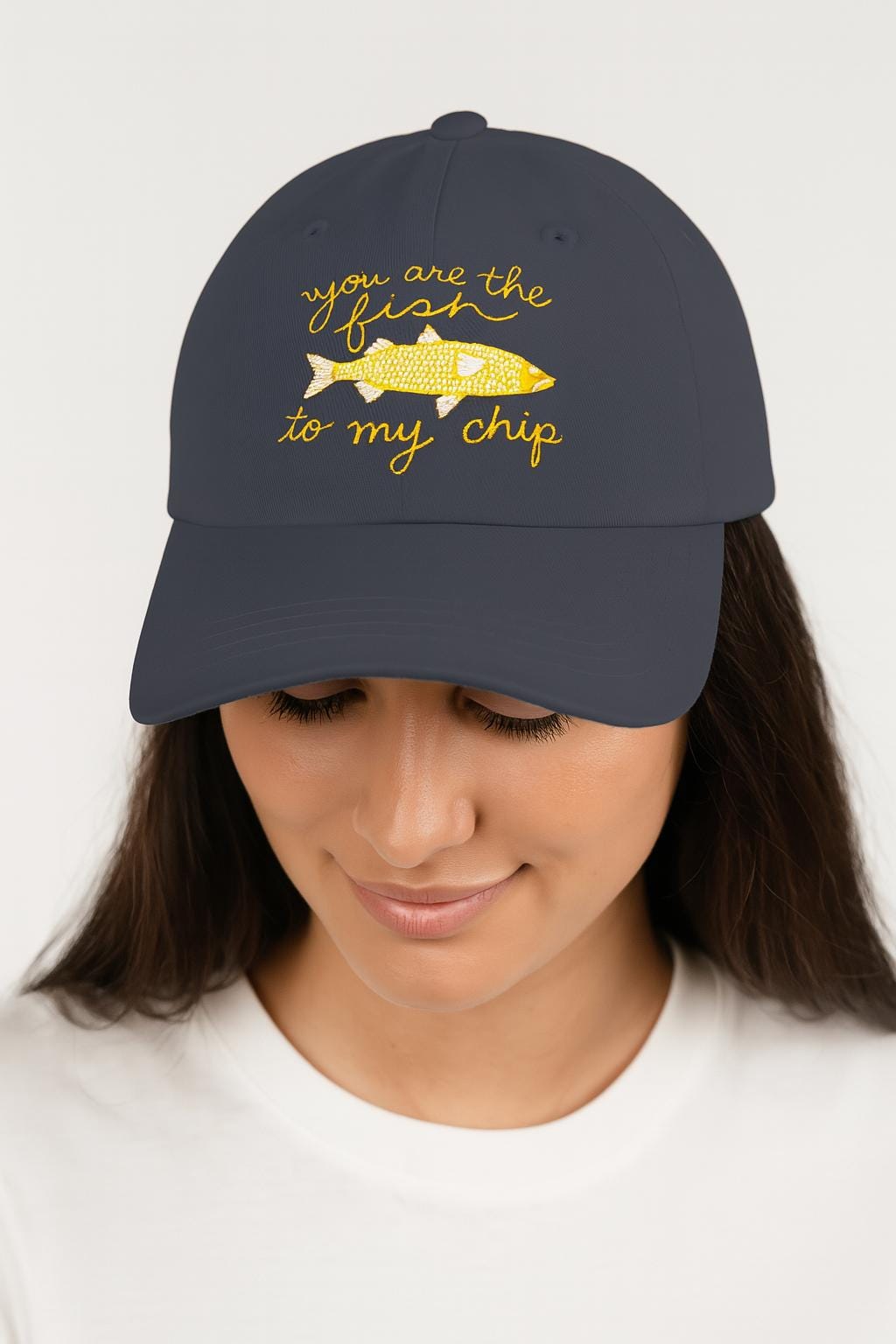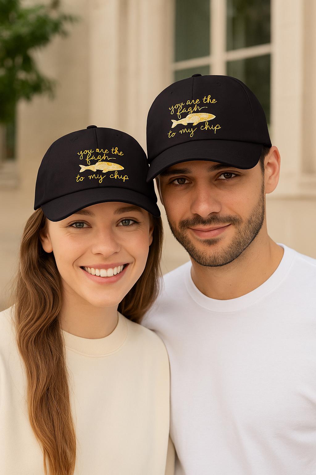 Matching Couple Hats: "You Are the Fish to My Chip" Embroidered Dad Cap