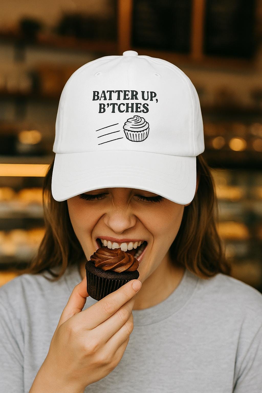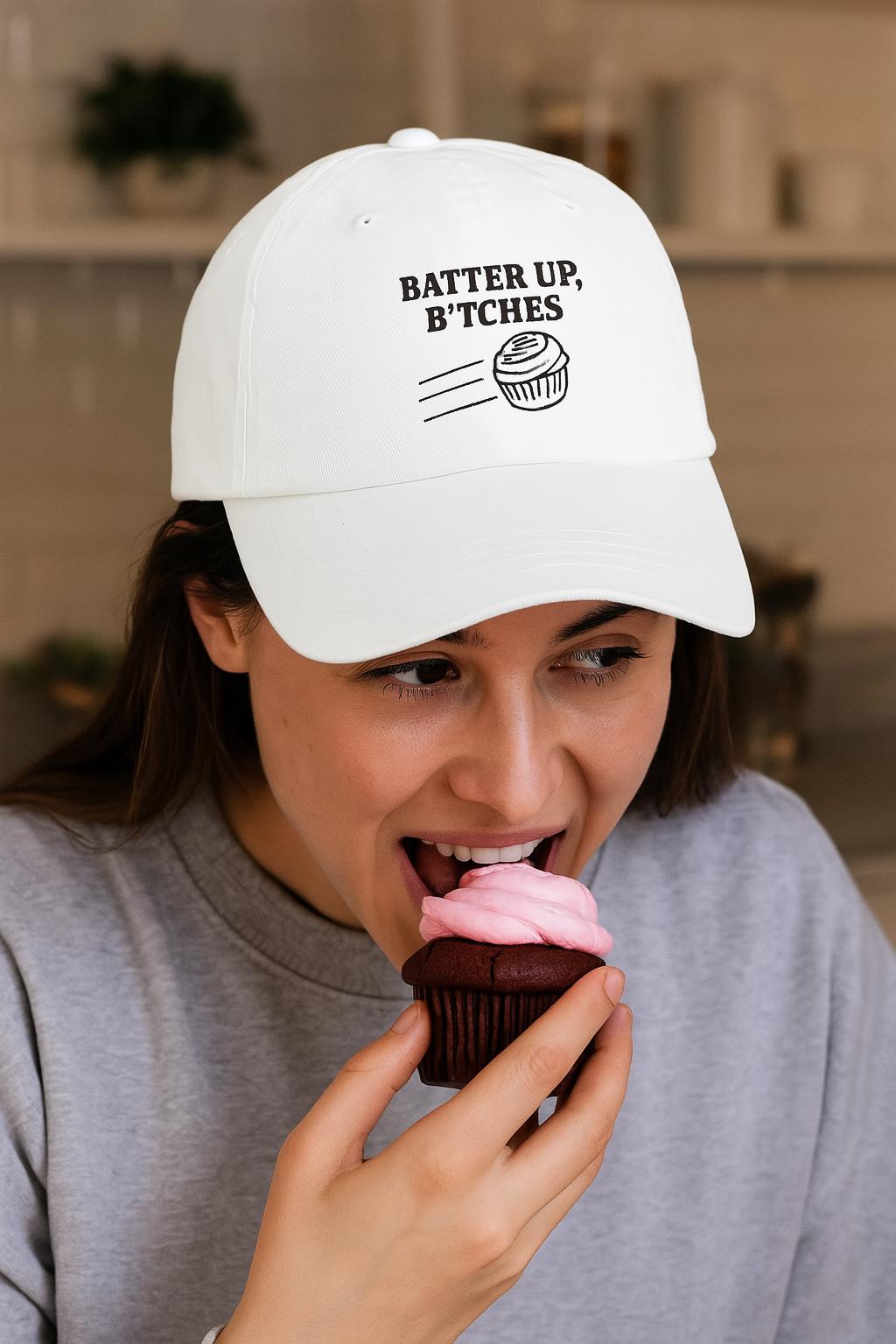 Say it loud, wear it proud. This white embroidered dad hat delivers a high-speed cupcake and a heavy dose of sass for anyone who’s ready to whip it, flip it, and serve looks while baking.