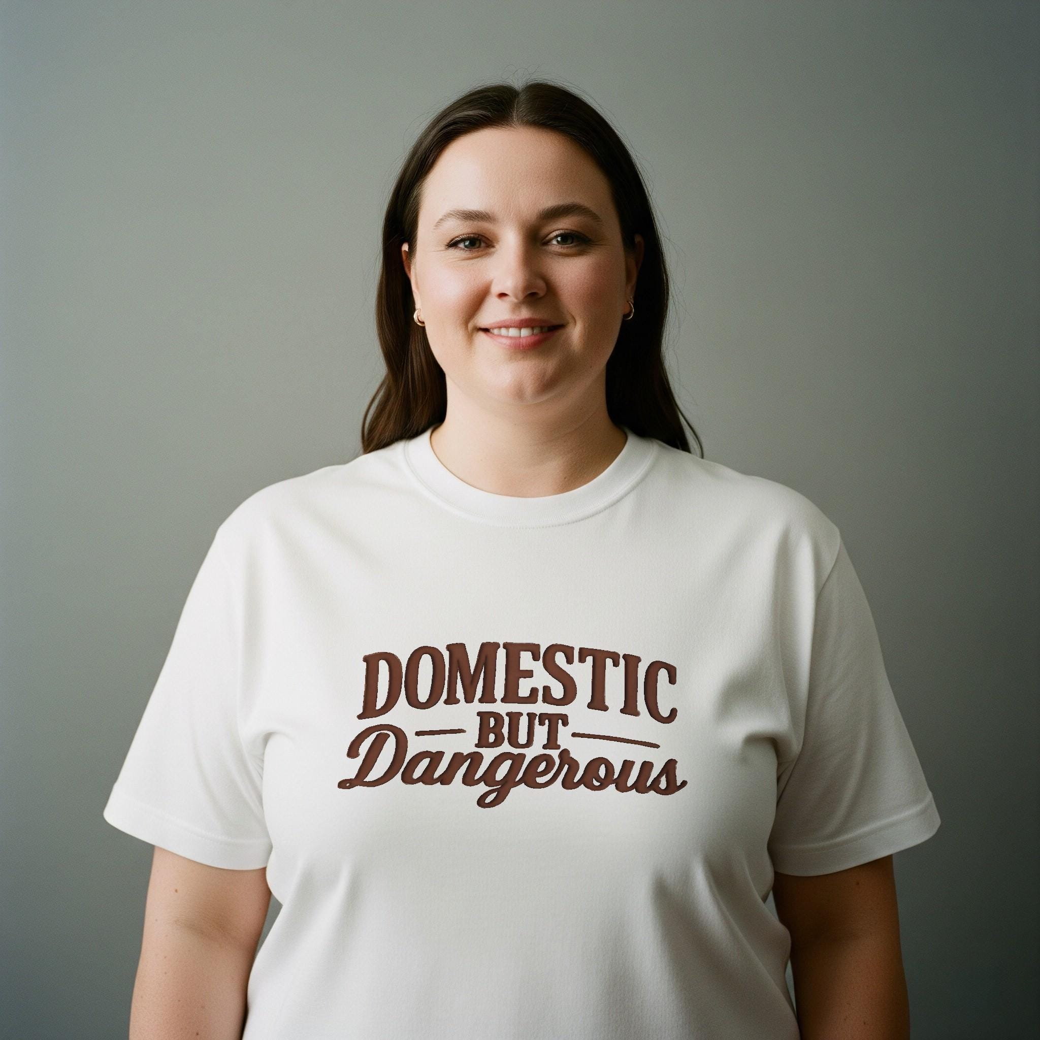 Domestic But Dangerous Retro feminist Shirt, Comfort Colors Graphic Tee, Funny Vintage T-Shirt for Women, Snarky Soft Tee, Sassy Retro Mom Gift